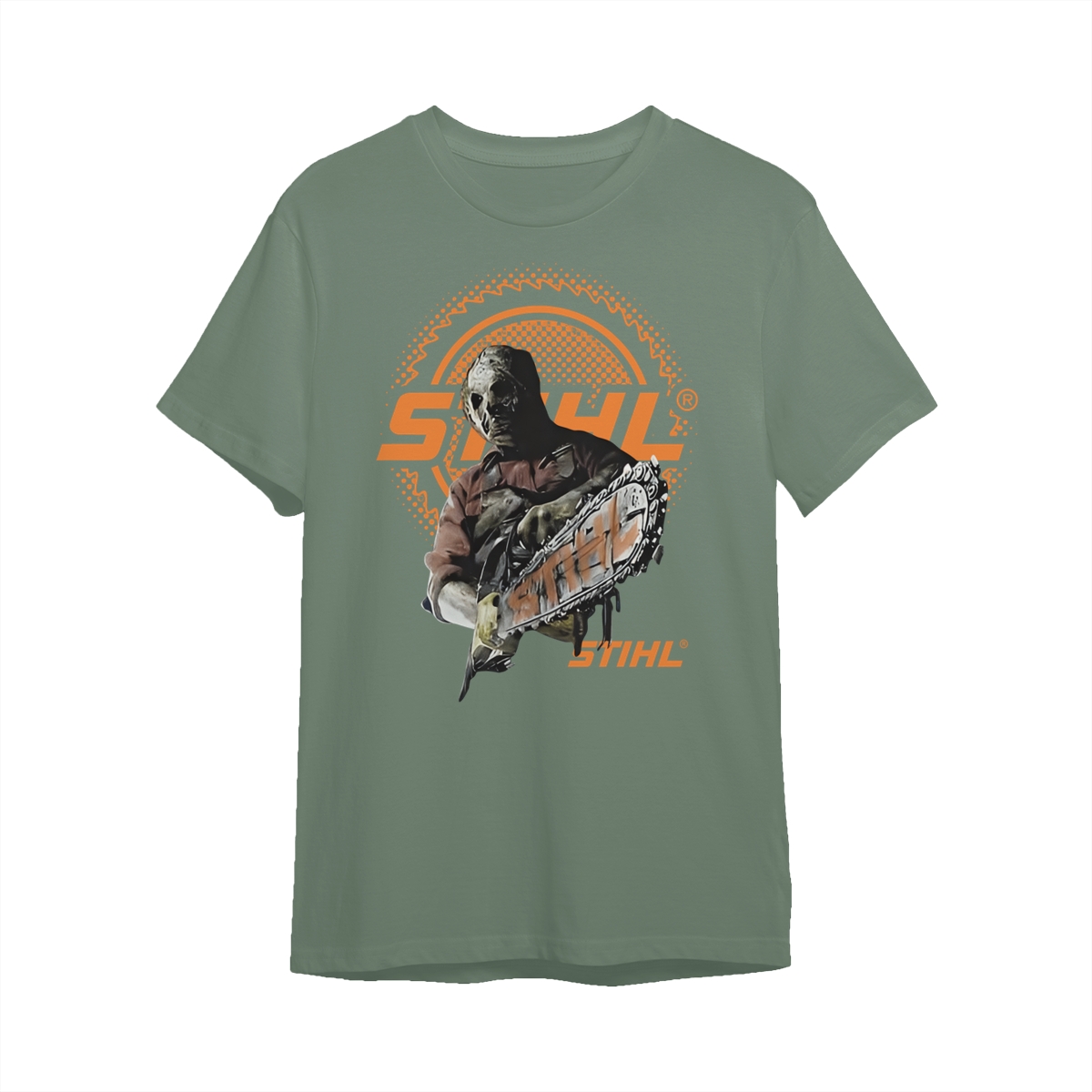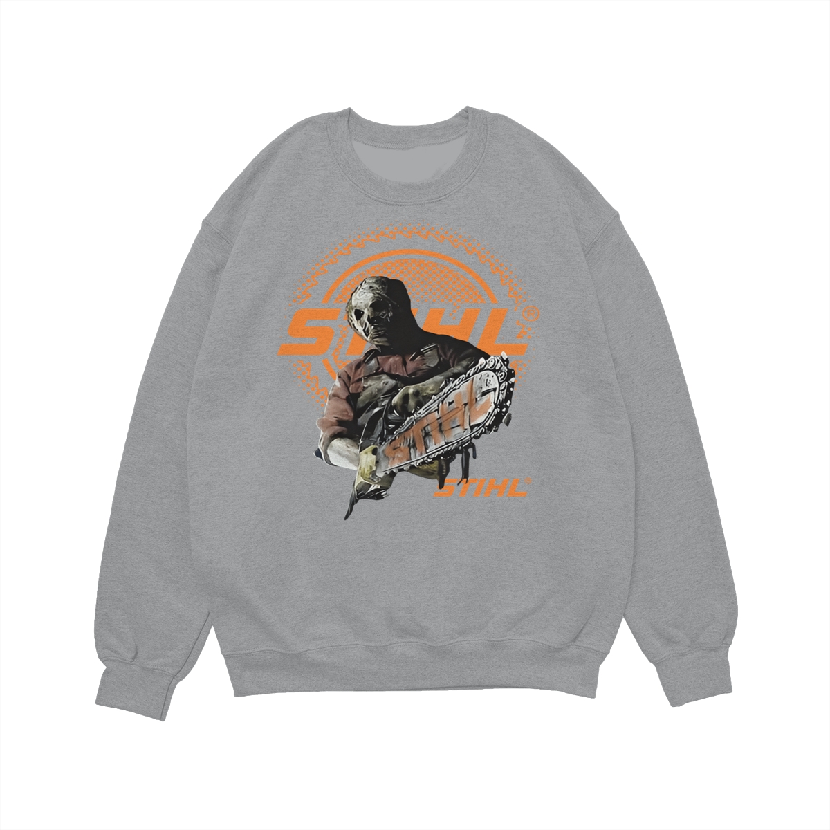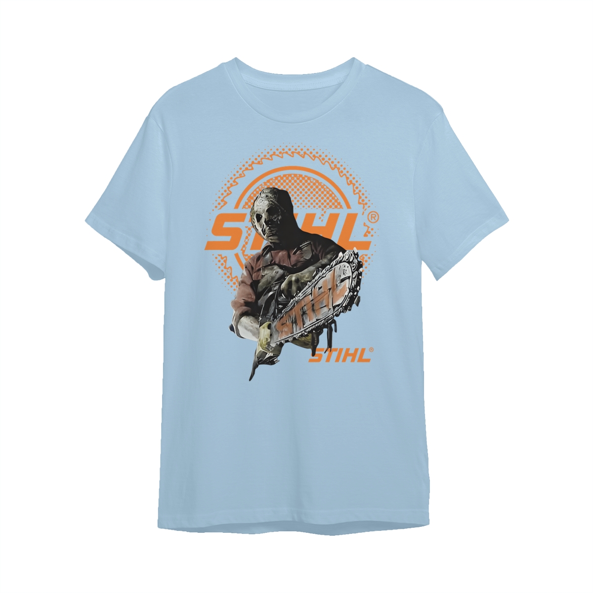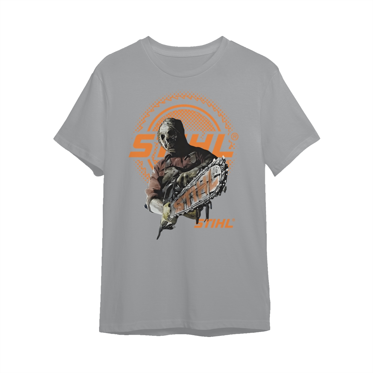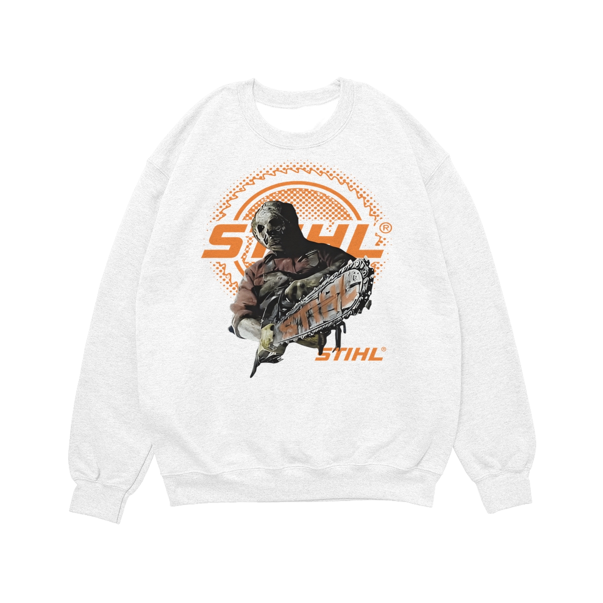STIHL Leatherface T-Shirt – Sweatshirt – Hoodie, Streetwear – Horror Chainsaw Parody Tee, Bold Orange Saw Blade Logo, Funny Graphic for Tool Fans & Scary Movie Lovers