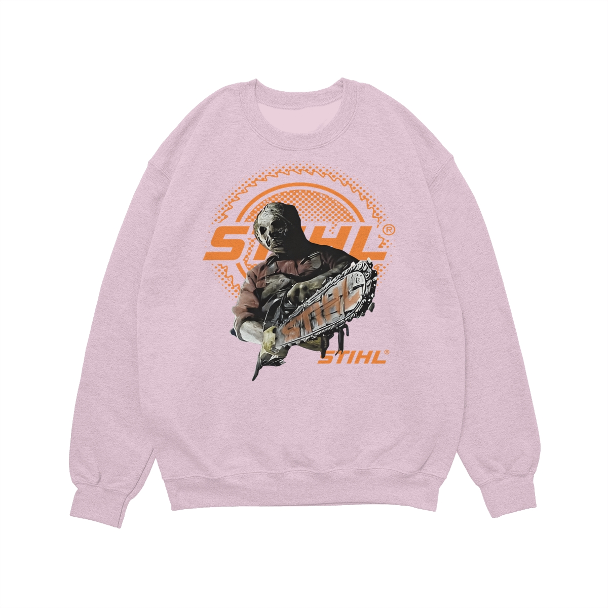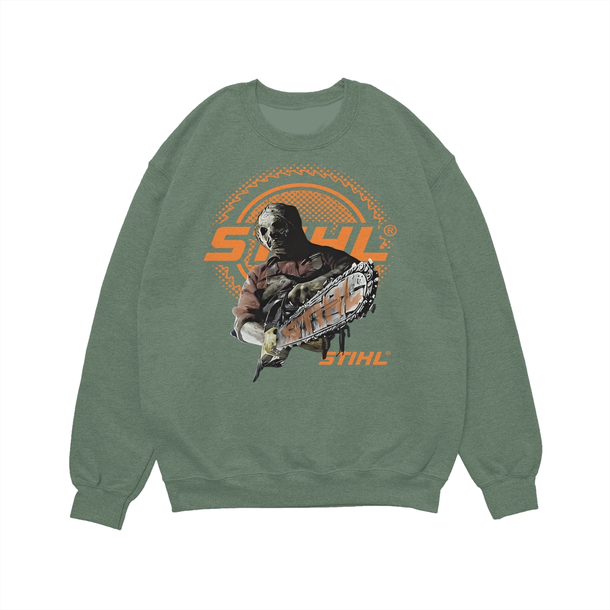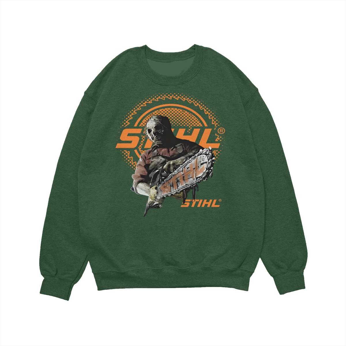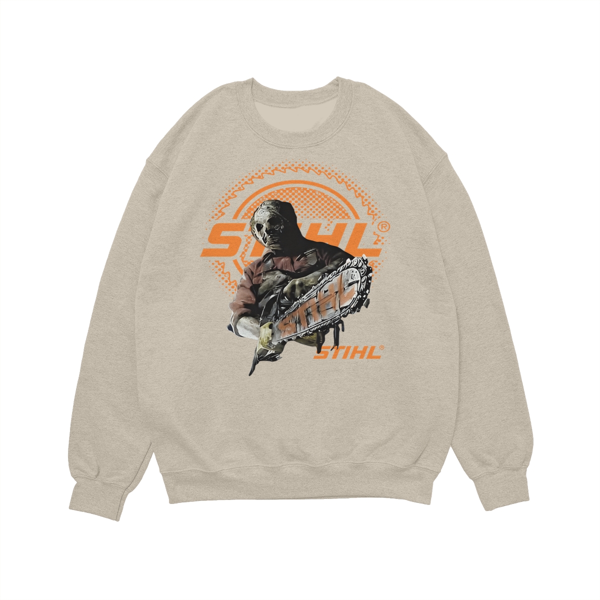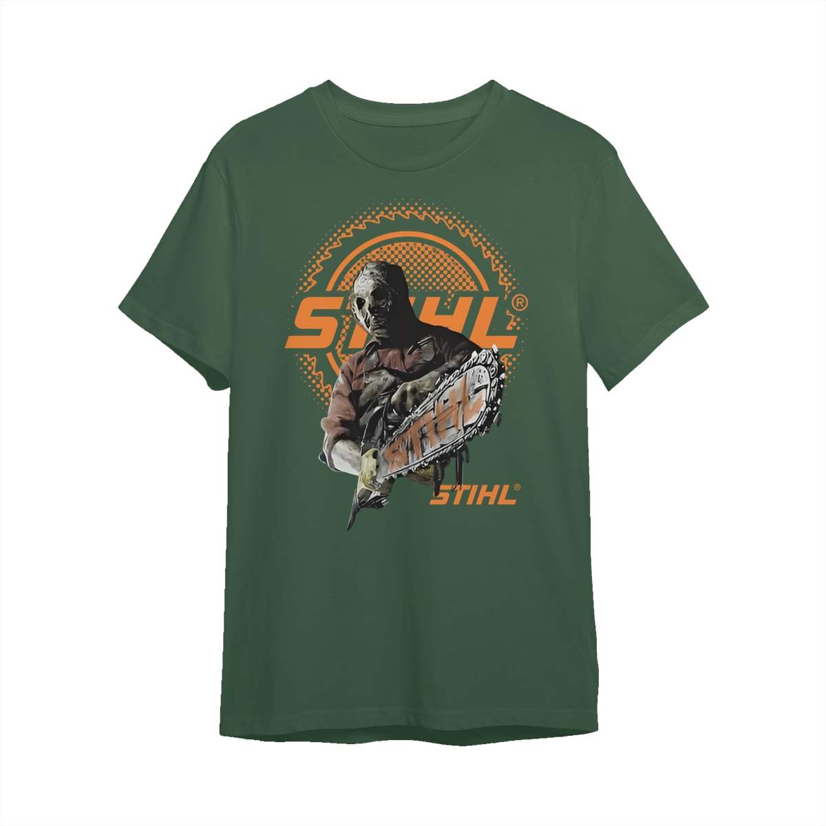 STIHL Leatherface T-Shirt – Sweatshirt – Hoodie, Streetwear – Horror Chainsaw Parody Tee, Bold Orange Saw Blade Logo, Funny Graphic for Tool Fans & Scary Movie Lovers