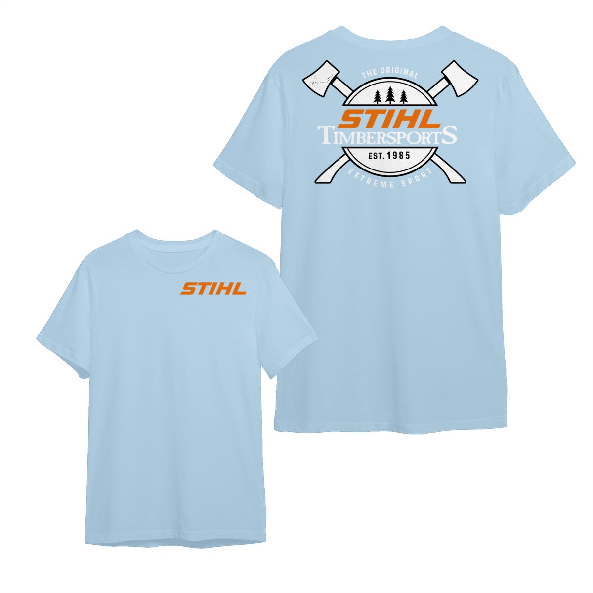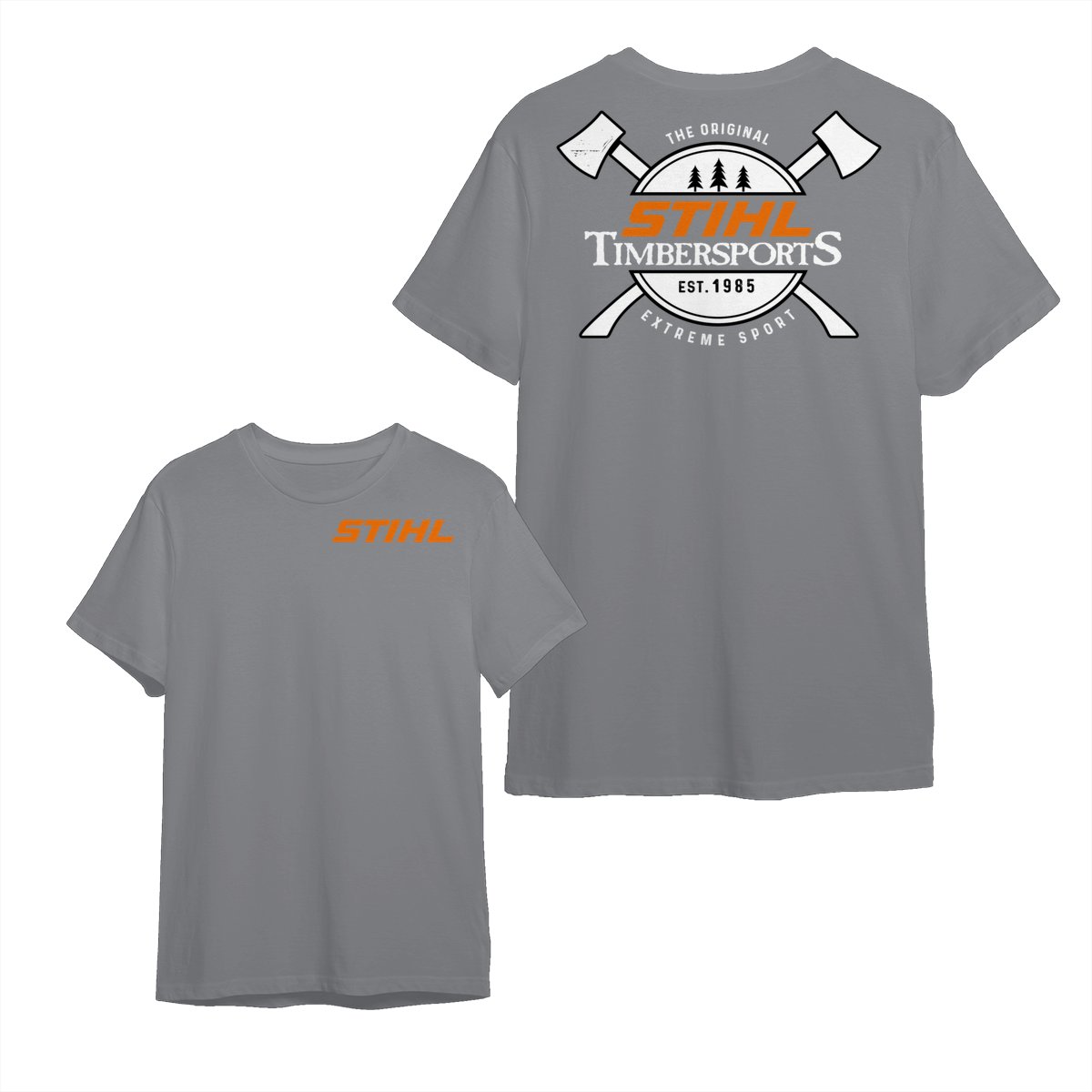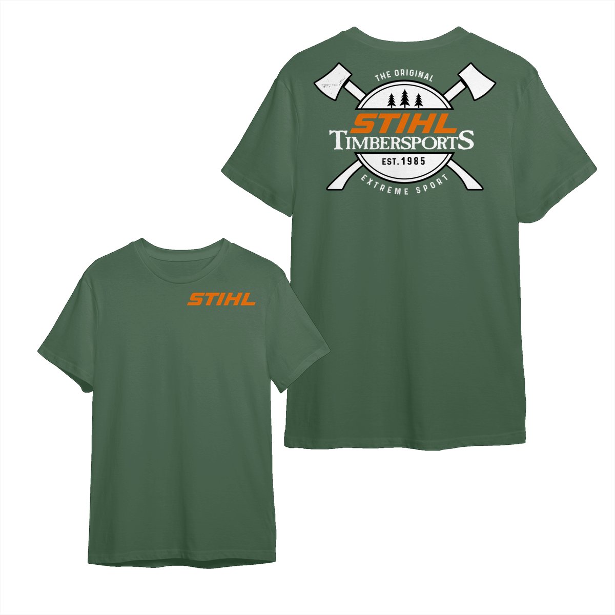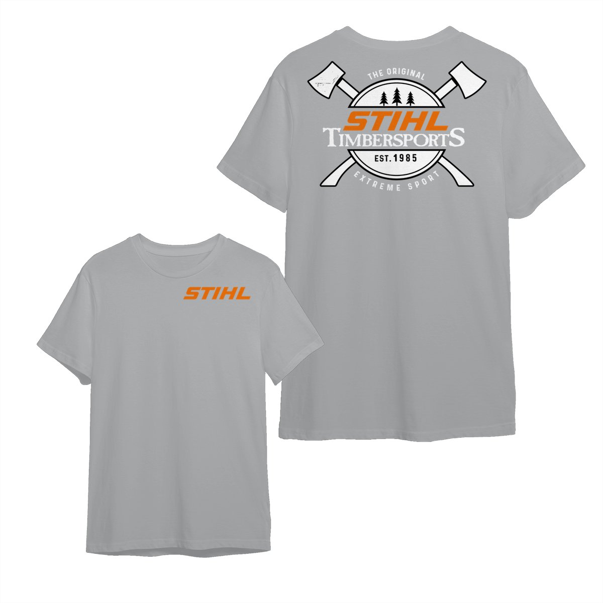 STIHL Sport Axes Tee, Double Axe Logo Design For Timbersports Fans, Classic Fit For Outdoor Lovers, Cool Lumberjack Shirt, Rugged Style For Work