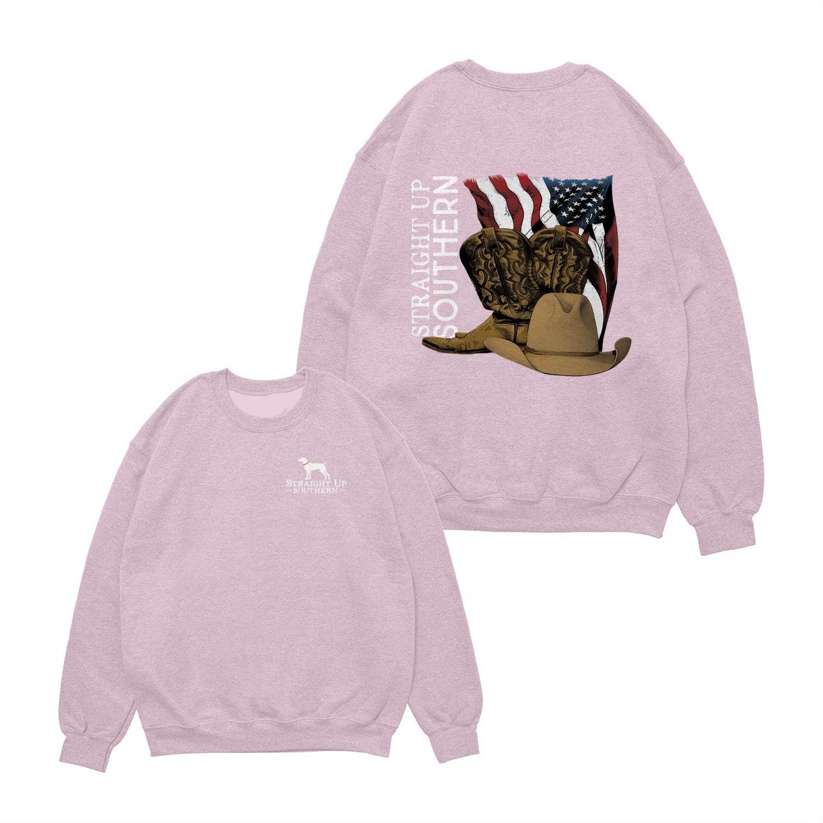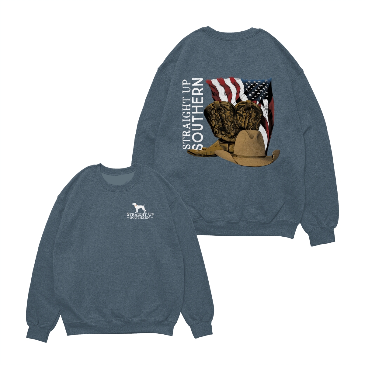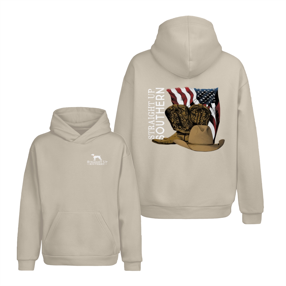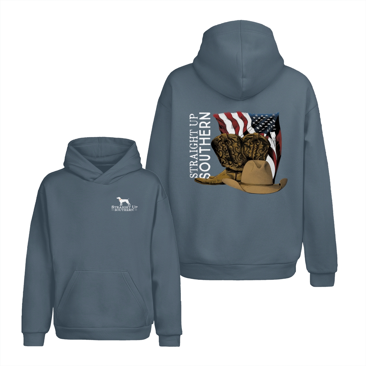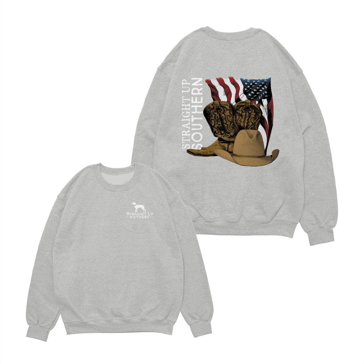 Straight Up Southern Men’s Graphic T-Shirt – Cowboy Boots and Western Hat with American Flag – Patriotic Country Style Tee for Western Fashion Fans, Southern Pride Supporters, and Rural Lifestyle Enthusiasts