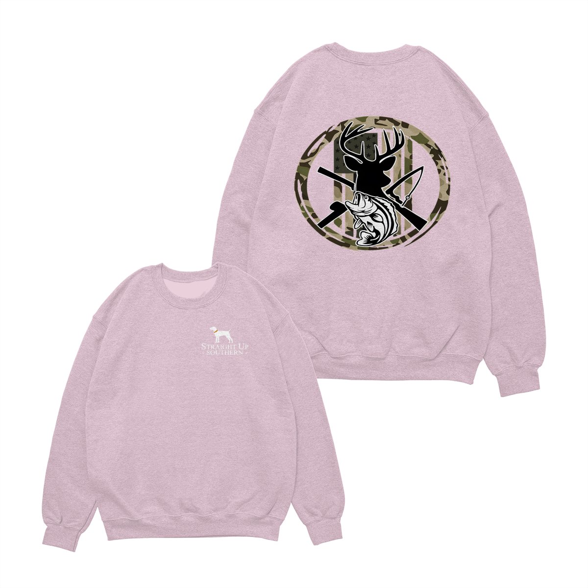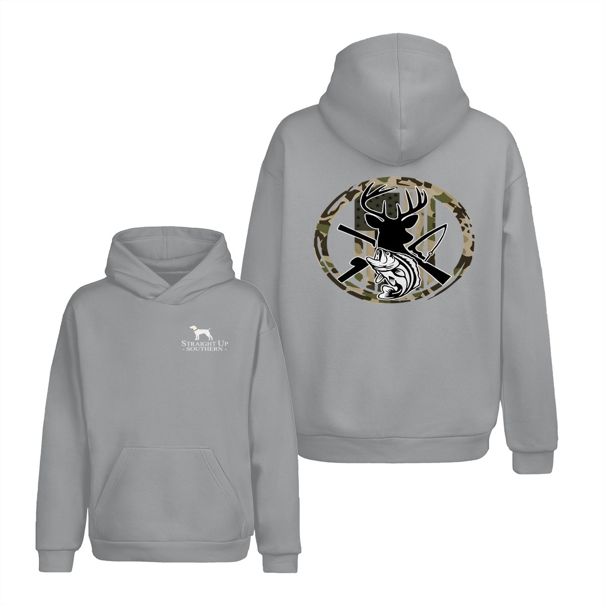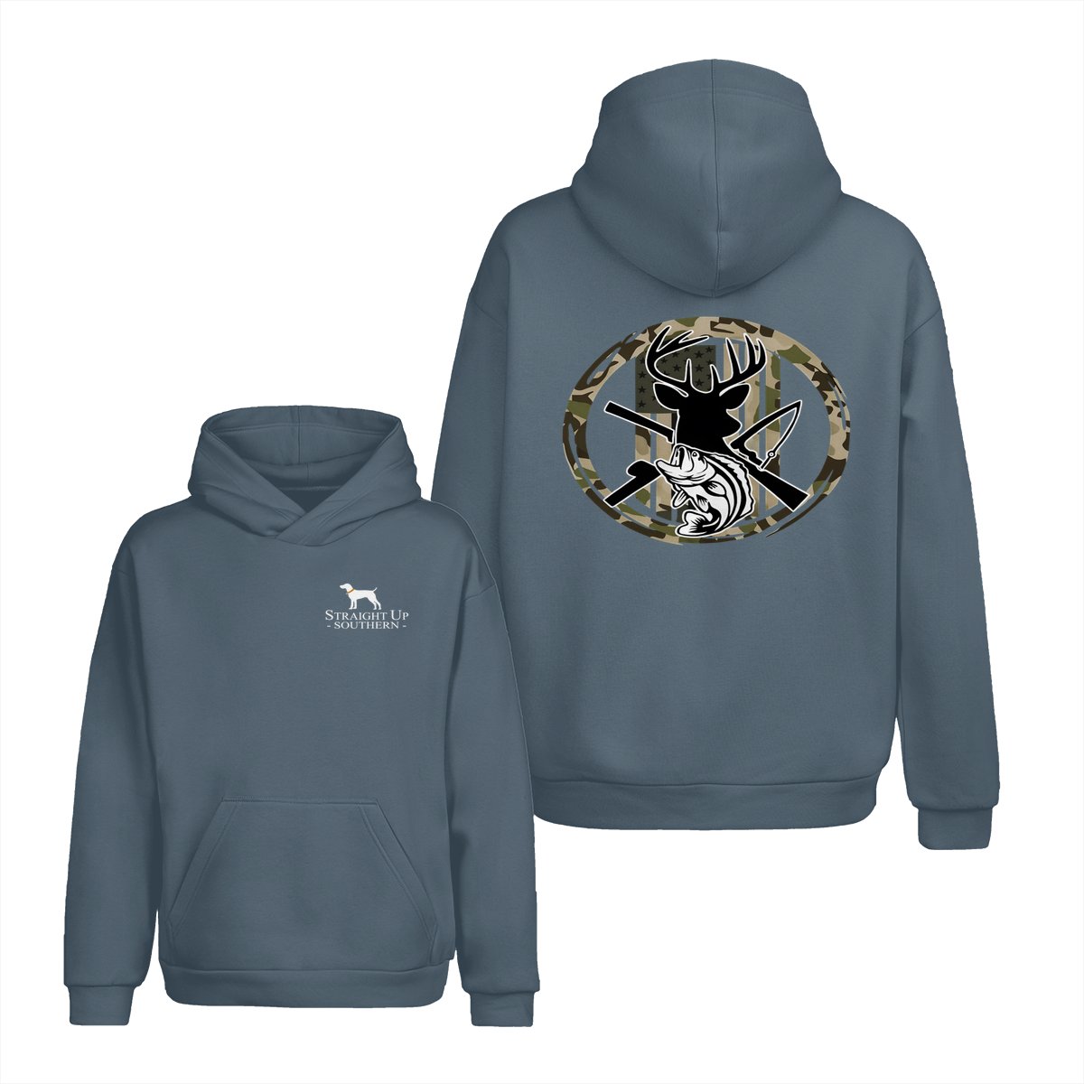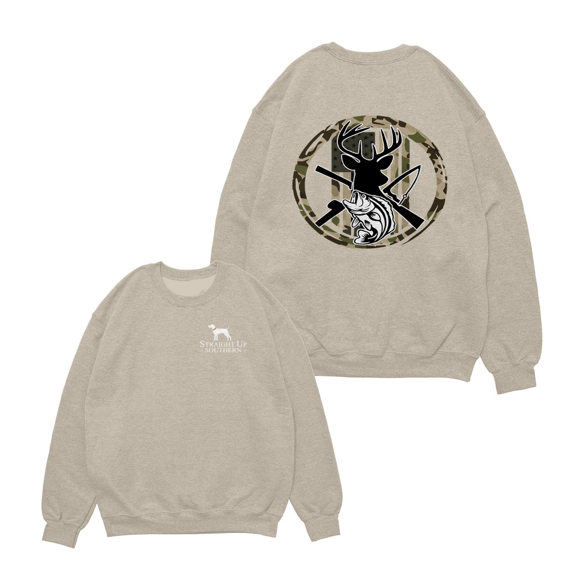 Straight Up Southern T-Shirt – Hunting & Fishing Graphic with Buck, Bass, and Camo – Outdoor Lifestyle Tee for Country Men