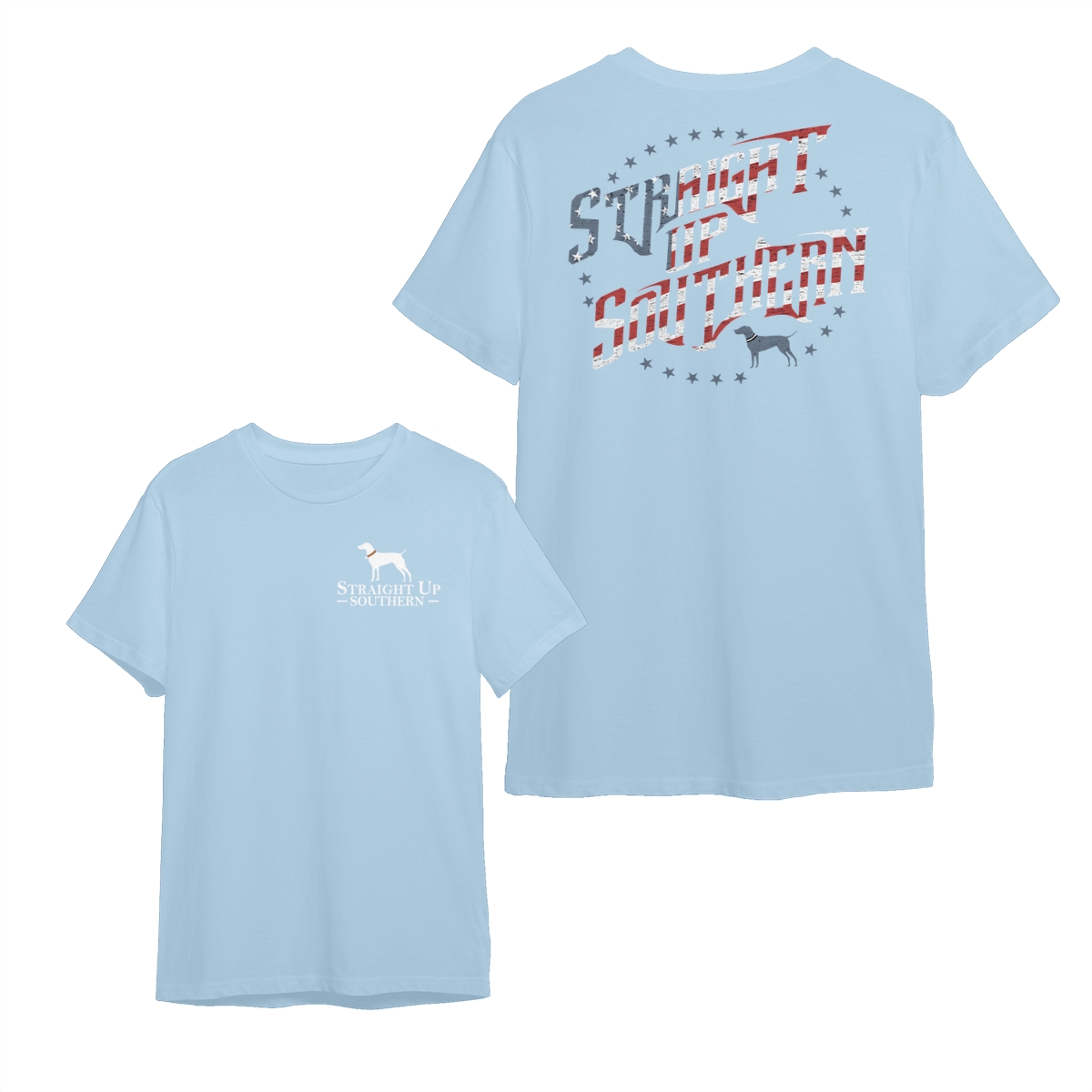 Straight Up Southern T-Shirt – Patriotic Design with Stars and Stripes, Southern USA Style, Perfect for Casual Wear and Outdoor Enthusiasts