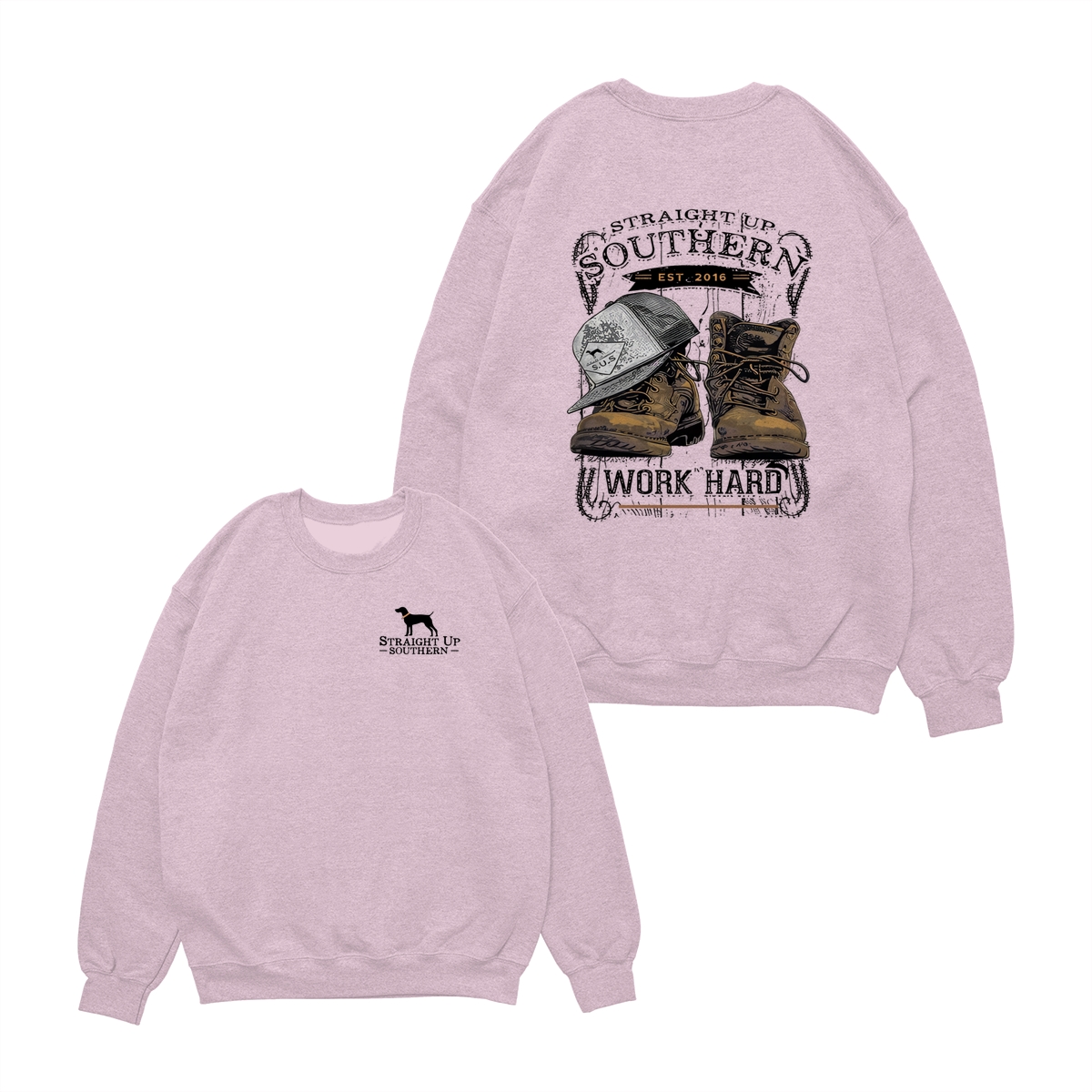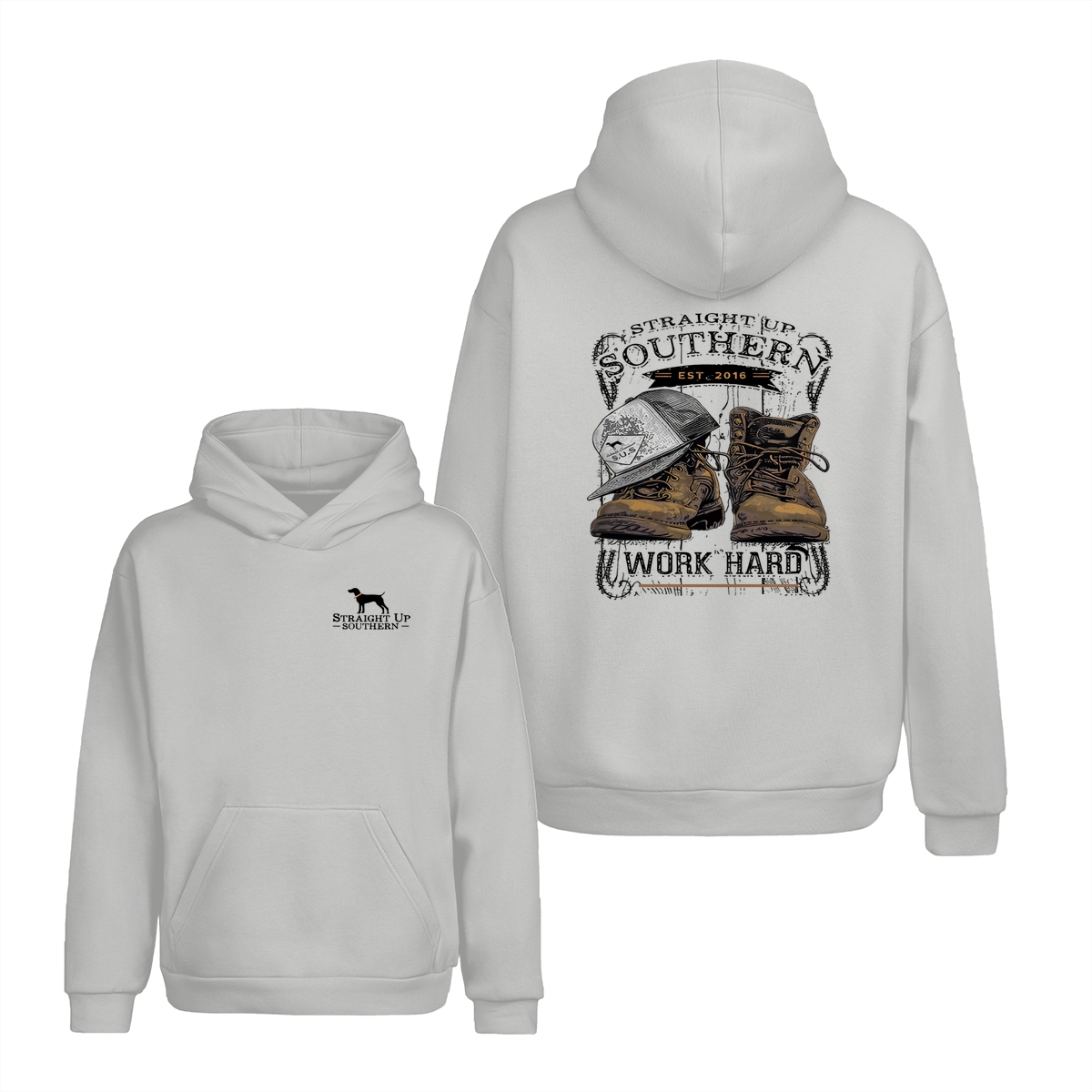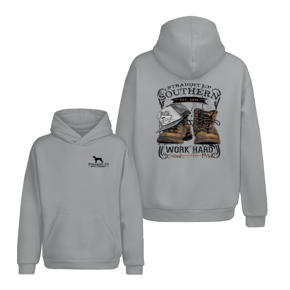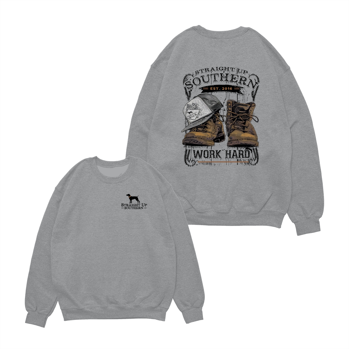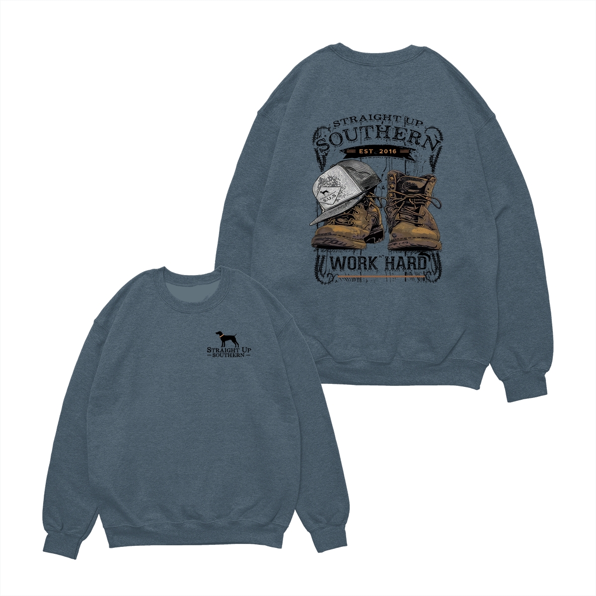 Straight Up Southern Work Hard Boots & Hat T-Shirt – Vintage Work Boots and Cap Design – High-Quality Print on Black Cotton Tee – Motivational Outdoor & Country Graphic Tee for Men, Est. 2016