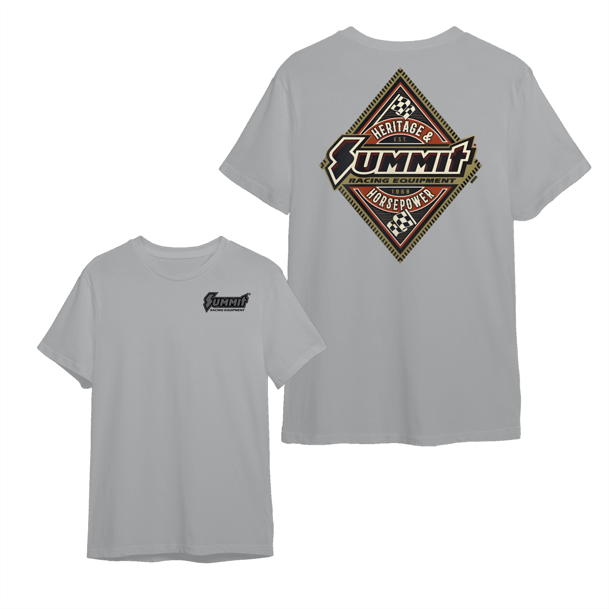 Summit Racing Diamond Heritage T-Shirt – Retro Car Culture Graphic Tee, White Auto Mechanic Shirt for Men, Vintage Motorsports Gift, Garage Lifestyle Apparel, Gift for Men – Top Menswear, Streetwear