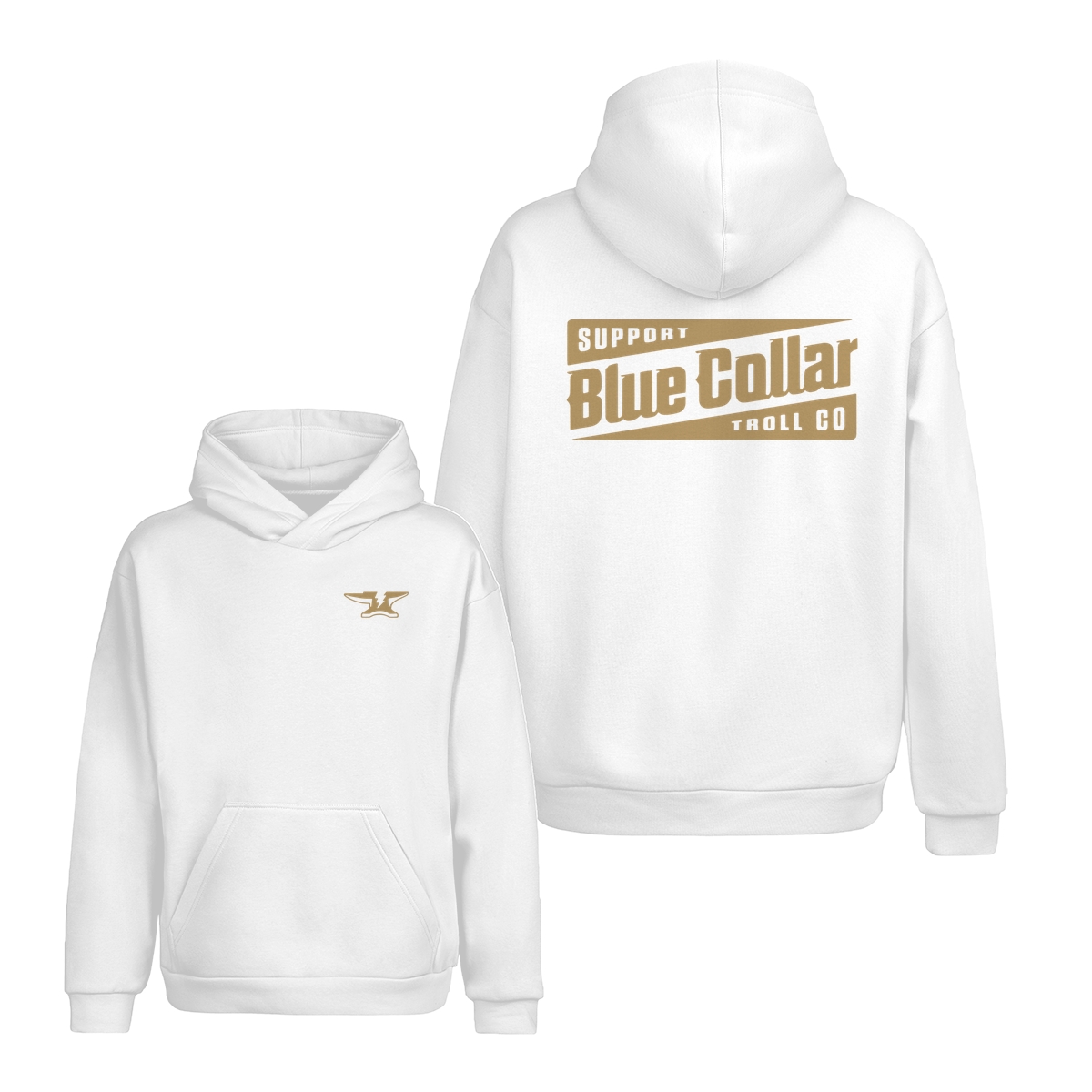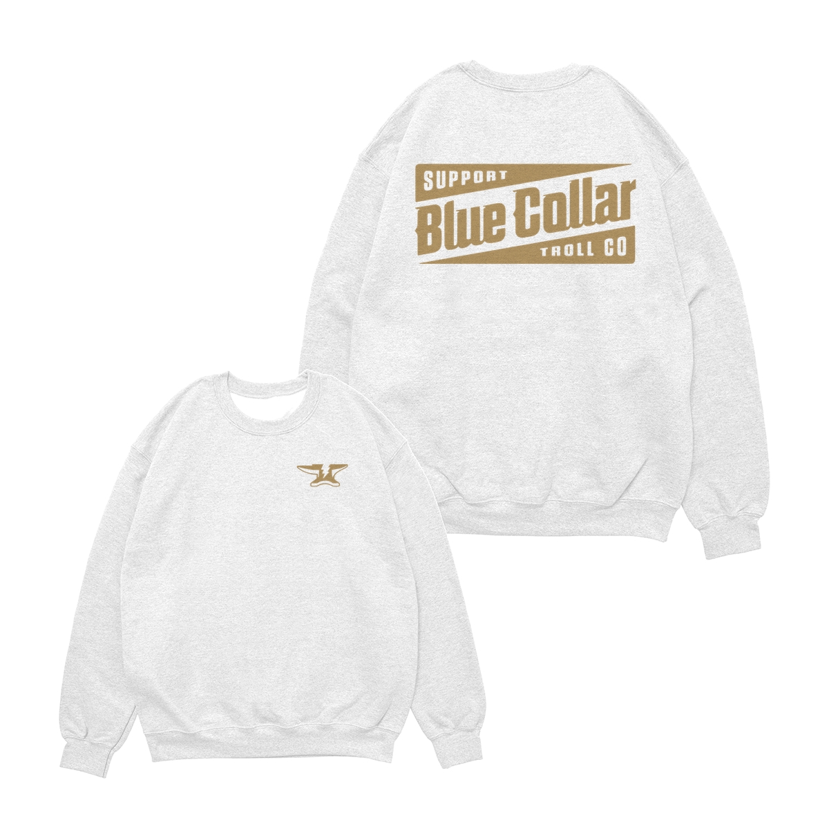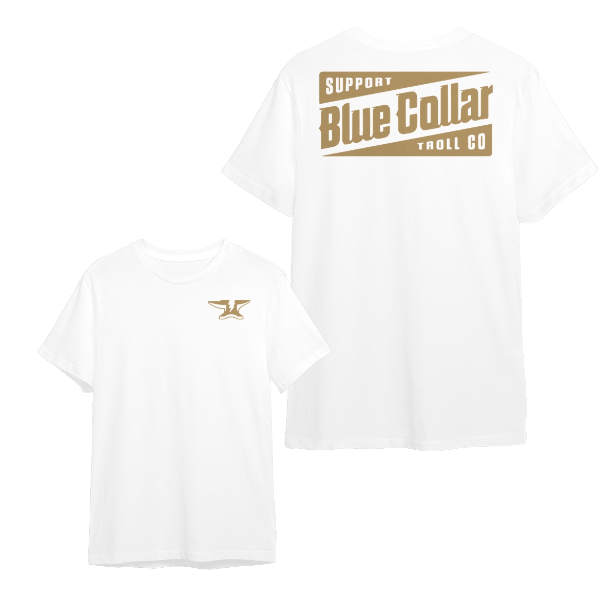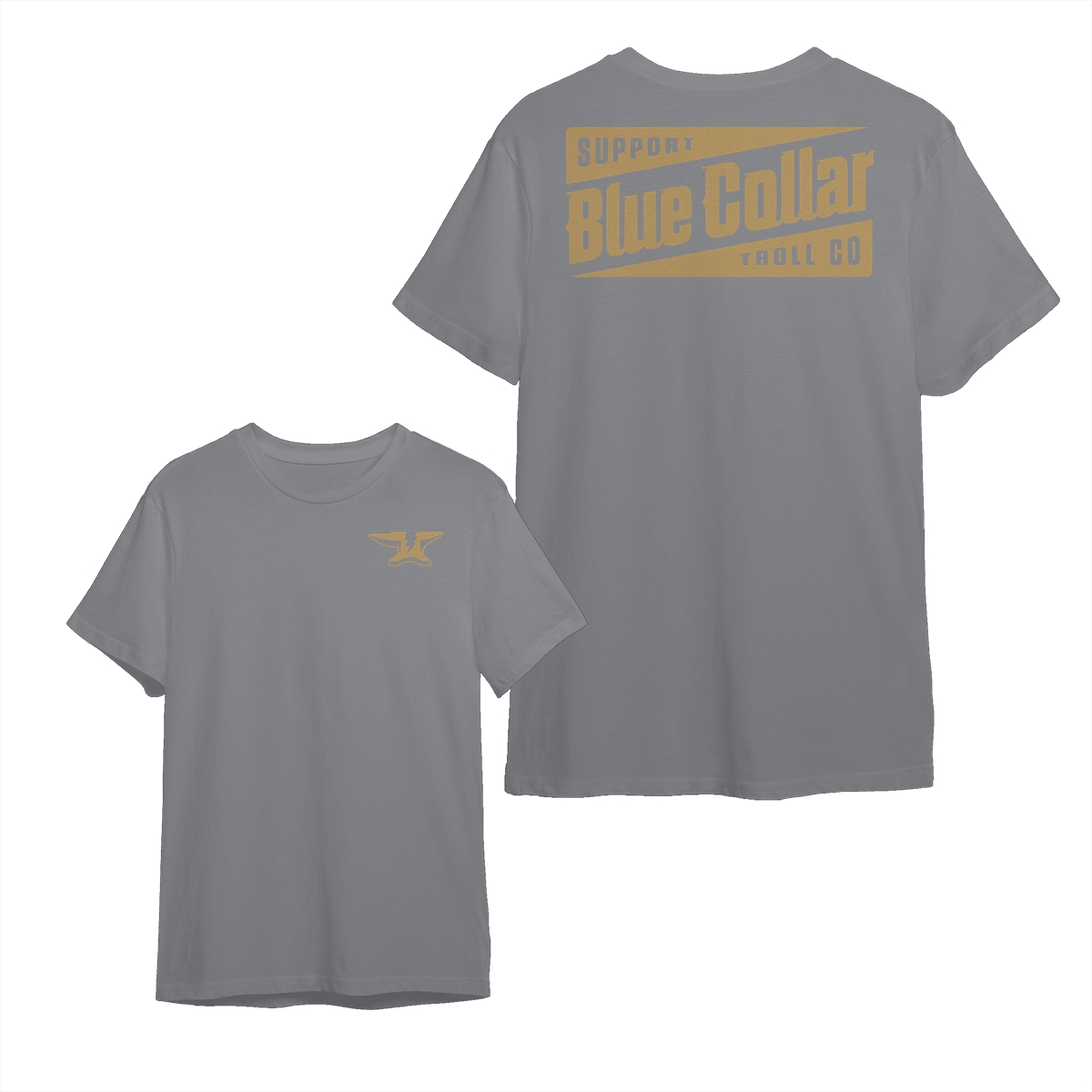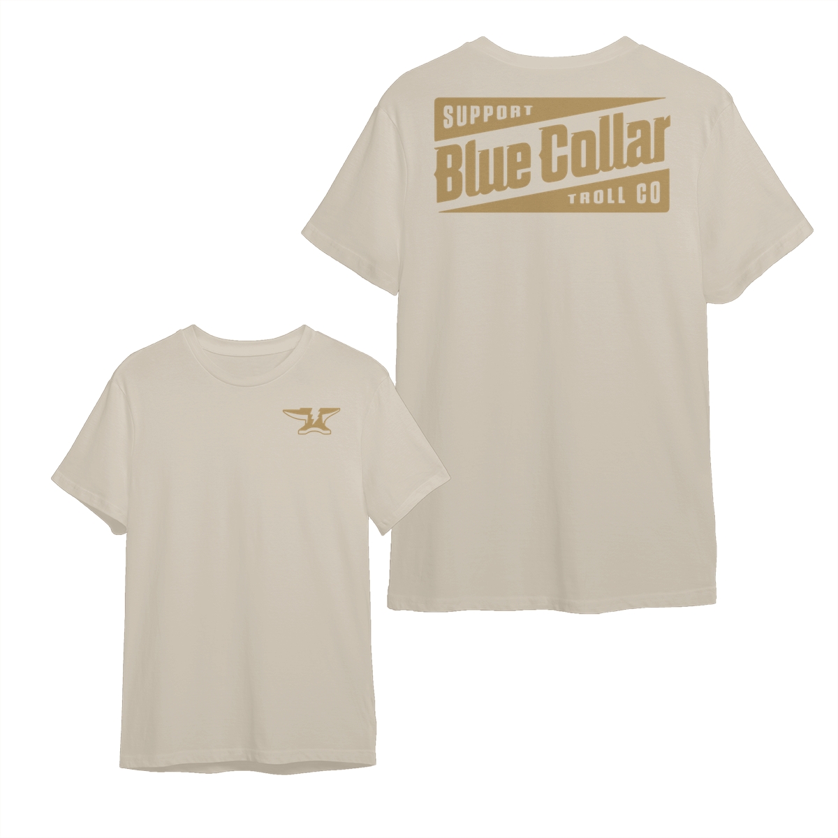 Support Blue Collar T-Shirt, 2 Sides Bold Banner Graphic for Men and Women, Soft Cotton Blend Workwear Tee, Troll Co Statement Shirt 2025 Tops