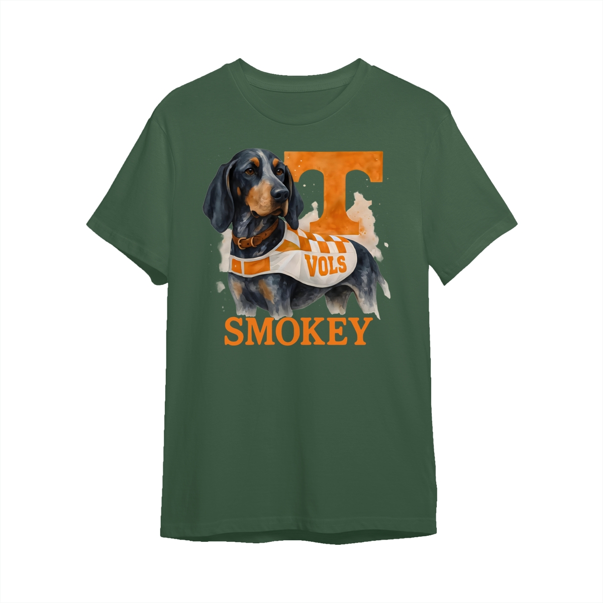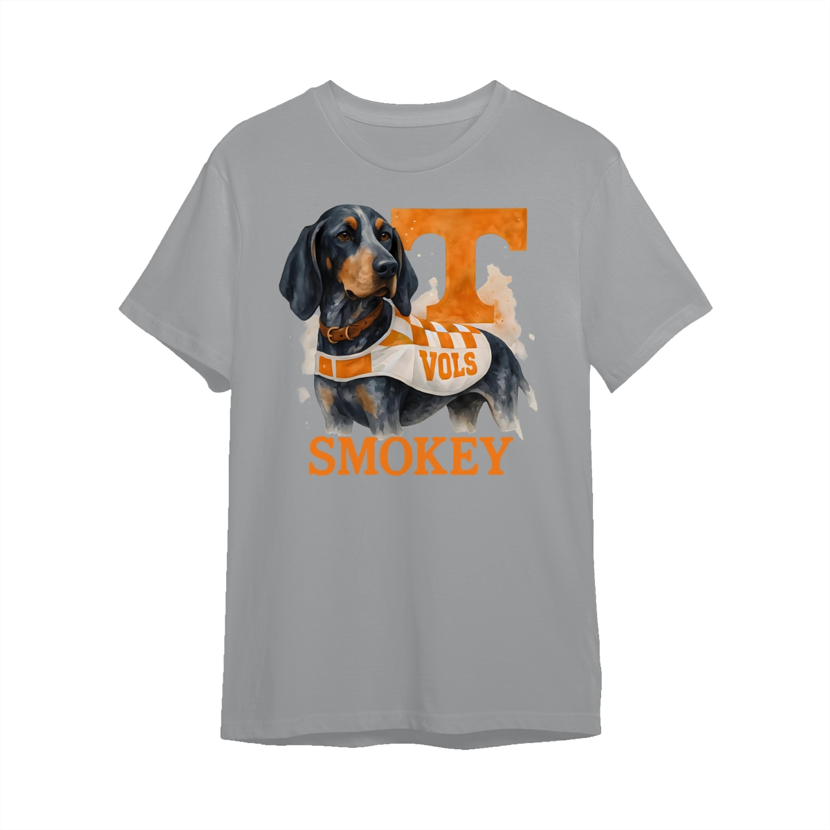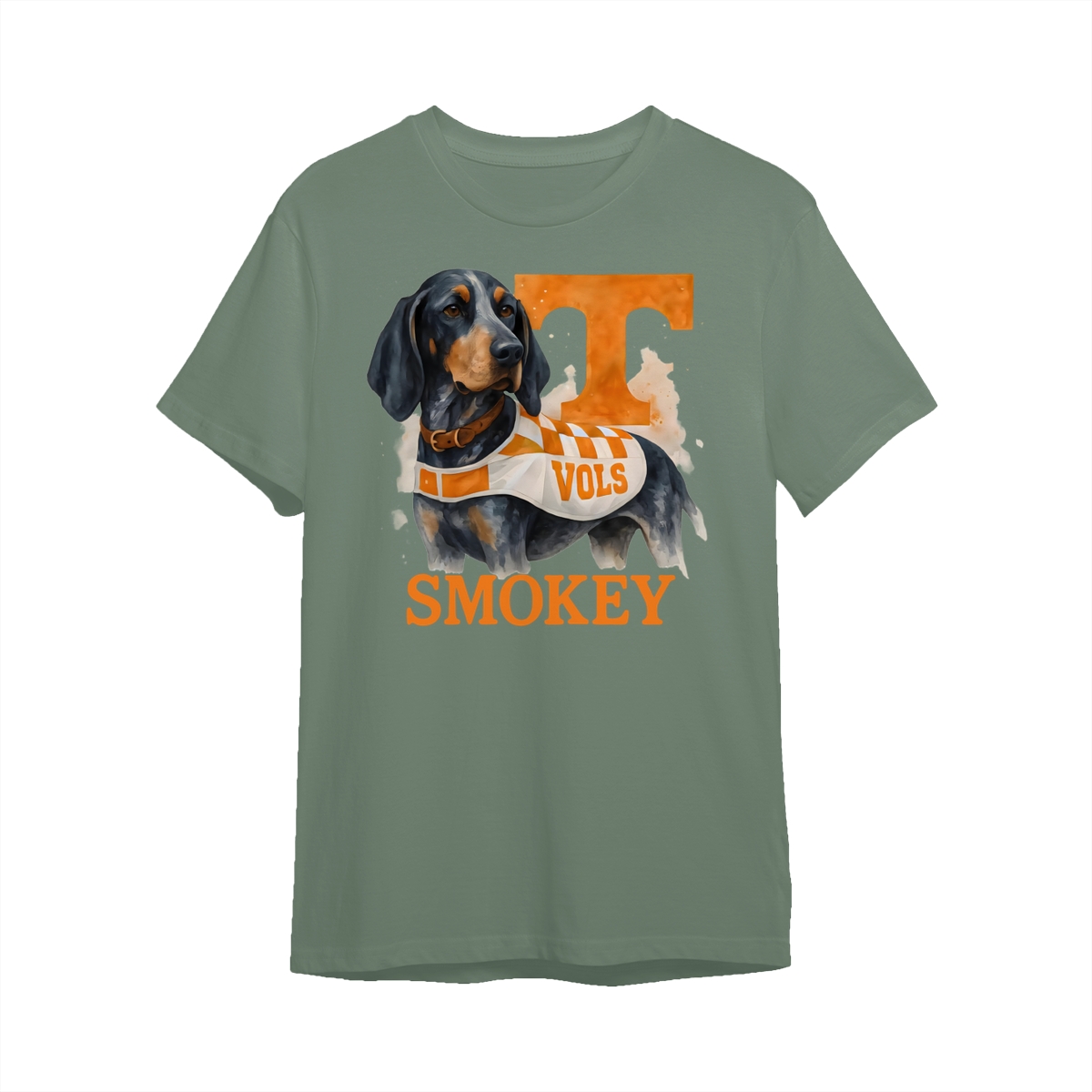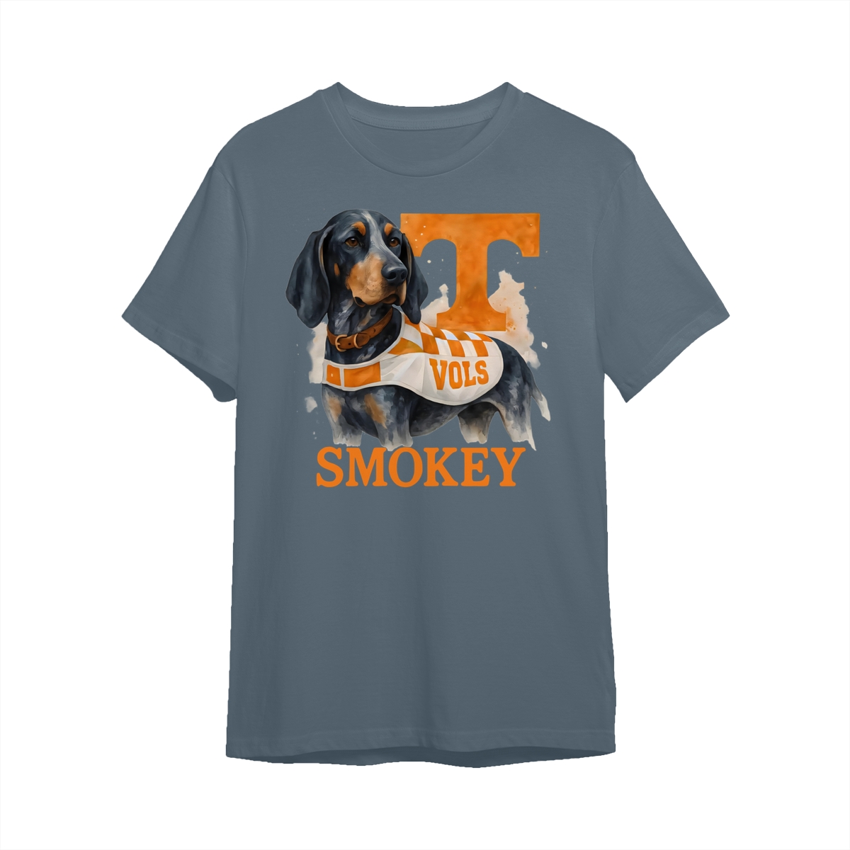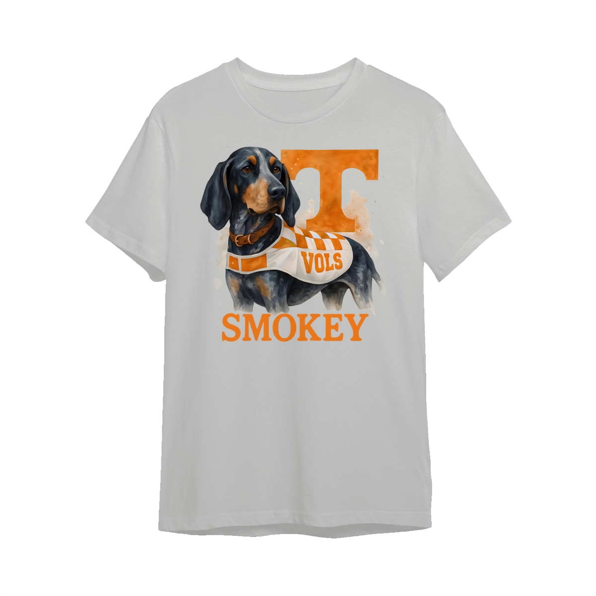 Tennessee Volunteers Smokey Dog Mascot T-Shirt, Vintage College Football Big T Logo Tee, Orange Checkerboard Spirit Shirt, Unisex Oversized Casual Streetwear Top for Men and Women