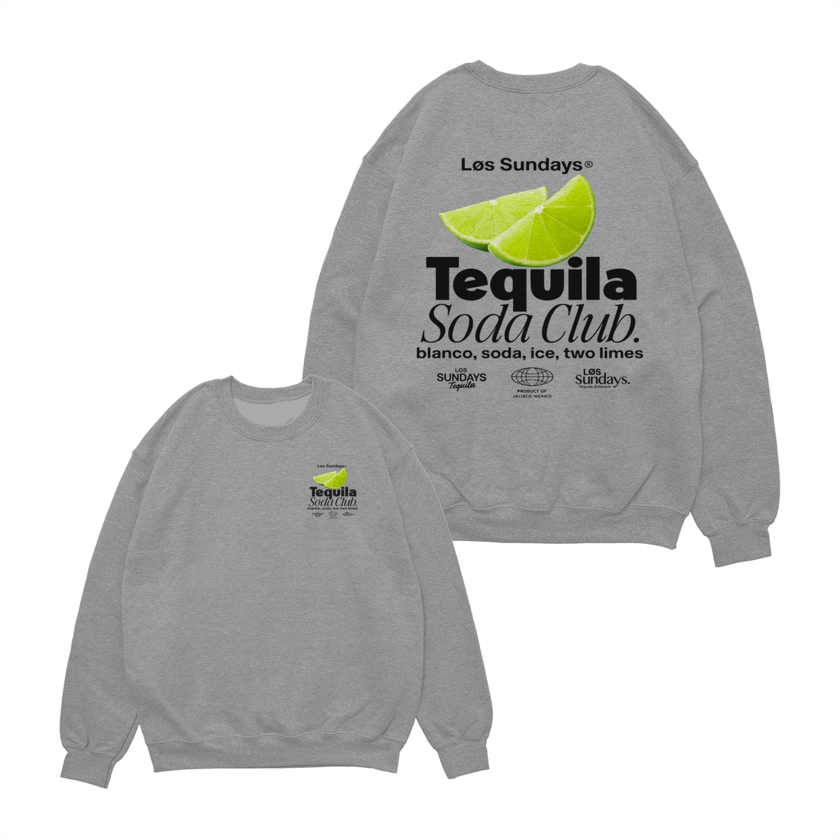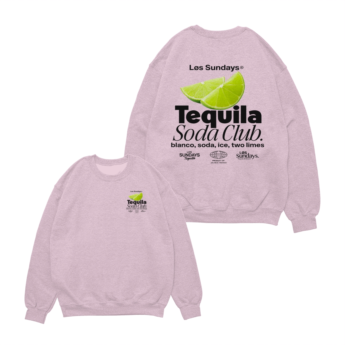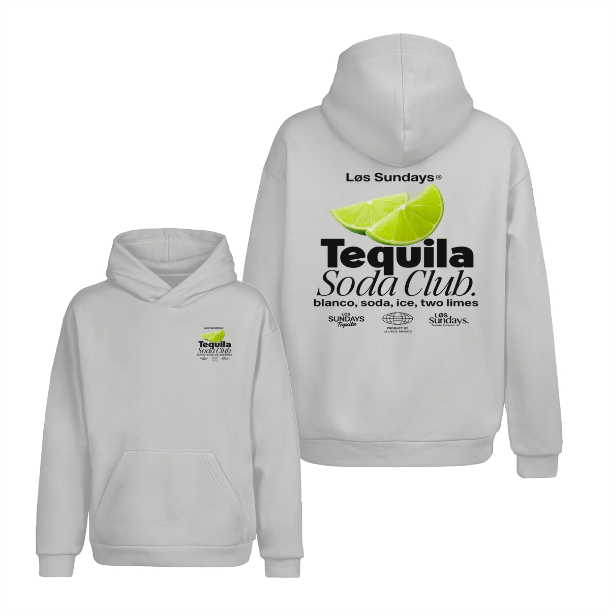 Tequila Soda Club Tee with Lime, Blanco, Ice Text Design, 2-Sided Los Sundays Graphic, Soft Cotton Blend, Casual Summer Party Shirt for Men & Women.