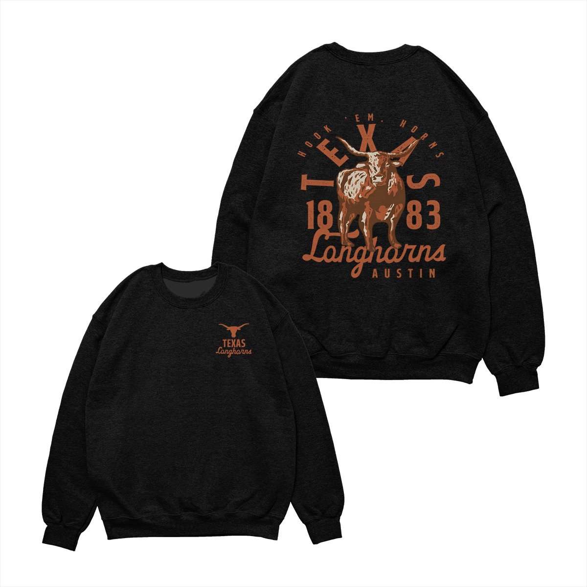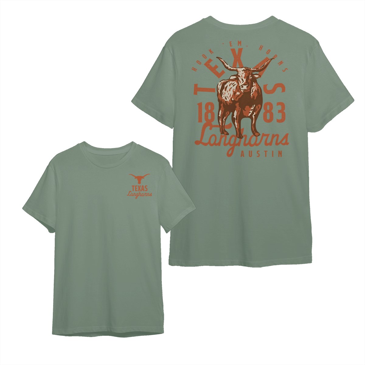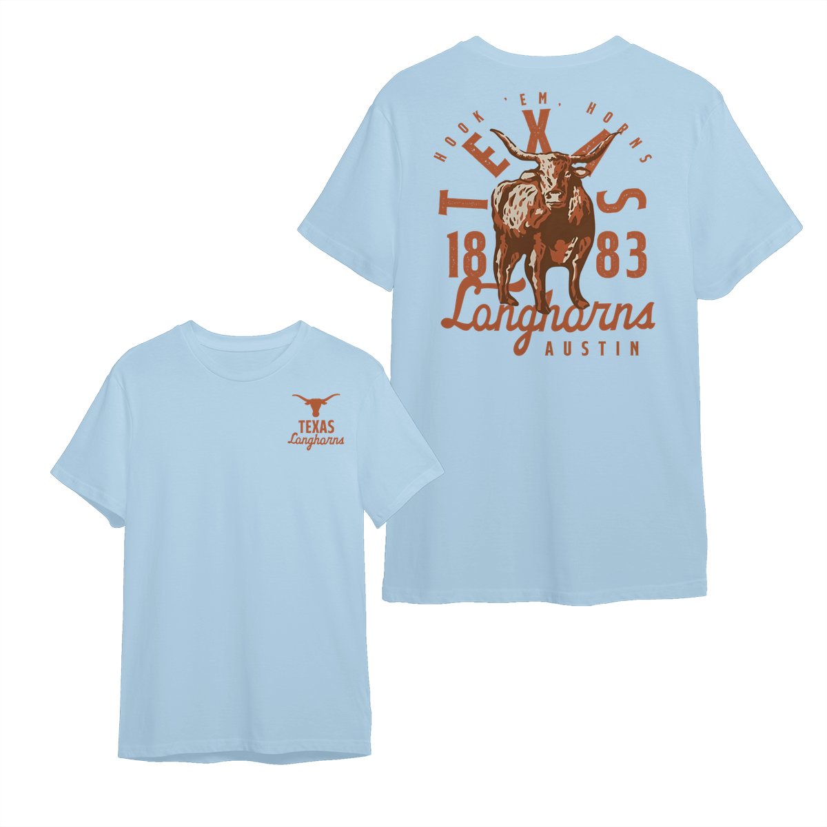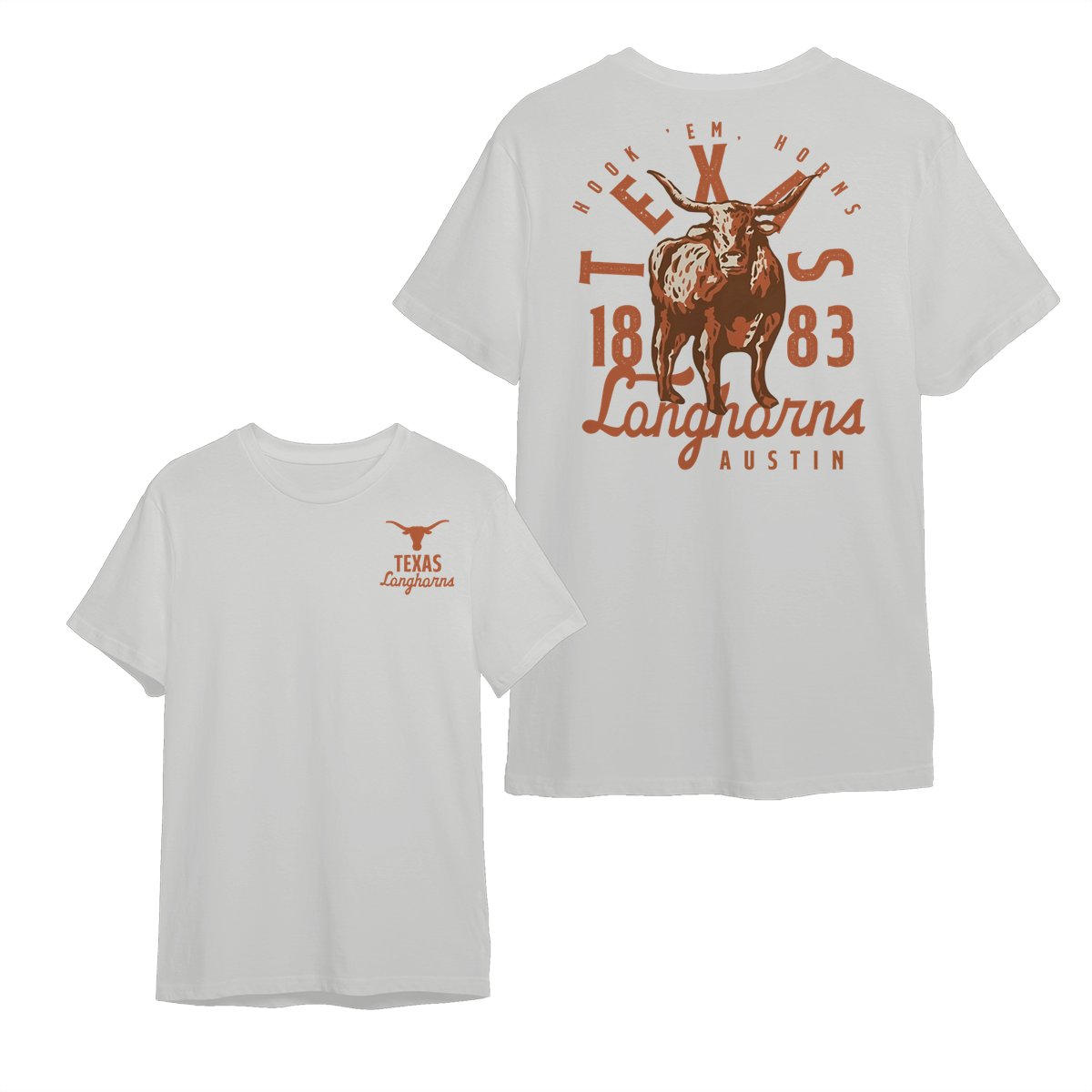 Texas Longhorns Team NCAA Graphic Mascot Overlay 2 Side T-Shirt, Vintage College Graphic Tee, Sport Fan Gift Shirt, Men’s Oversized Athletic Tshirt