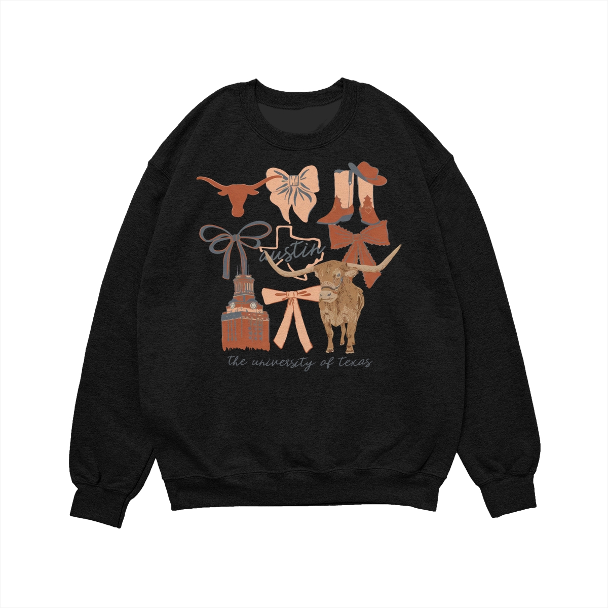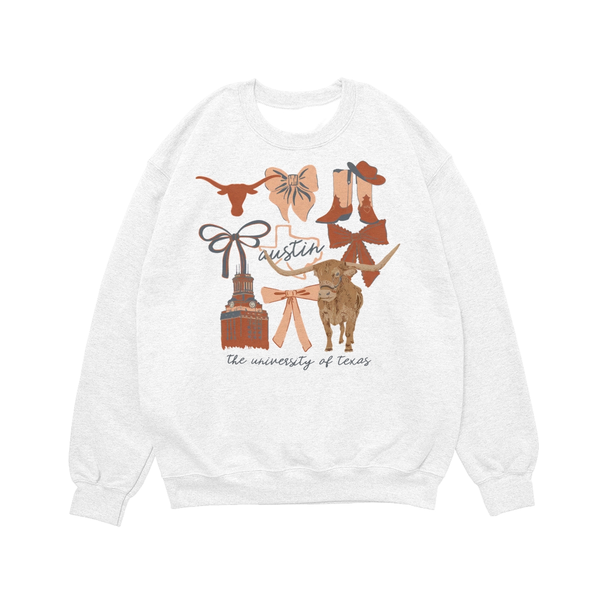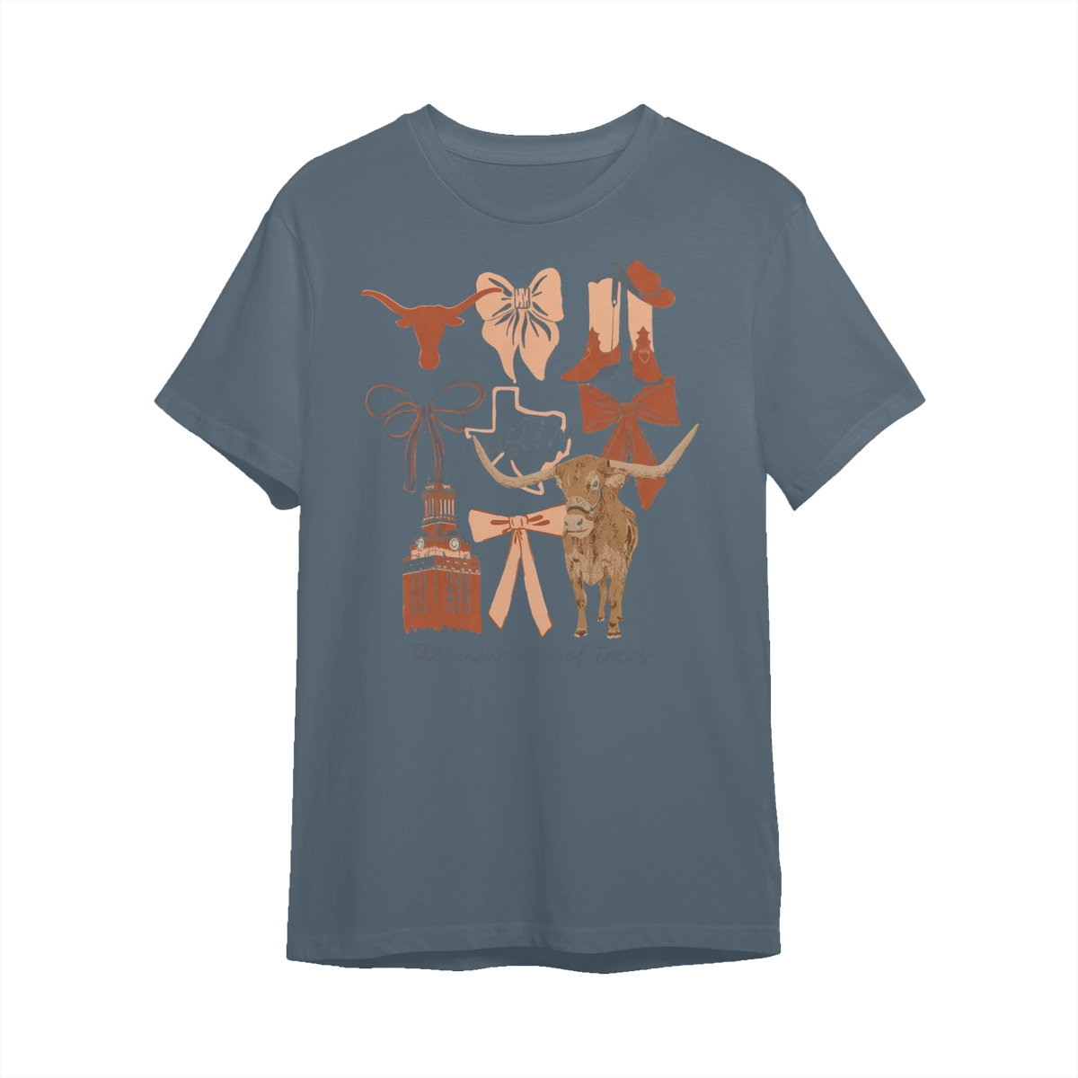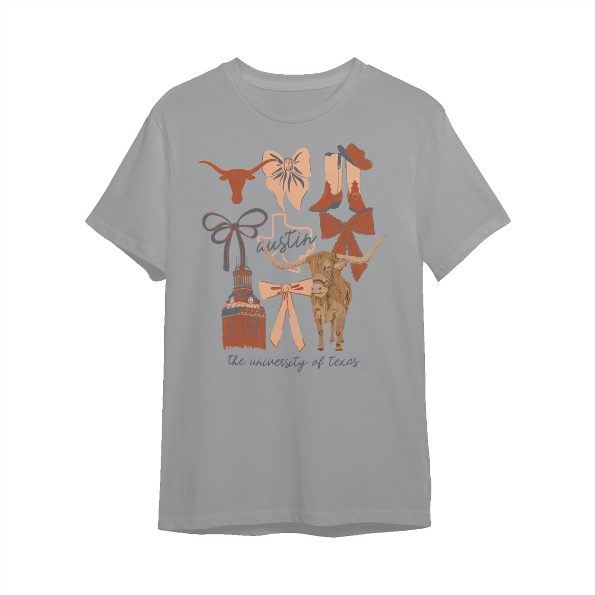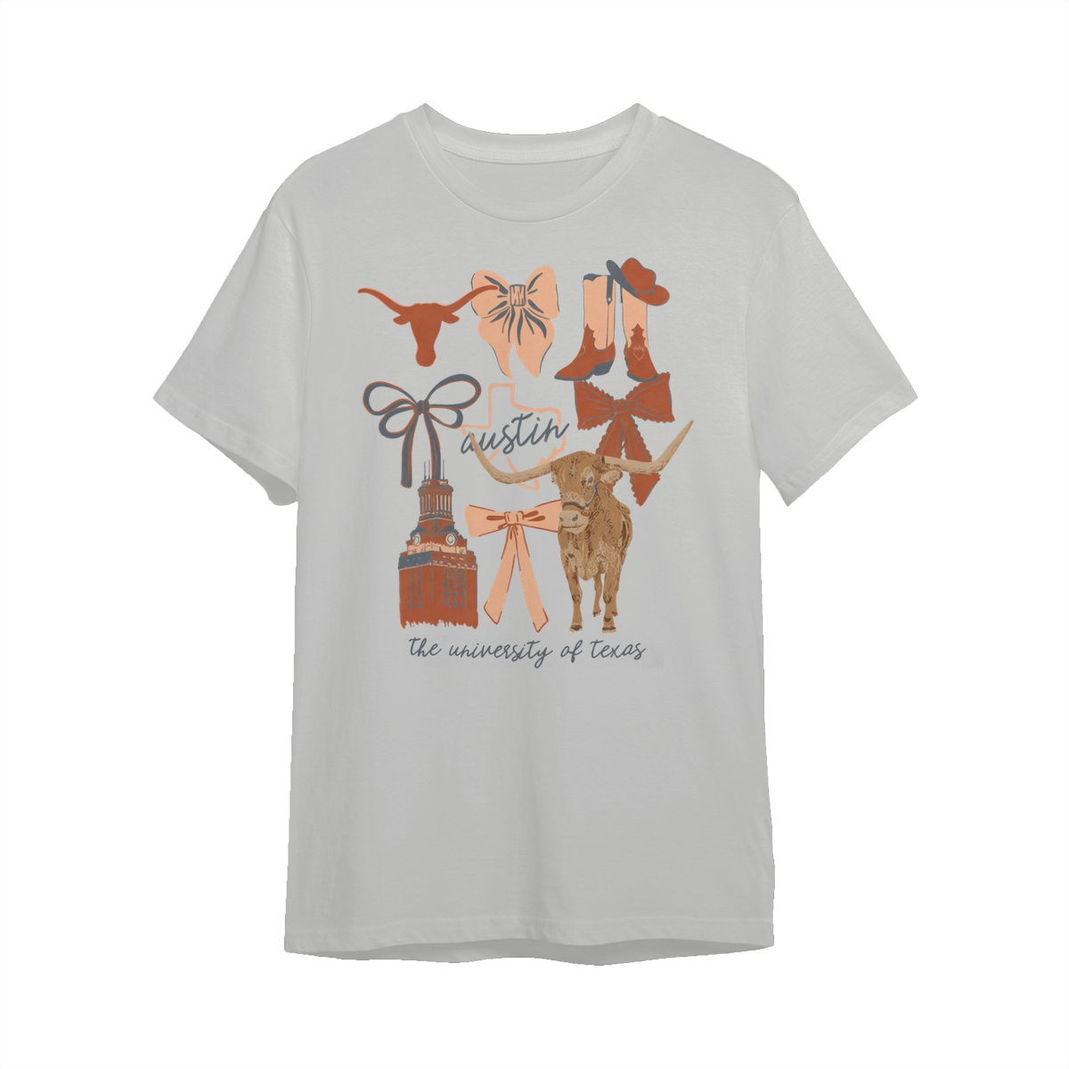 Texas Longhorns Vintage Coquette NCAA College T-Shirt – Teams Retro Cotton Crewneck, Preppy Girly Game Day Outfit, Cute Football Fan Tee, Sporty Fall Season Top, Trendy Gift for College Game Lovers Hand-Drawn T-Shirt