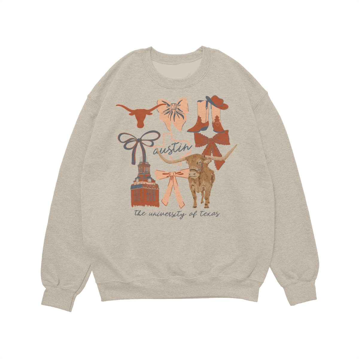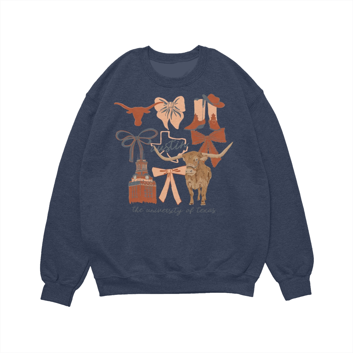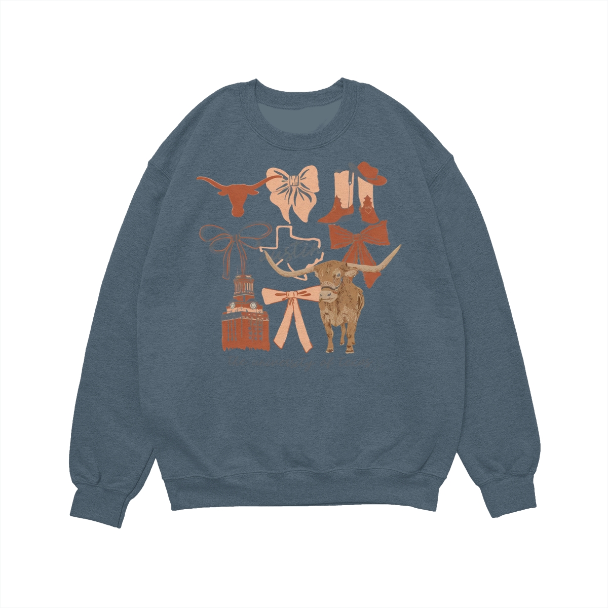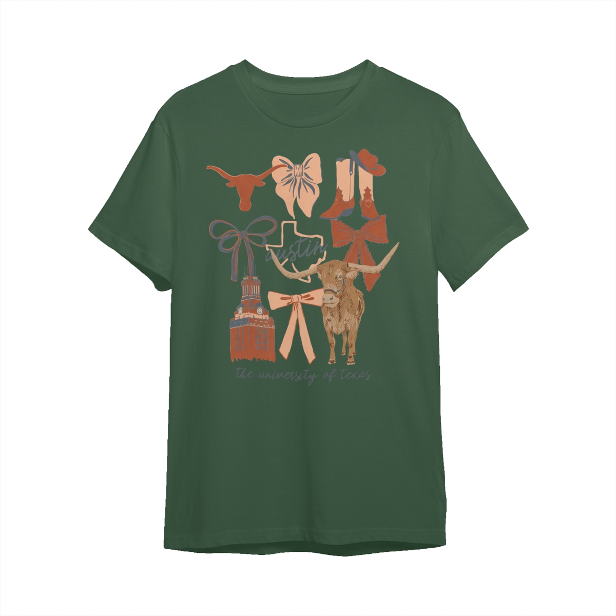 Texas Longhorns Vintage Coquette NCAA College T-Shirt – Teams Retro Cotton Crewneck, Preppy Girly Game Day Outfit, Cute Football Fan Tee, Sporty Fall Season Top, Trendy Gift for College Game Lovers Hand-Drawn T-Shirt