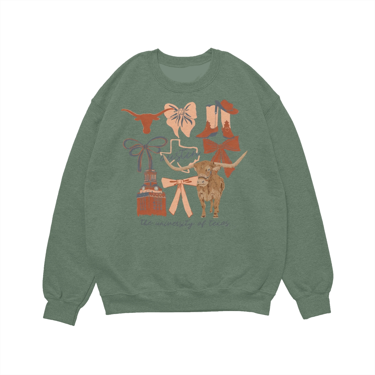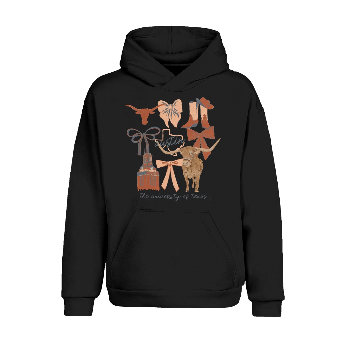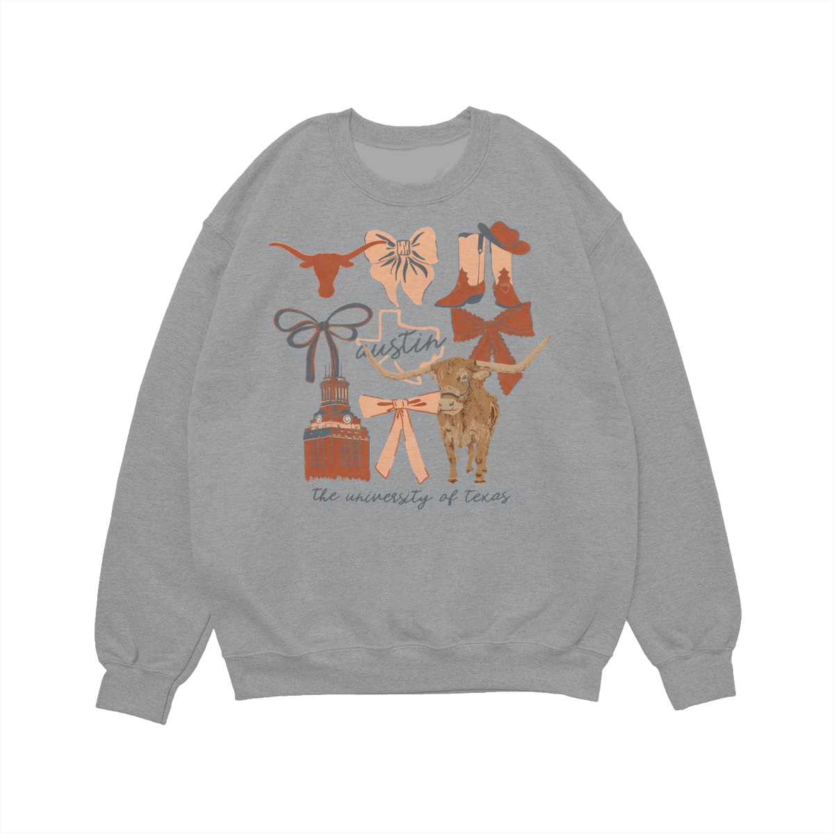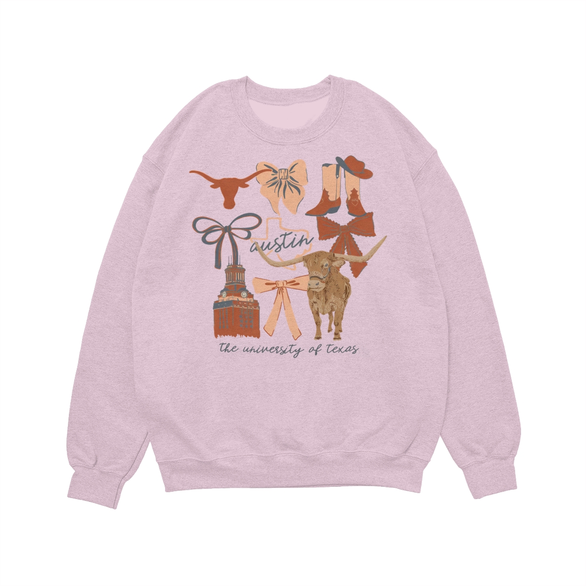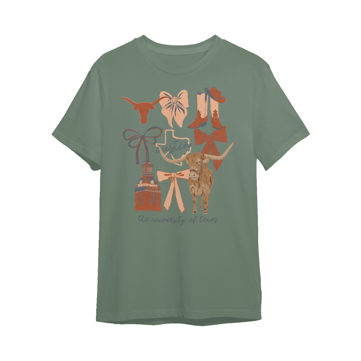 Texas Longhorns Vintage Coquette NCAA College T-Shirt – Teams Retro Cotton Crewneck, Preppy Girly Game Day Outfit, Cute Football Fan Tee, Sporty Fall Season Top, Trendy Gift for College Game Lovers Hand-Drawn T-Shirt