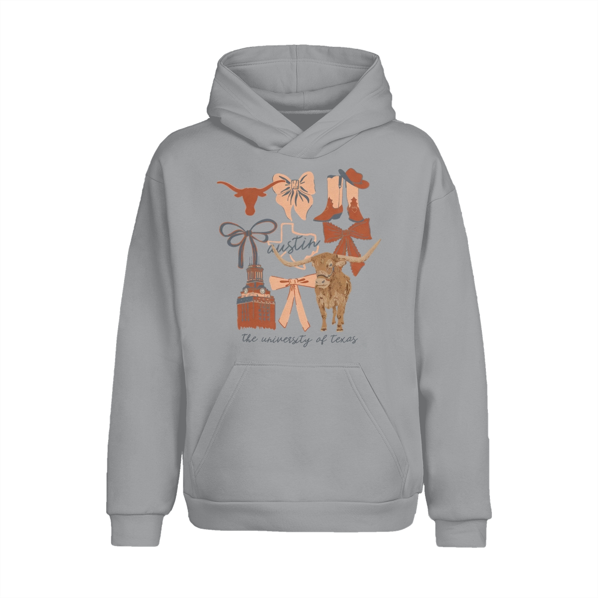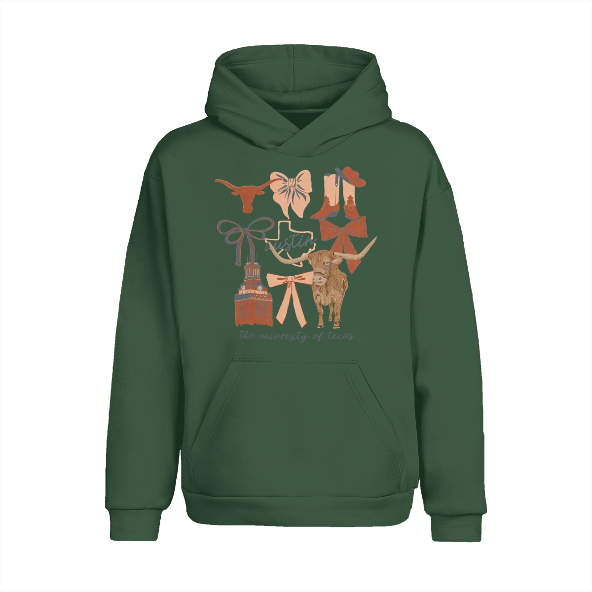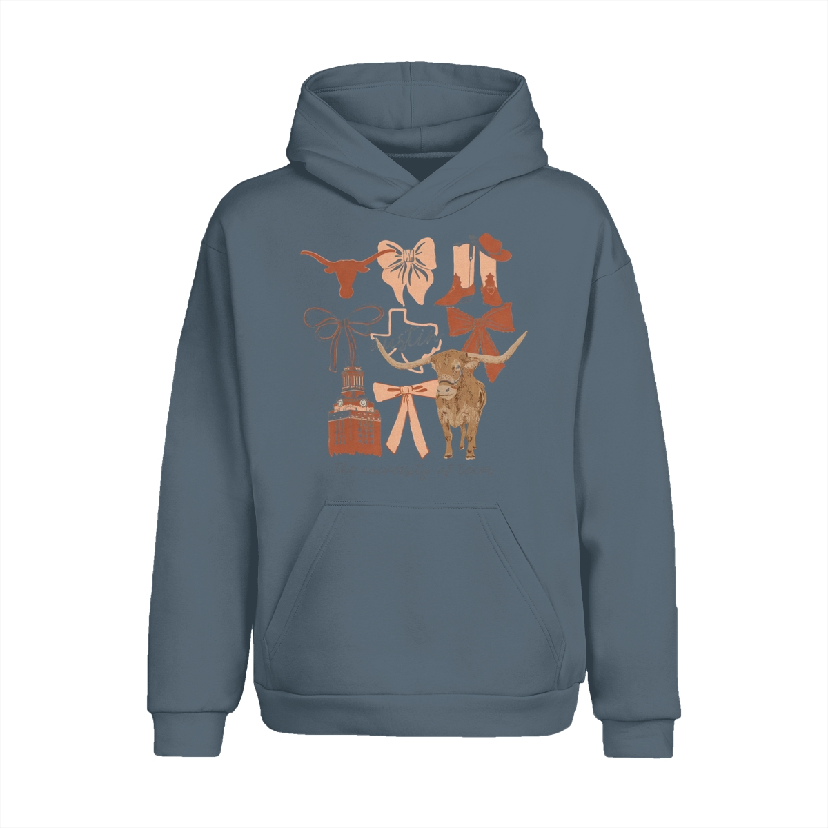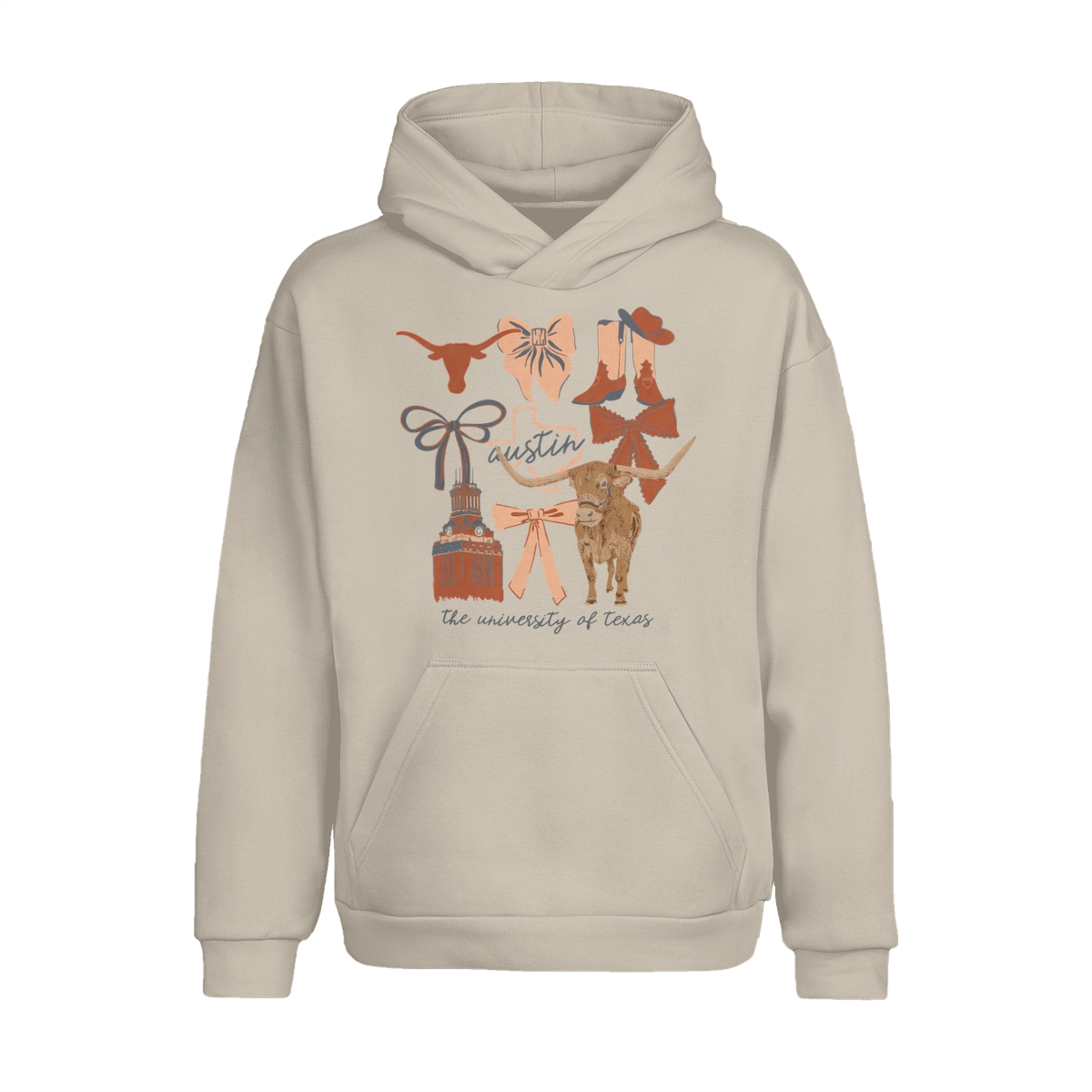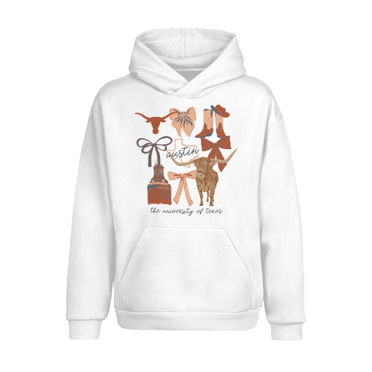 Texas Longhorns Vintage Coquette NCAA College T-Shirt – Teams Retro Cotton Crewneck, Preppy Girly Game Day Outfit, Cute Football Fan Tee, Sporty Fall Season Top, Trendy Gift for College Game Lovers Hand-Drawn T-Shirt