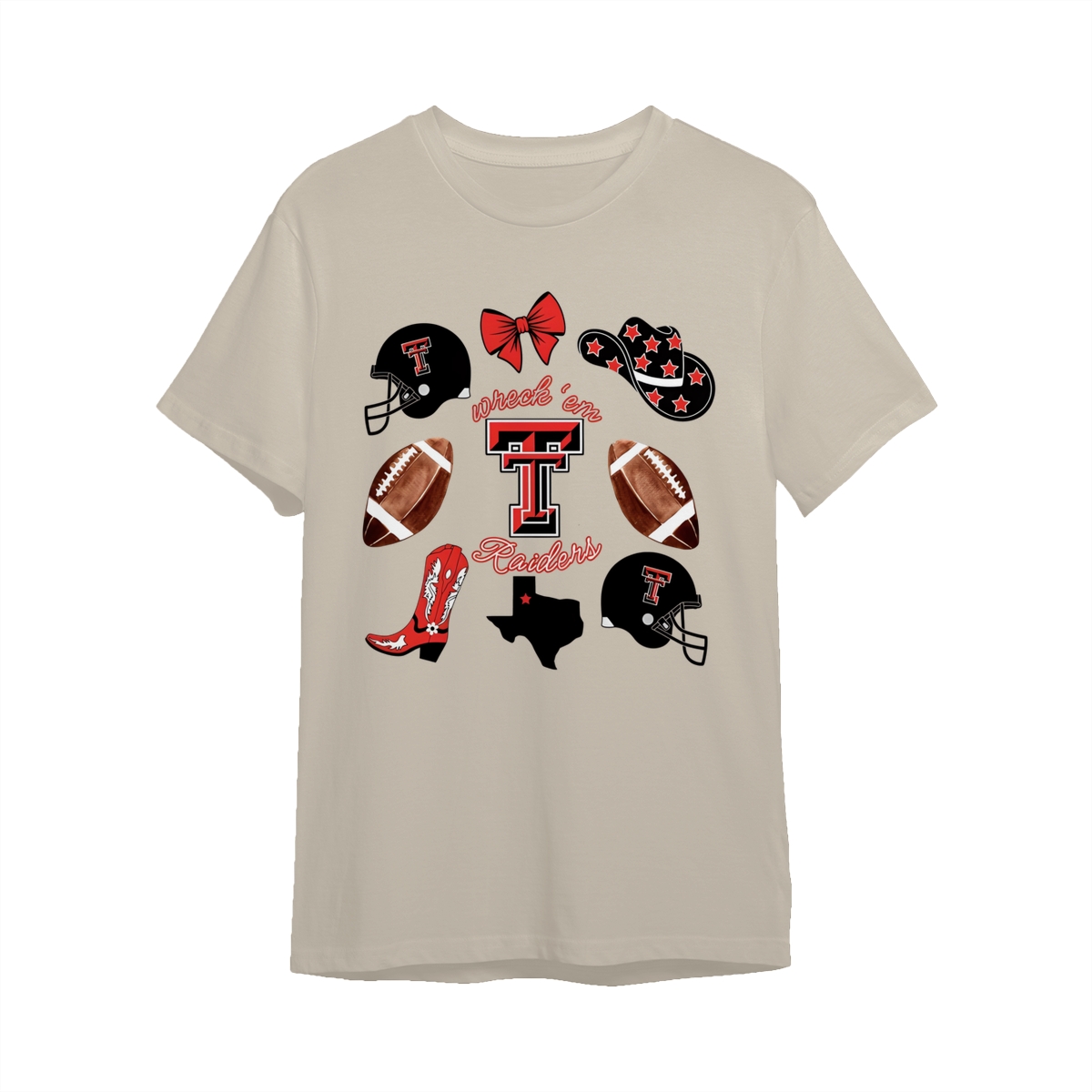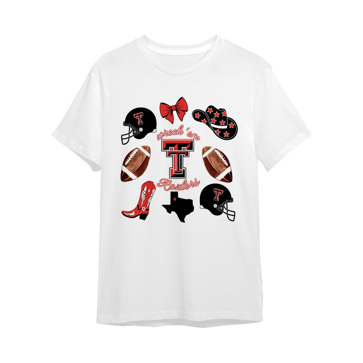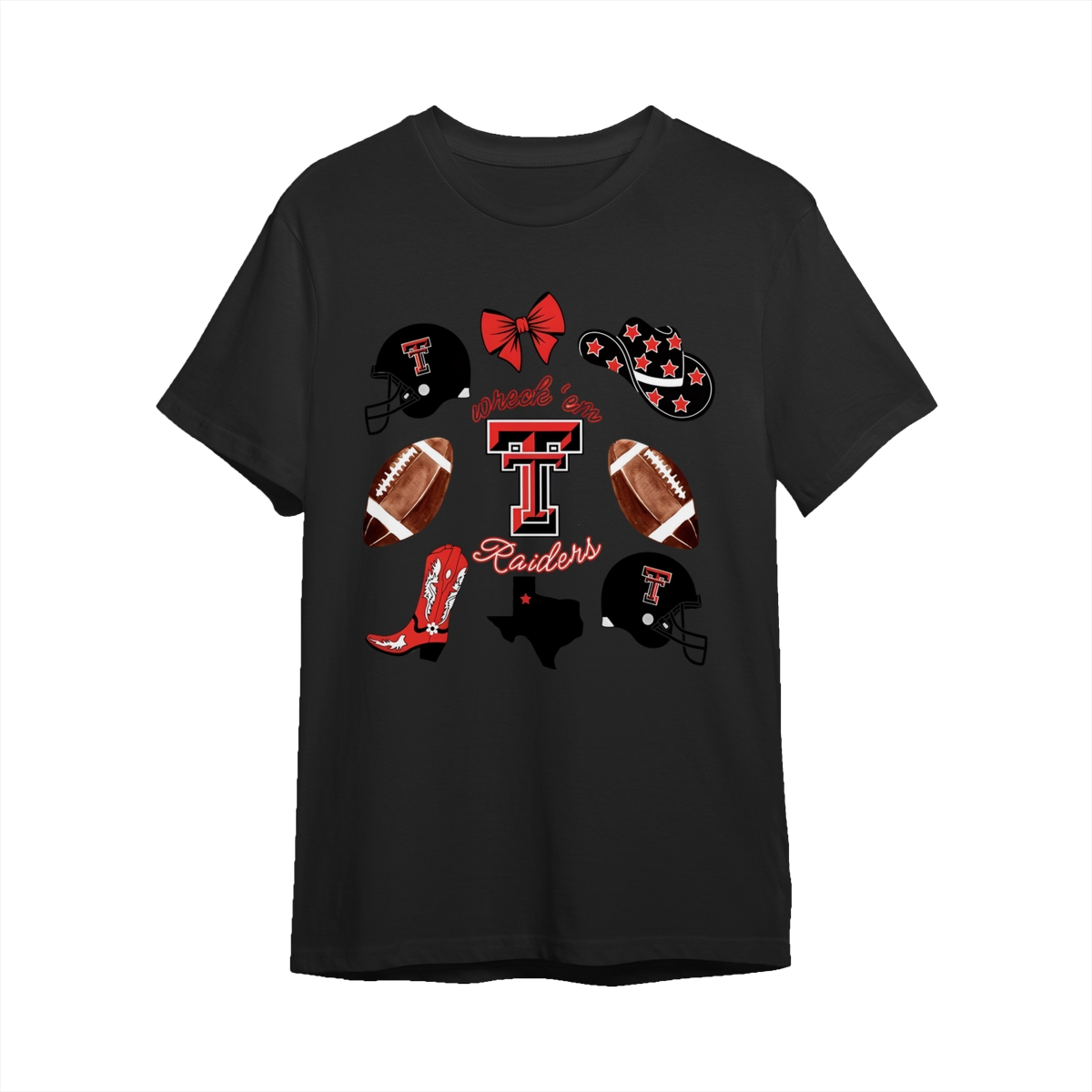 Texas Tech Wreck’em Raiders T-shirt | Red Raiders Football Design | College Spirit T-shirt | Game Day Graphic for Women