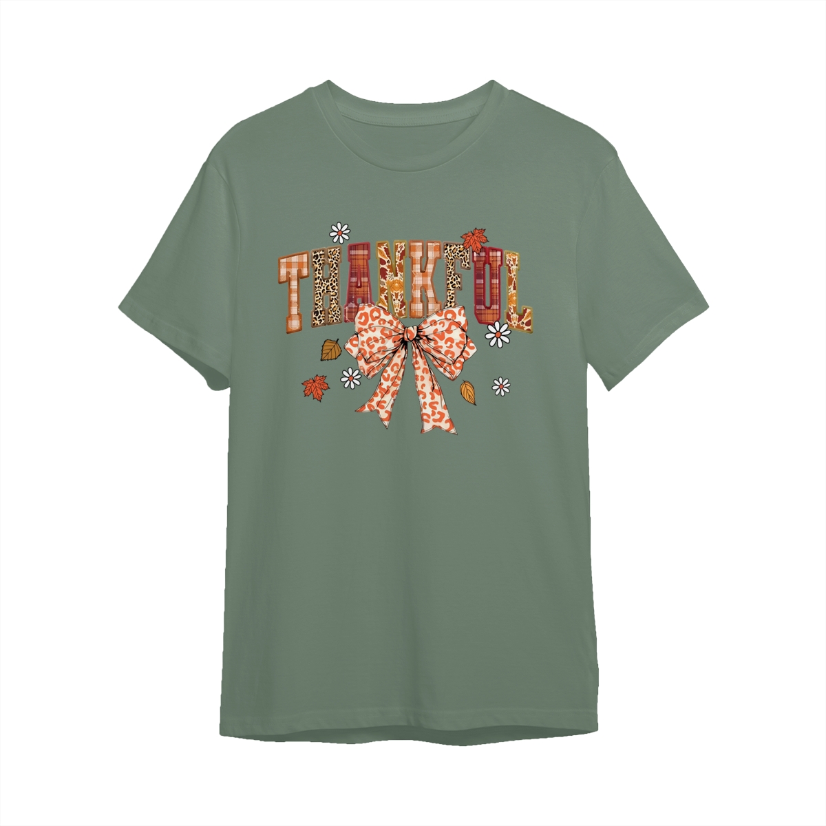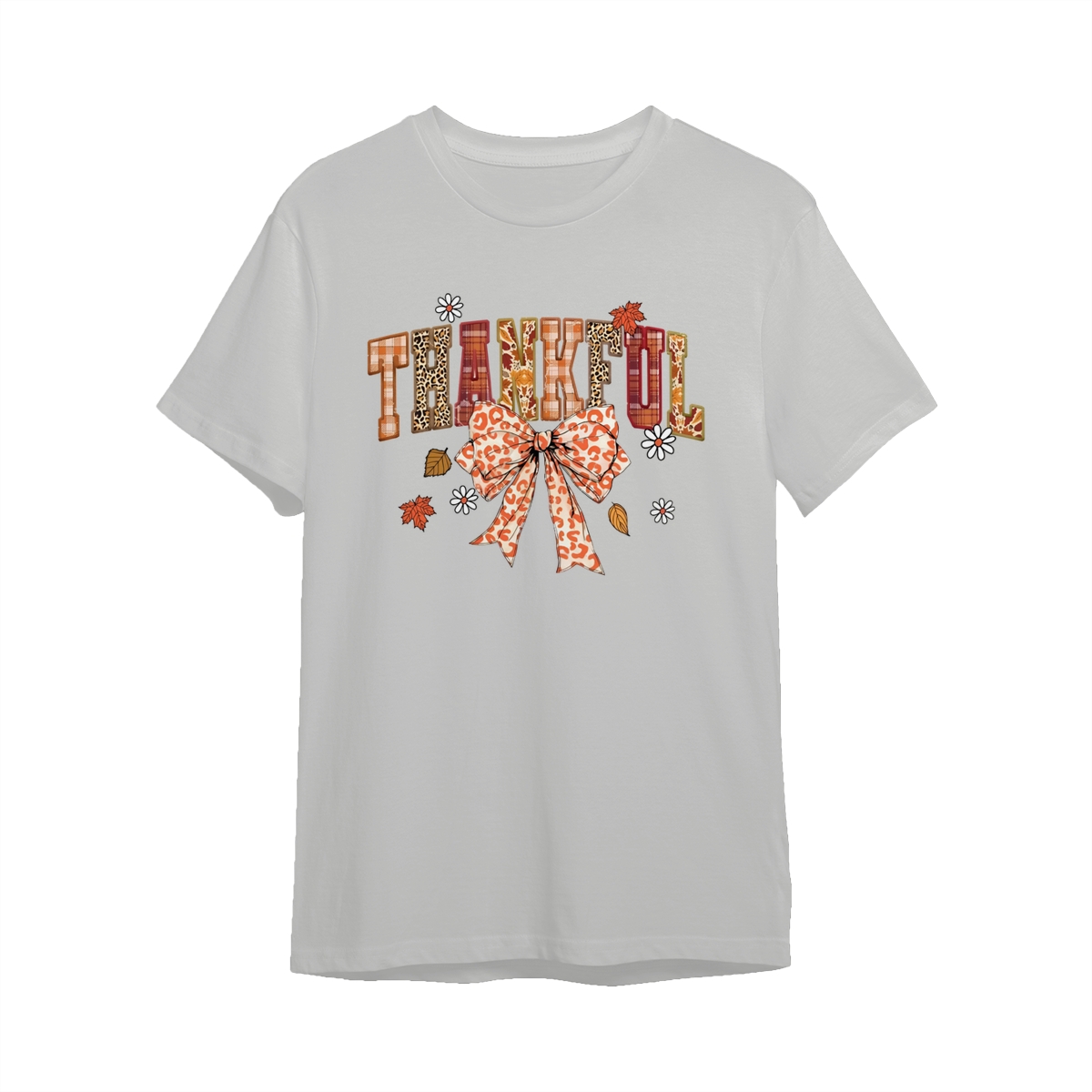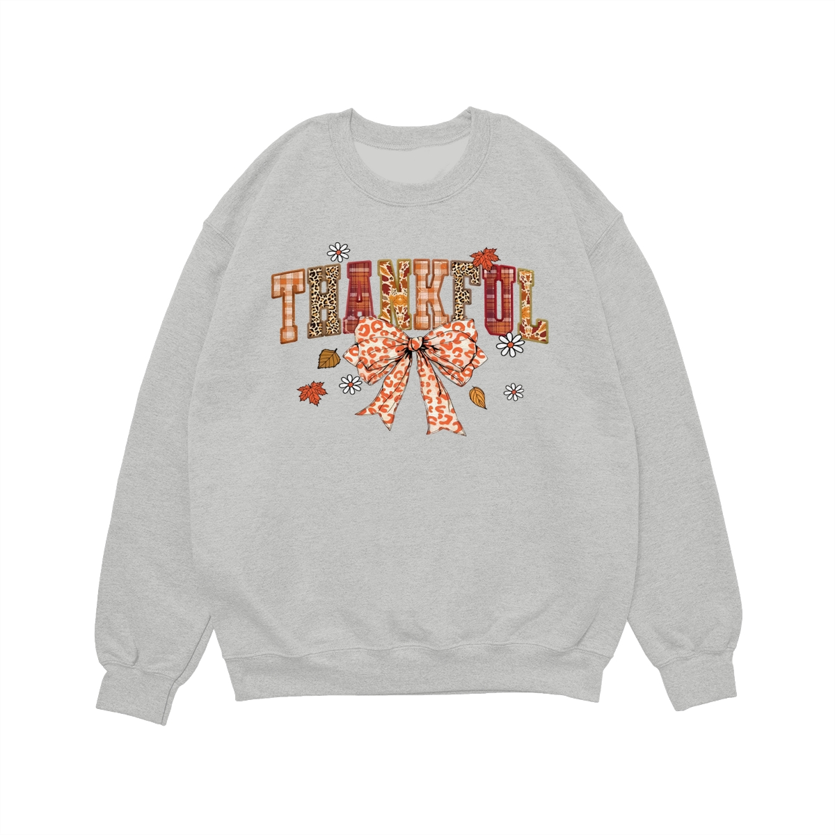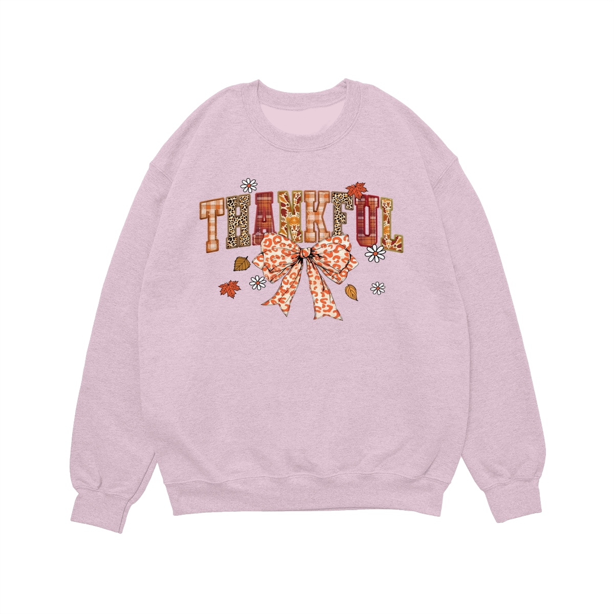 Thankful Coquette Sweatshirt Shirt, Cozy Fall T-Shirt, Autumn Season Sweatshirt, Thanksgiving Bow Leopard Graphic Tee, Cute Unisex Autumn Outfit, Holiday Fall Top for Women and Men