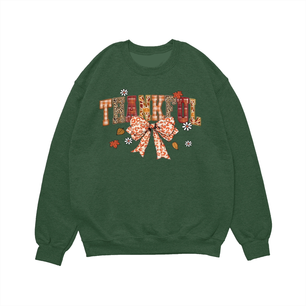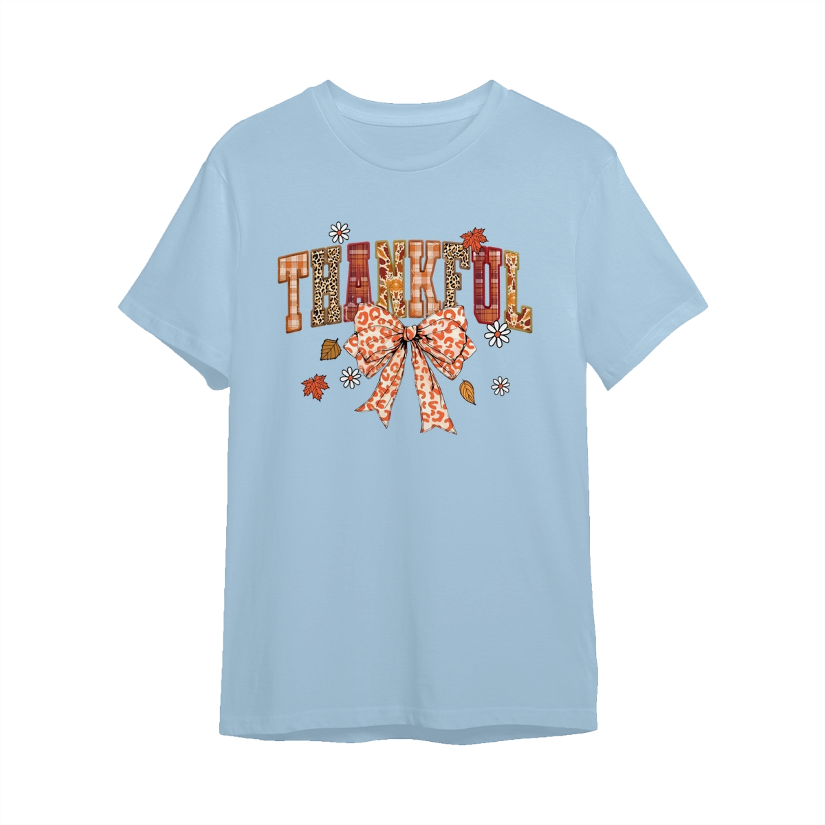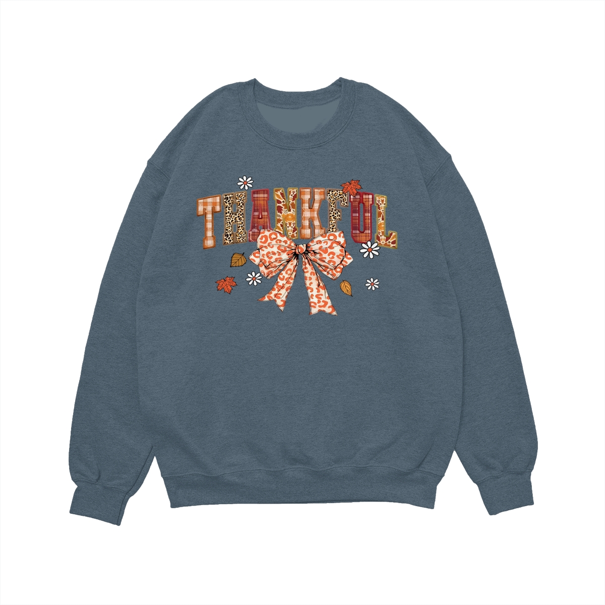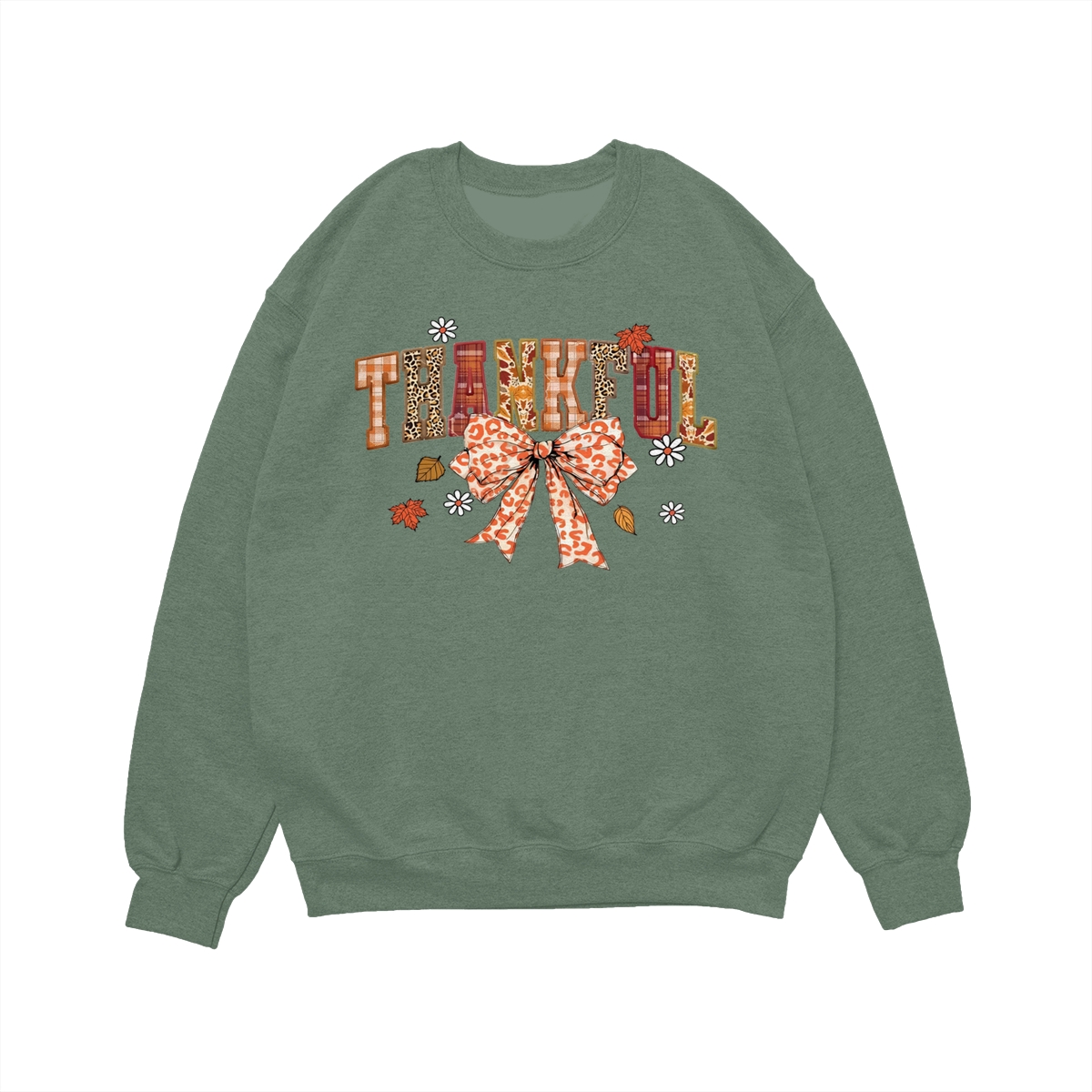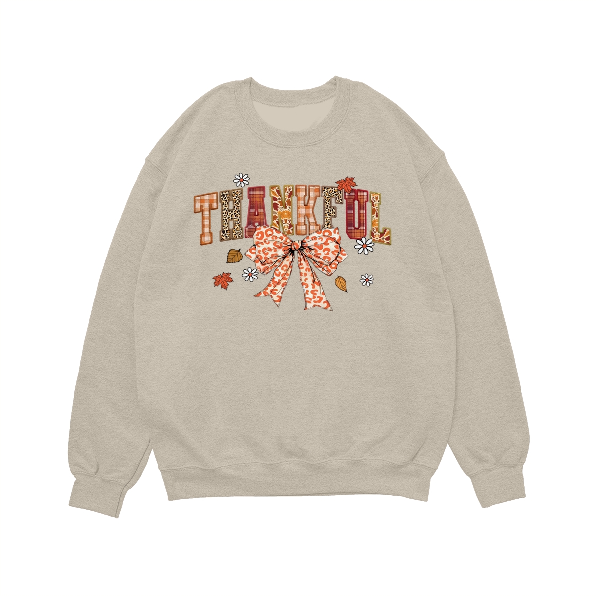 Thankful Coquette Sweatshirt Shirt, Cozy Fall T-Shirt, Autumn Season Sweatshirt, Thanksgiving Bow Leopard Graphic Tee, Cute Unisex Autumn Outfit, Holiday Fall Top for Women and Men