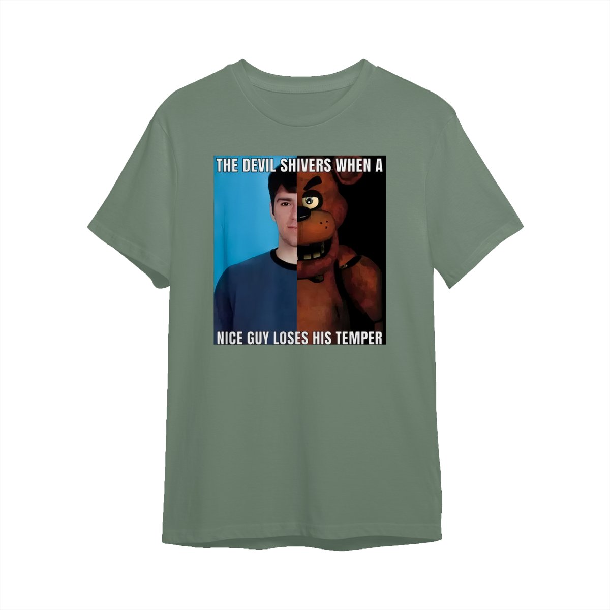 The Devil Shivers Freddy Fazbear Meme T-Shirt: A Vibrant, Iconic Design that Celebrates FNAF Humor and the Passion of Music Fans Everywhere