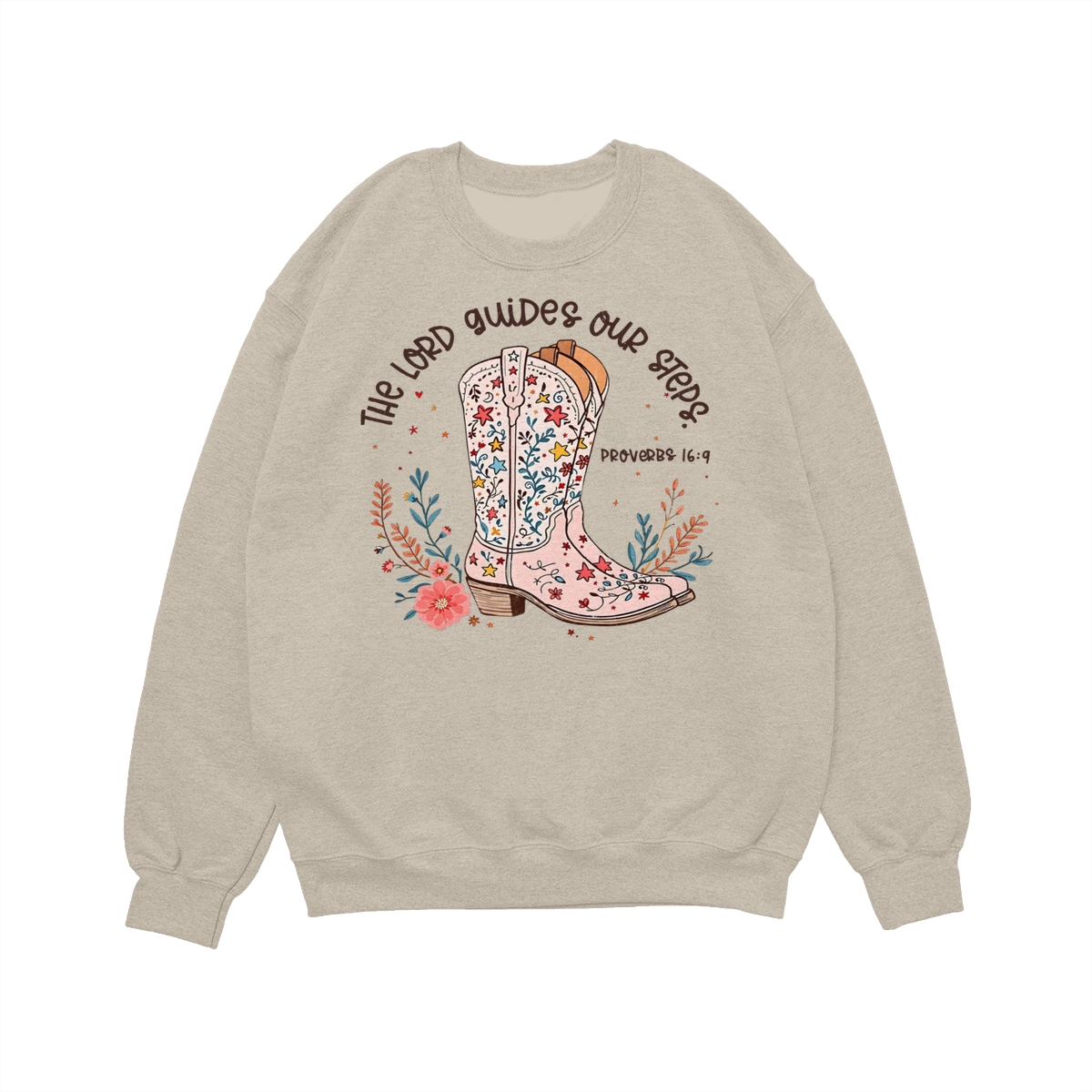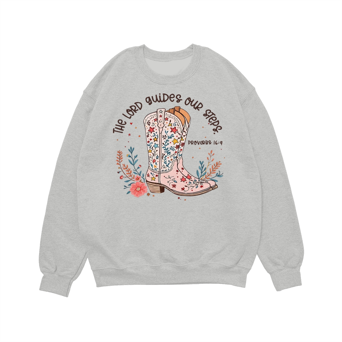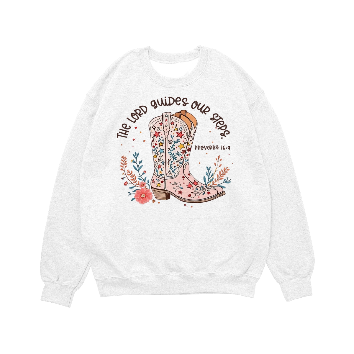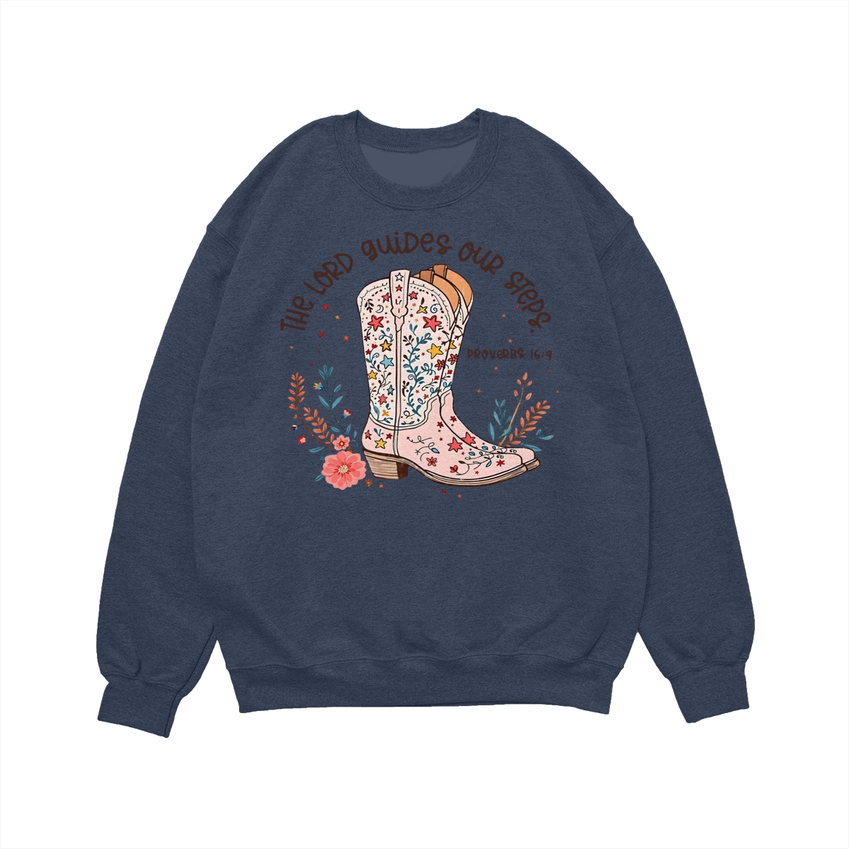 The Lord Guides Our Steps Western Christian Sweater, Walk By Faith Bible Verse Shirt, Cowgirl Boots Wildflower Tee, Jesus Apparel