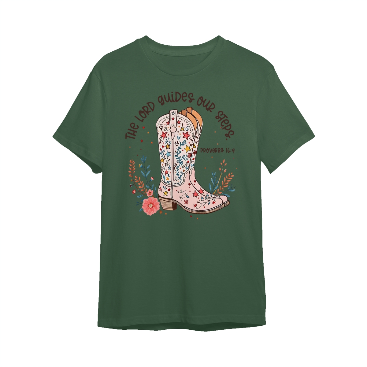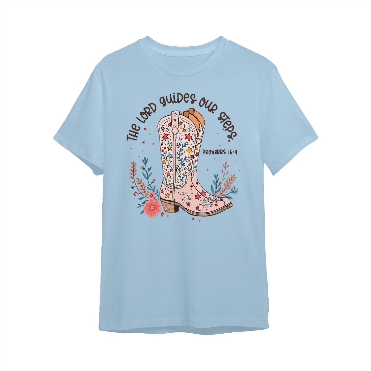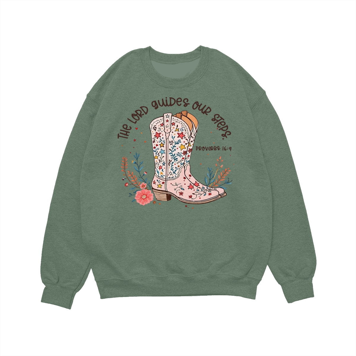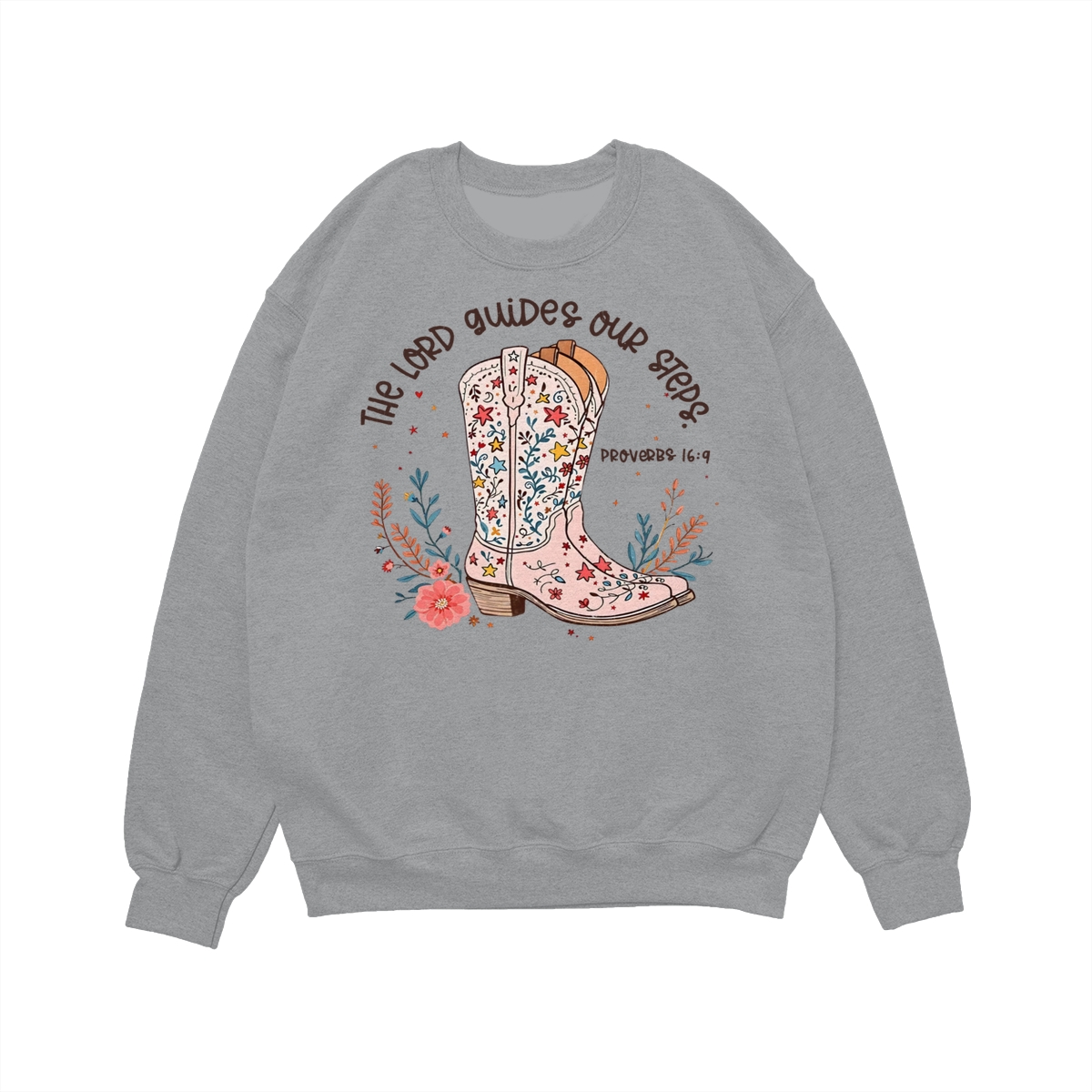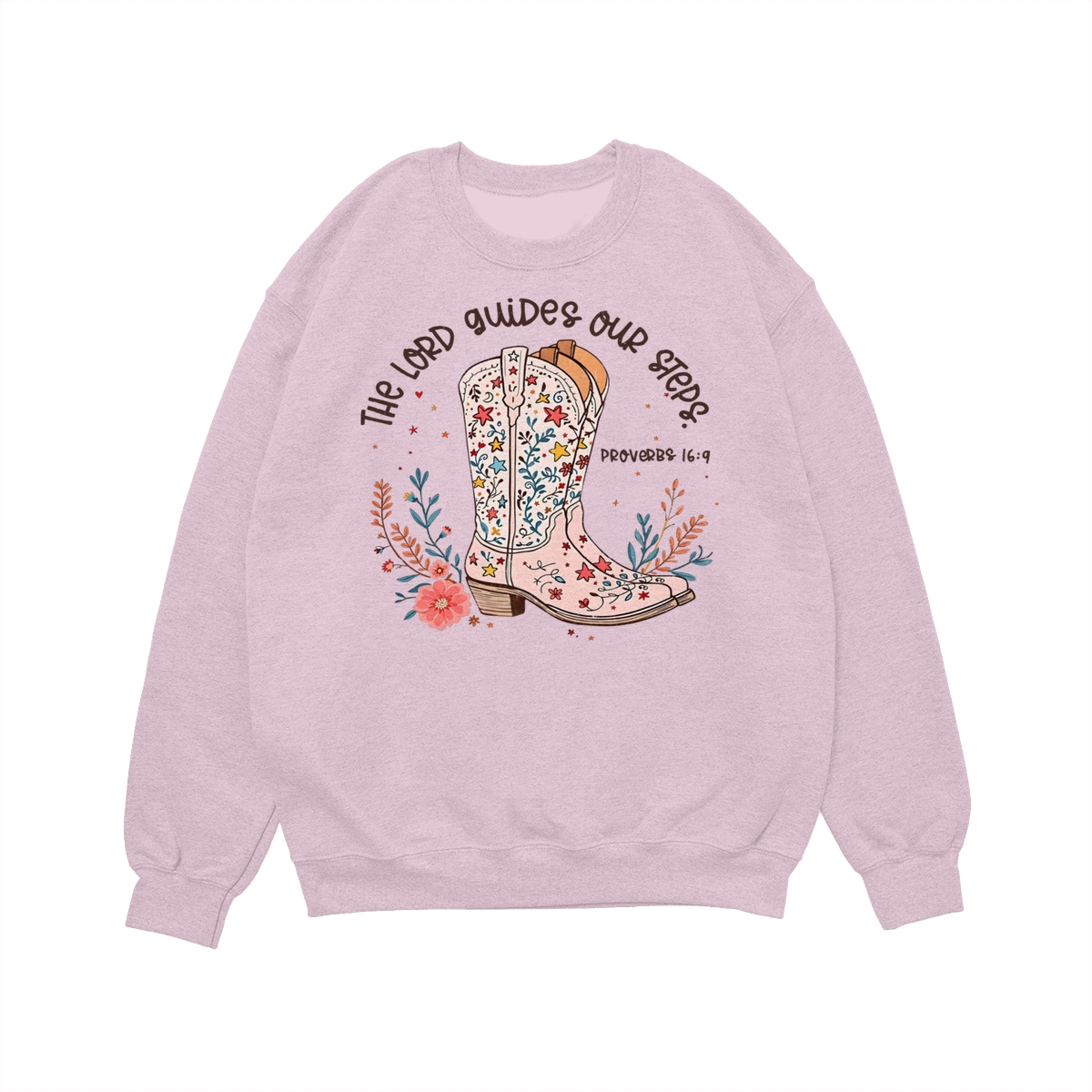 The Lord Guides Our Steps Western Christian Sweater, Walk By Faith Bible Verse Shirt, Cowgirl Boots Wildflower Tee, Jesus Apparel