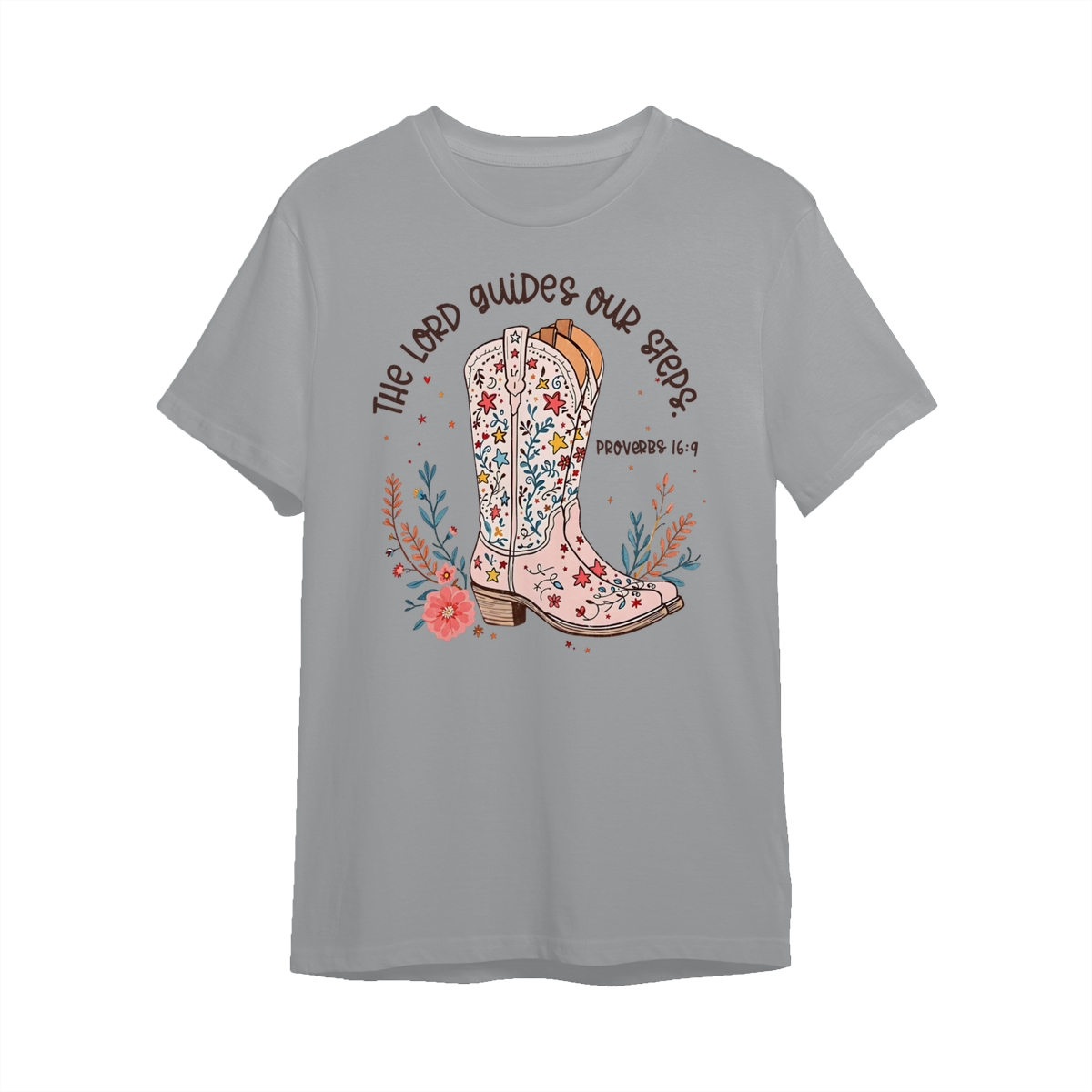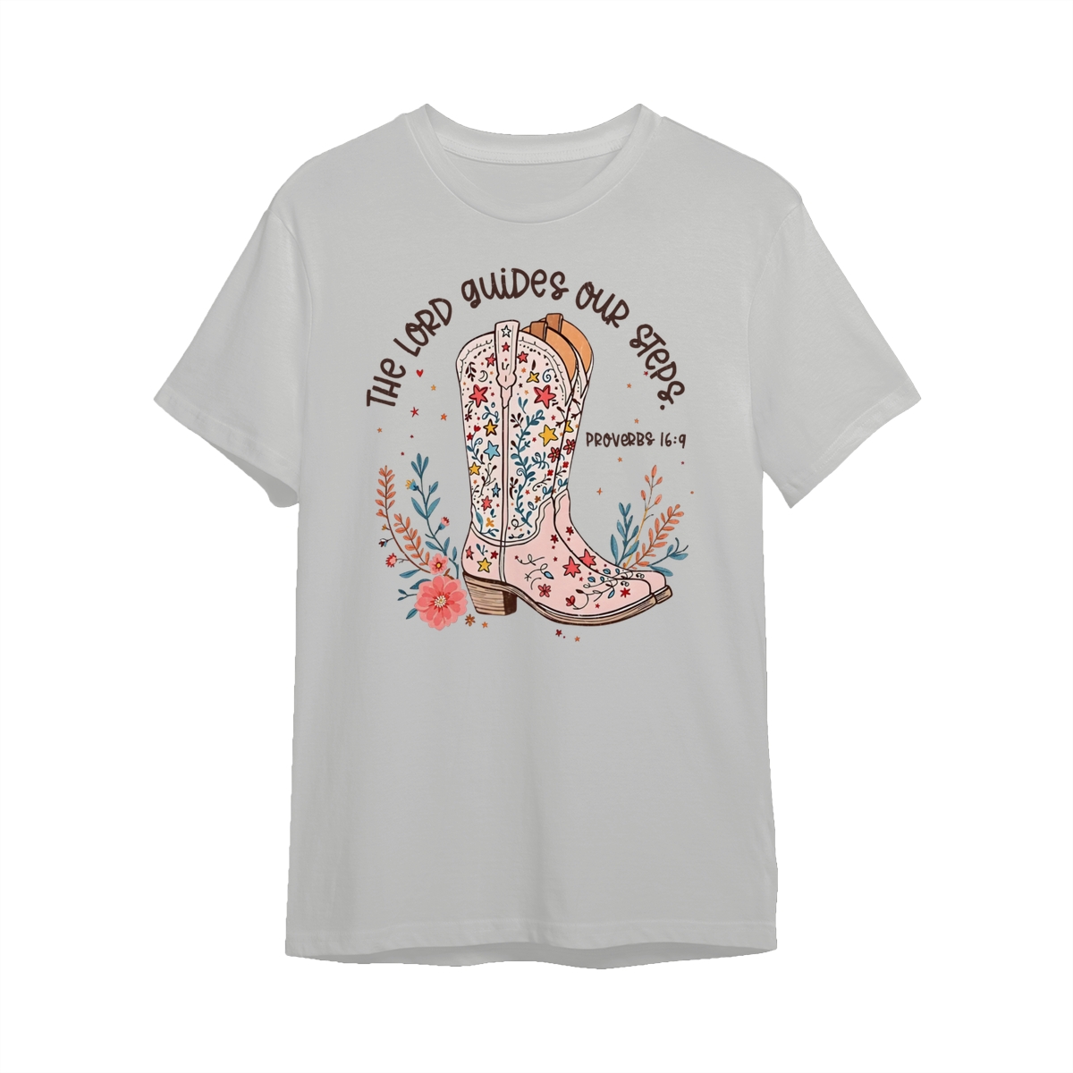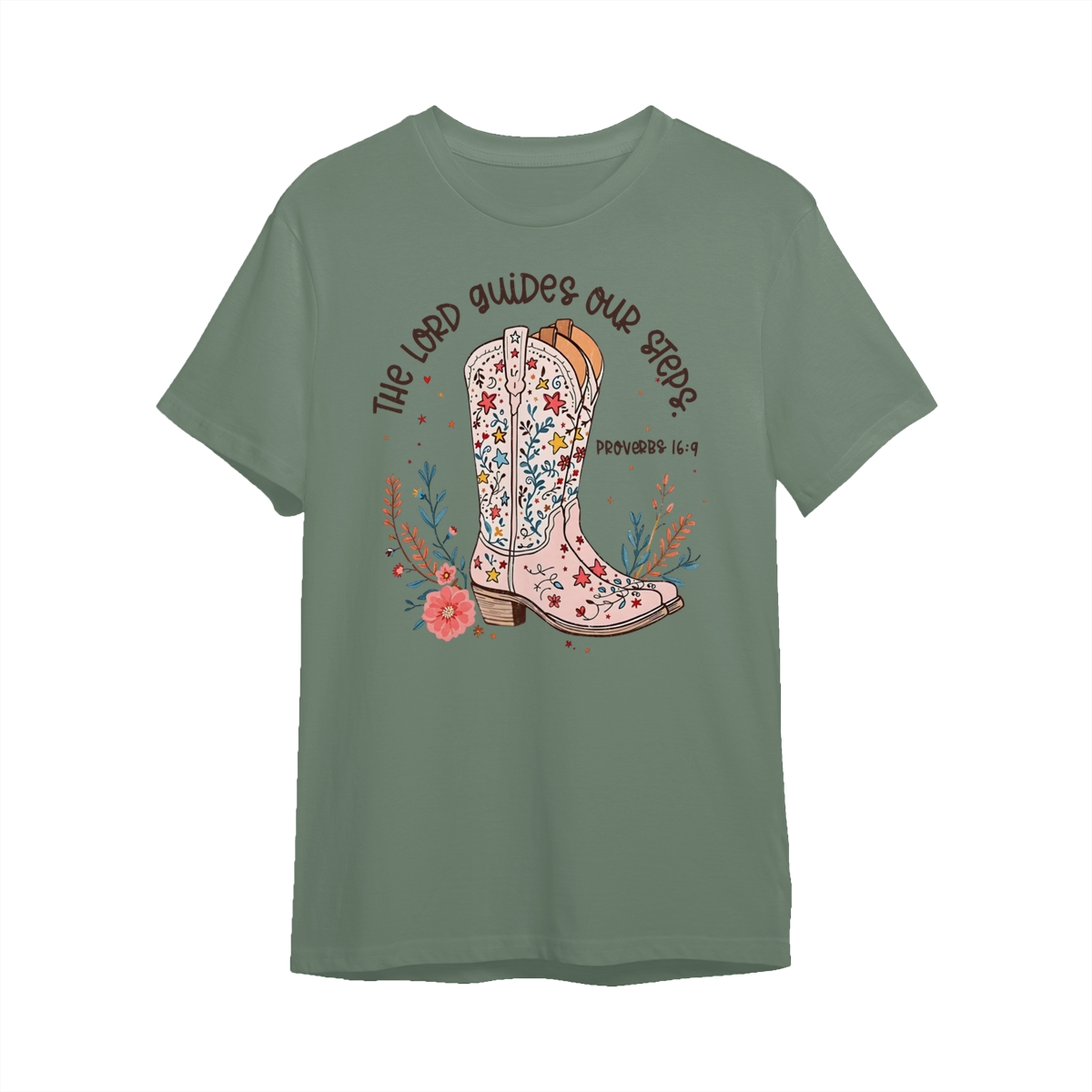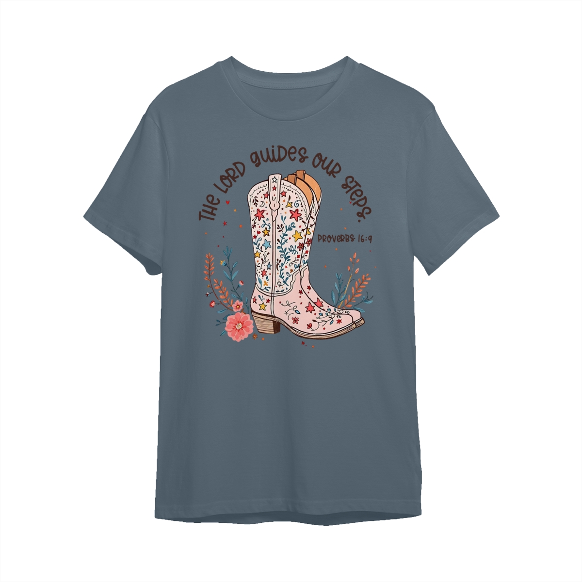 The Lord Guides Our Steps Western Christian Sweater, Walk By Faith Bible Verse Shirt, Cowgirl Boots Wildflower Tee, Jesus Apparel