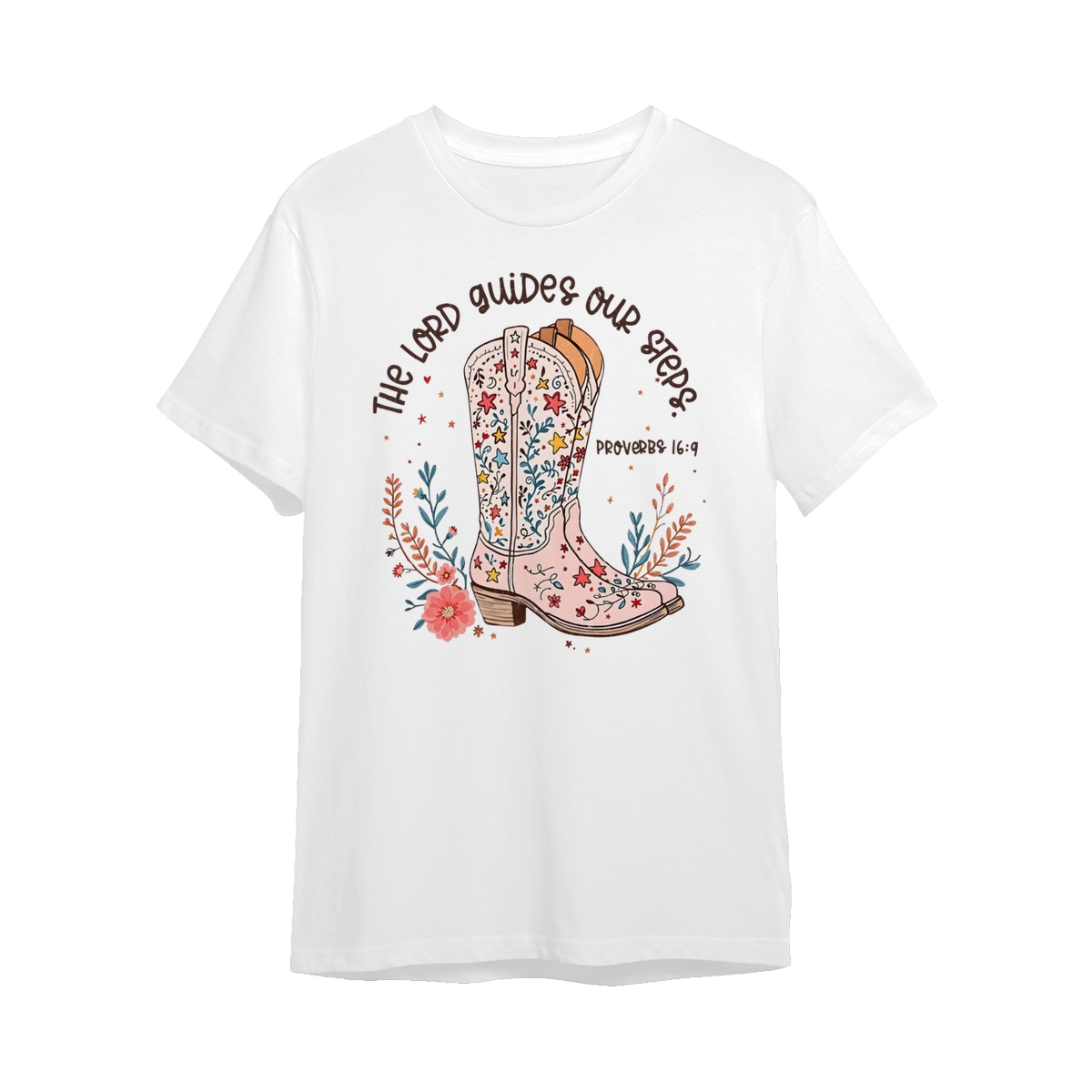 The Lord Guides Our Steps Western Christian Sweater, Walk By Faith Bible Verse Shirt, Cowgirl Boots Wildflower Tee, Jesus Apparel