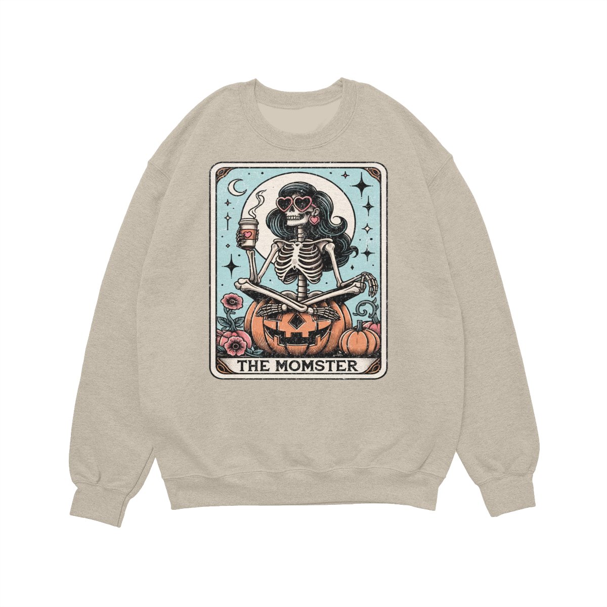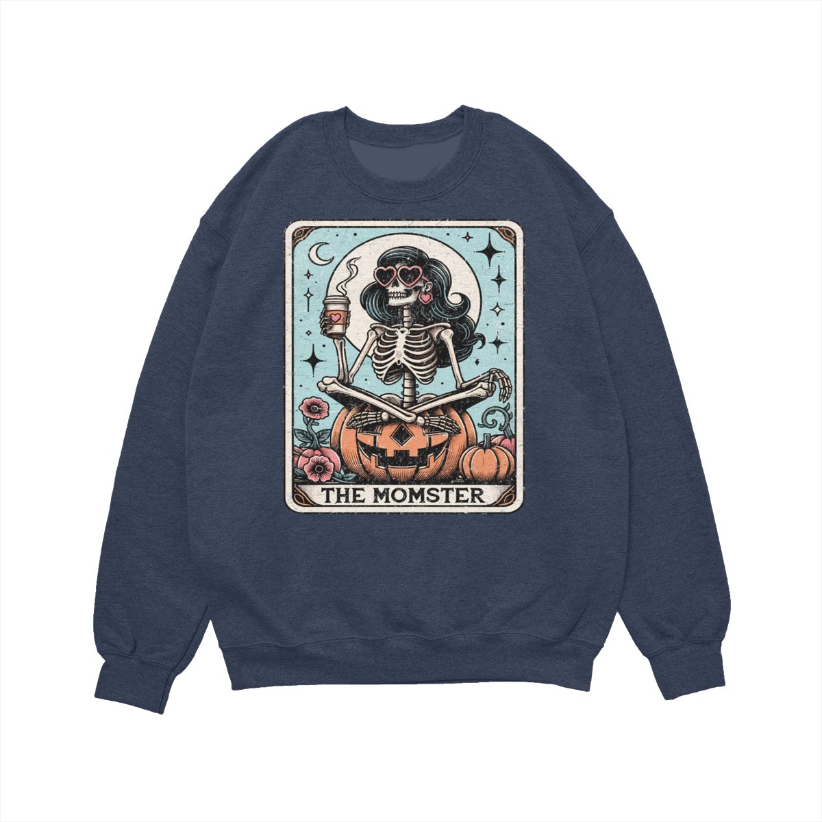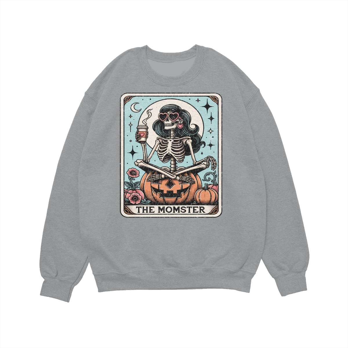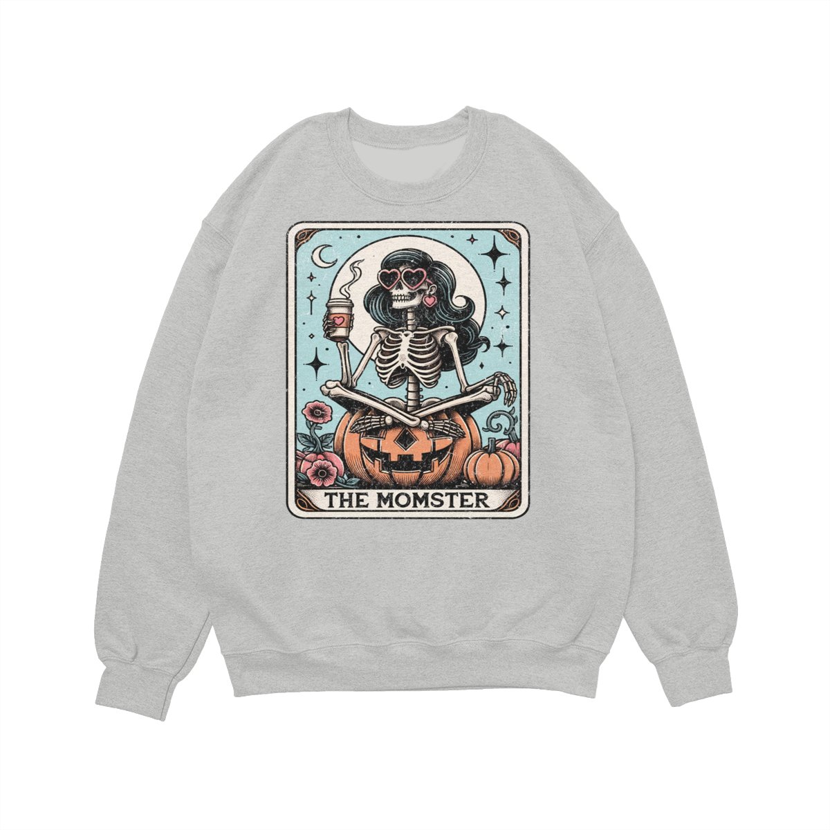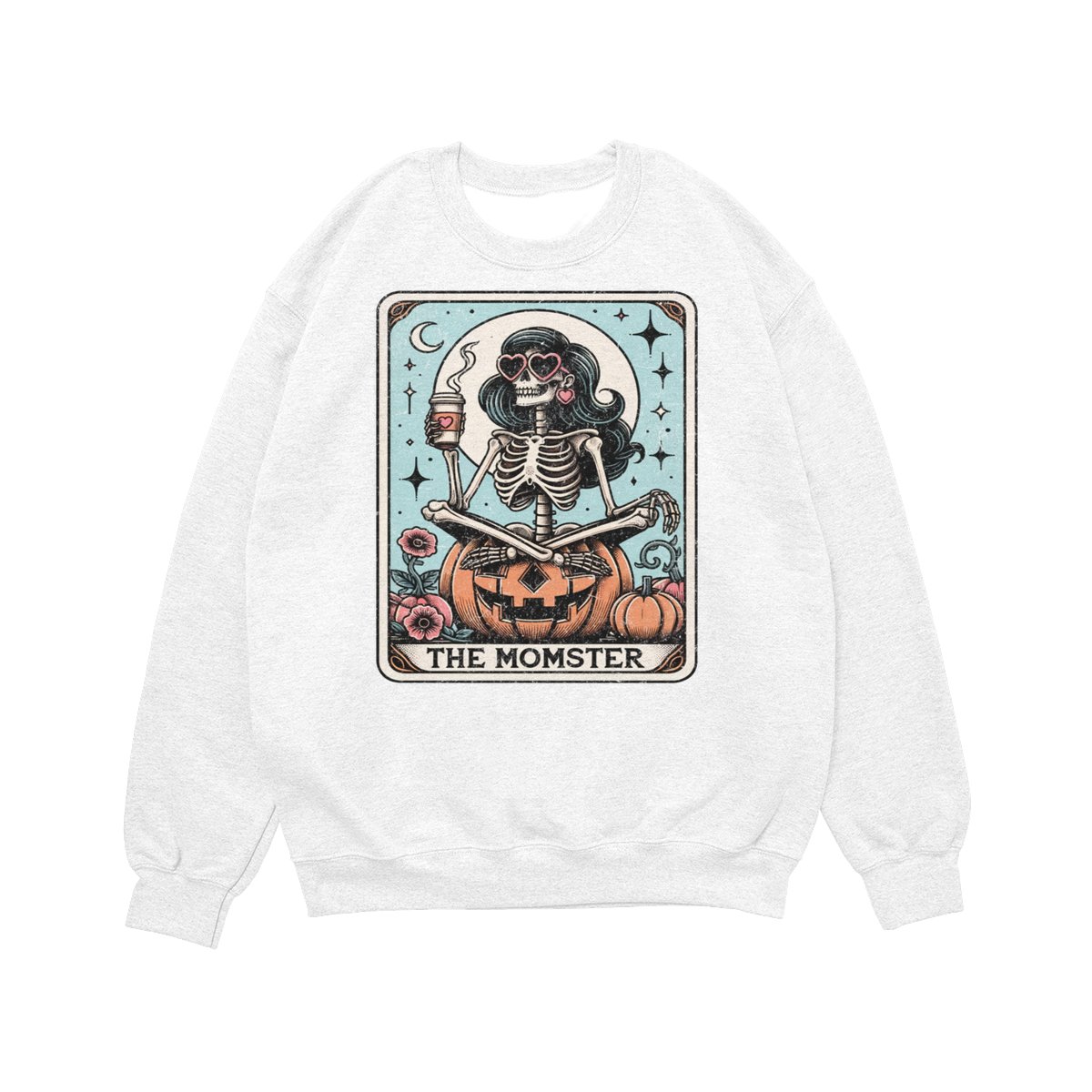 The Momster Tarot Sweatshirt, Funny Retro Halloween Skeleton Mom Pullover, Cozy Spooky Season Sweater for Cool Mama
