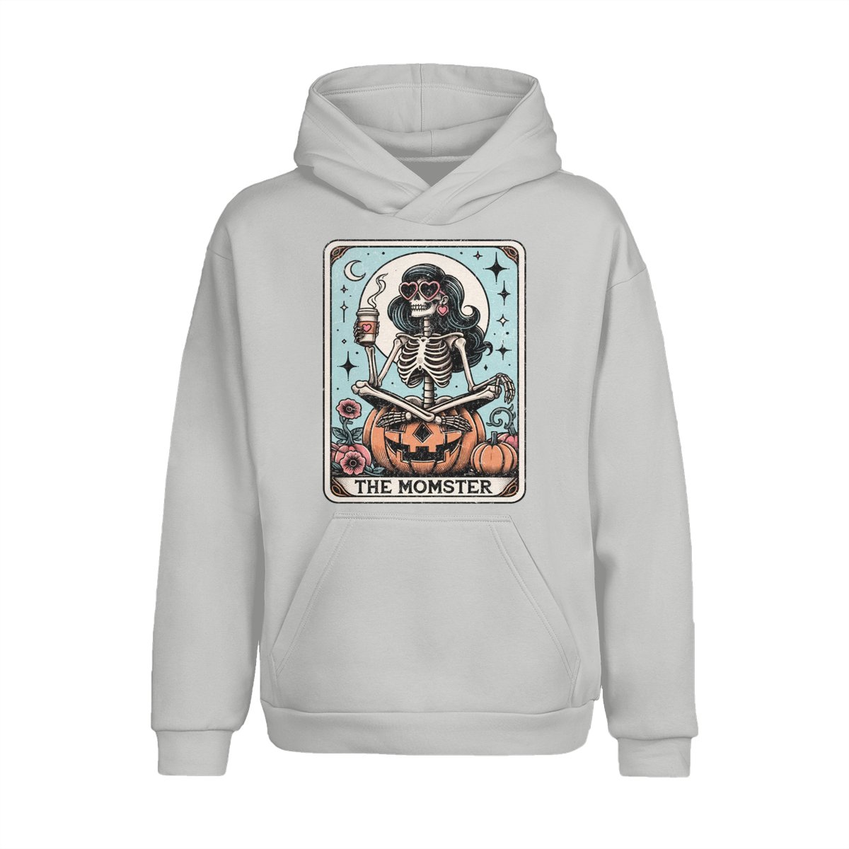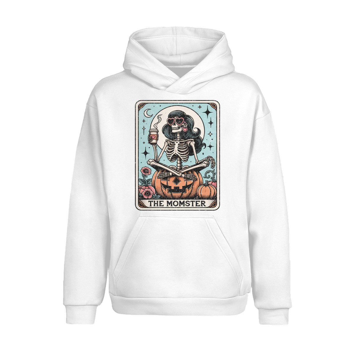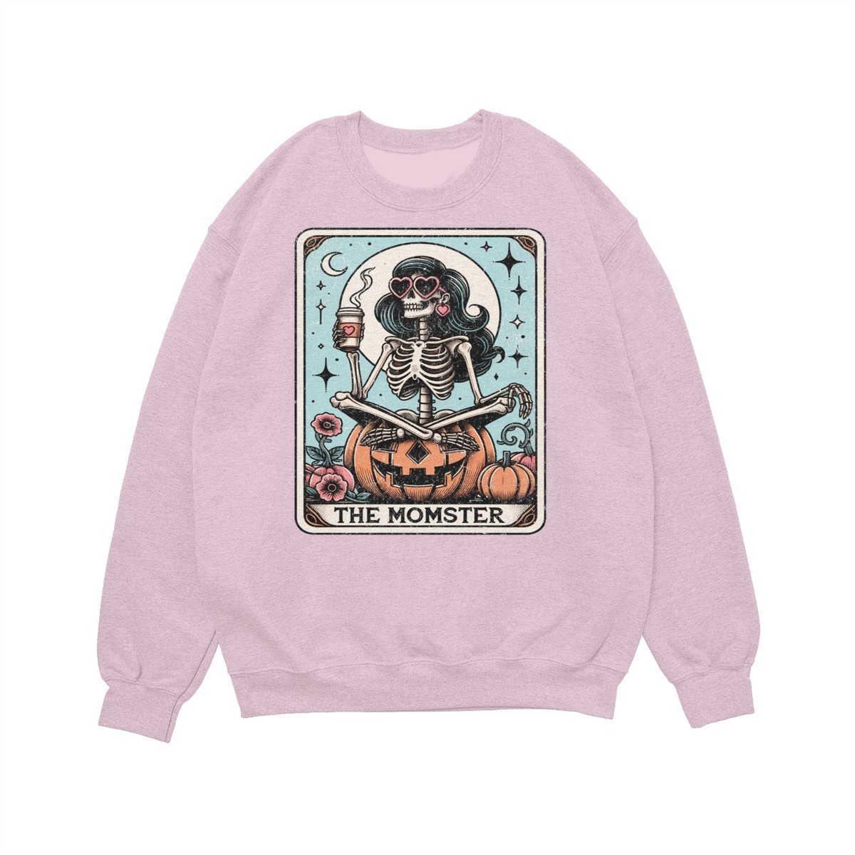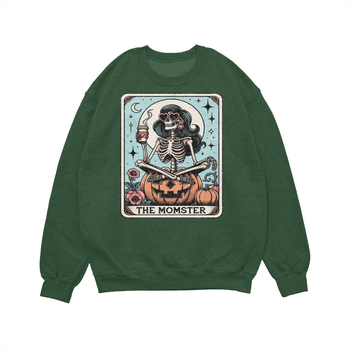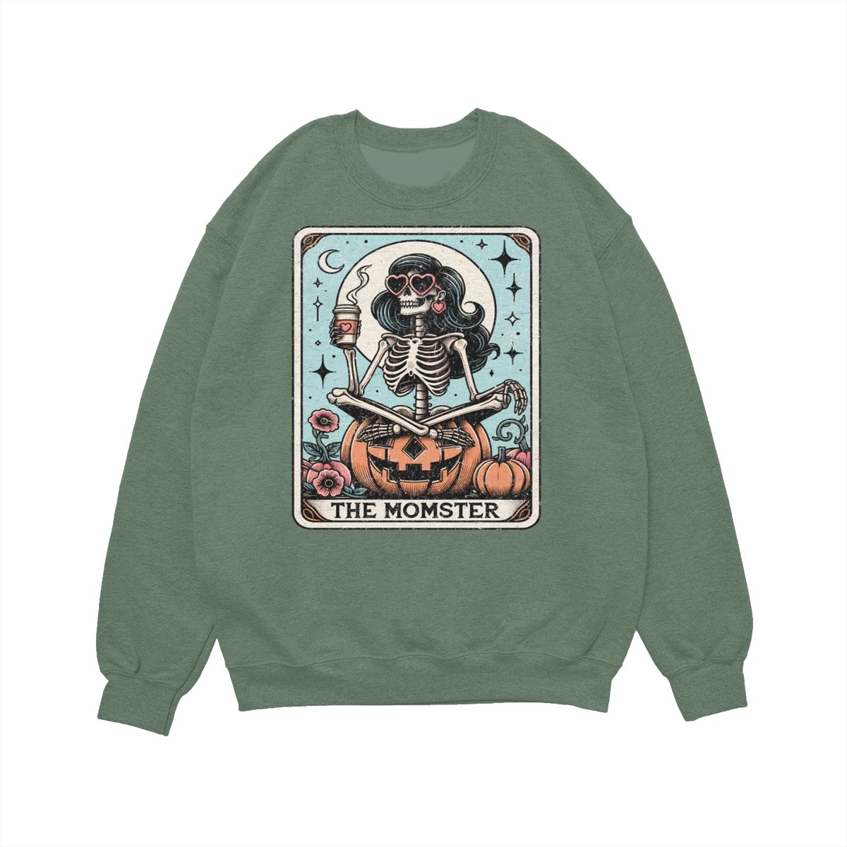 The Momster Tarot Sweatshirt, Funny Retro Halloween Skeleton Mom Pullover, Cozy Spooky Season Sweater for Cool Mama