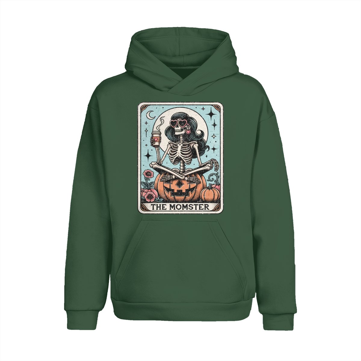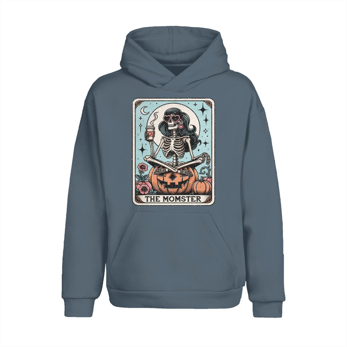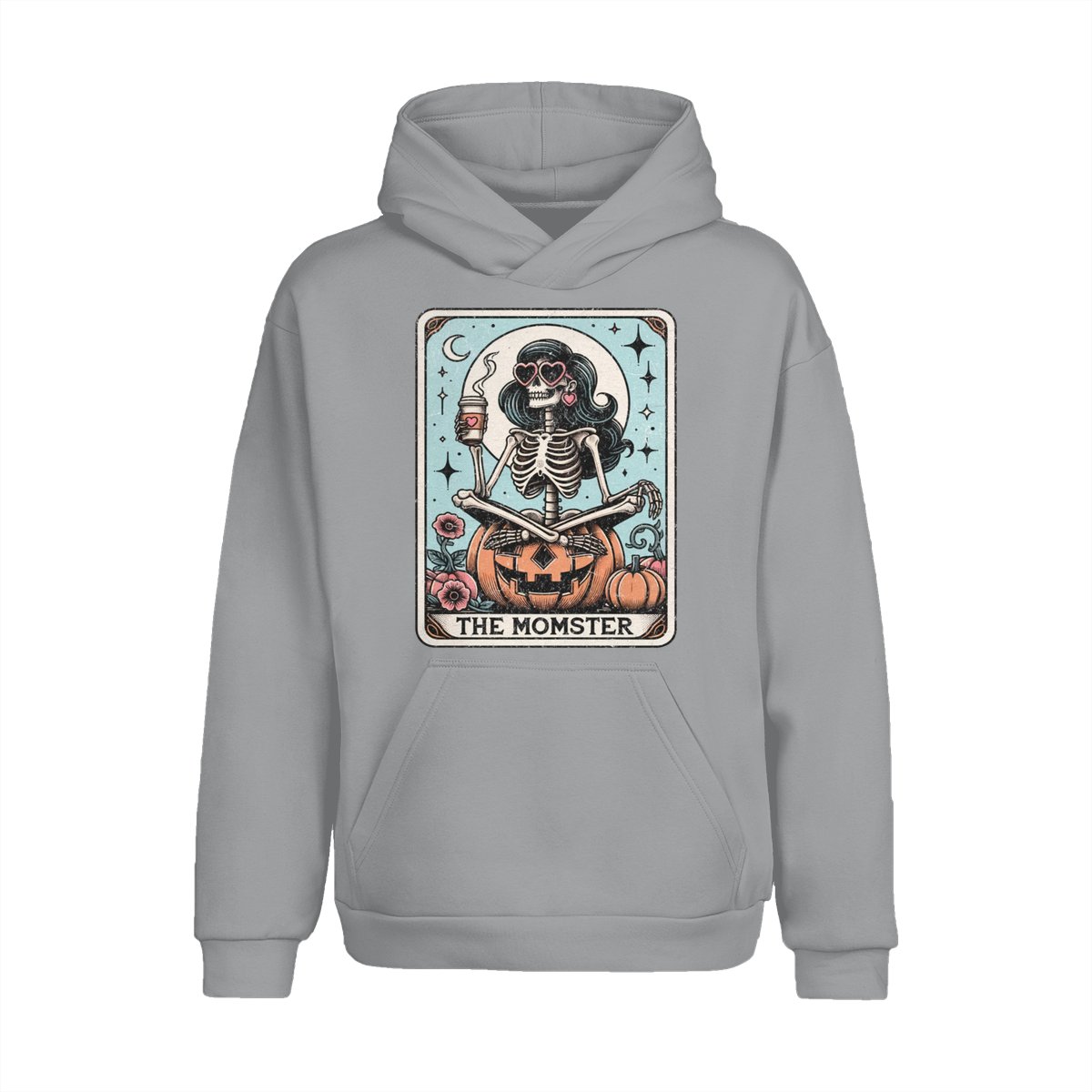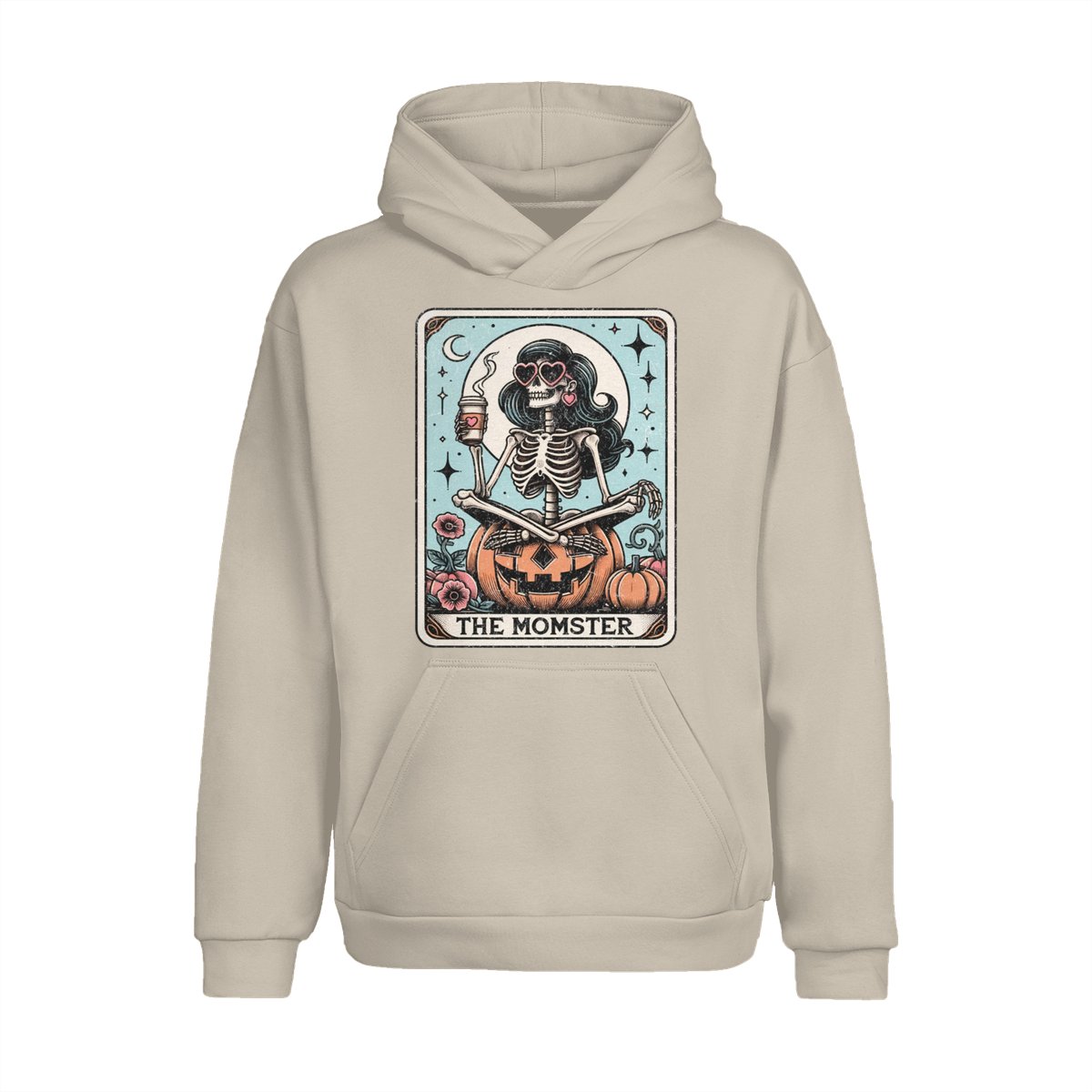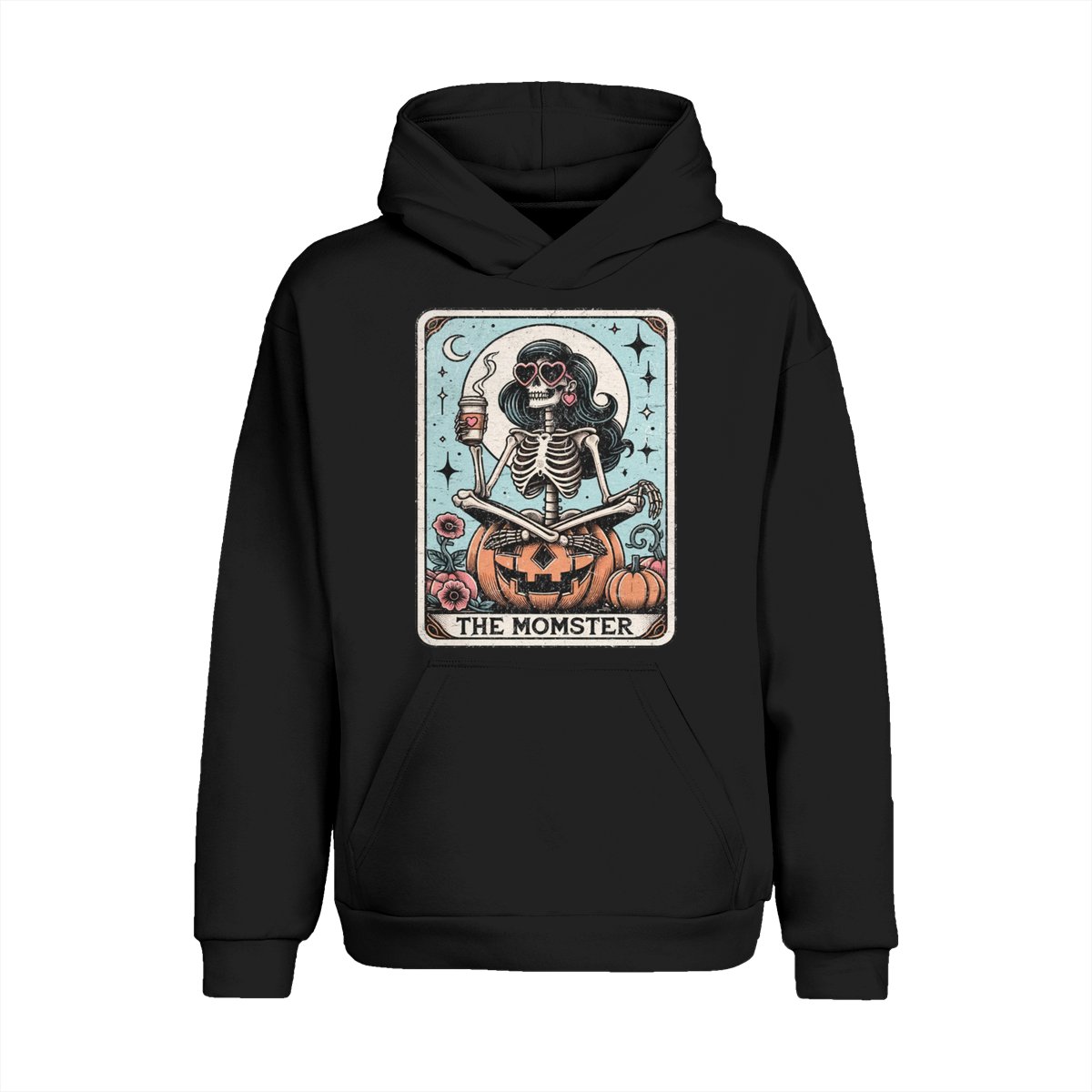 The Momster Tarot Sweatshirt, Funny Retro Halloween Skeleton Mom Pullover, Cozy Spooky Season Sweater for Cool Mama