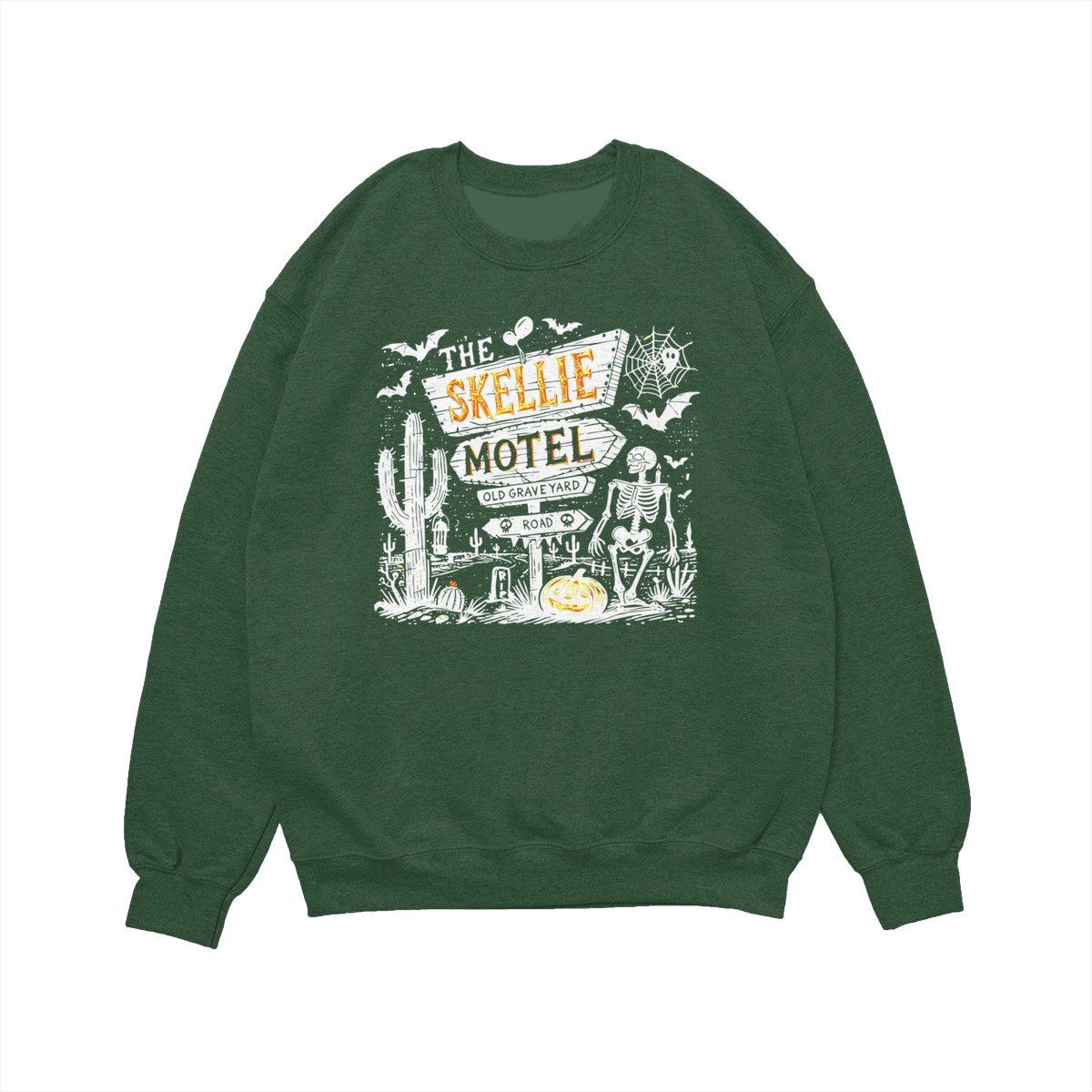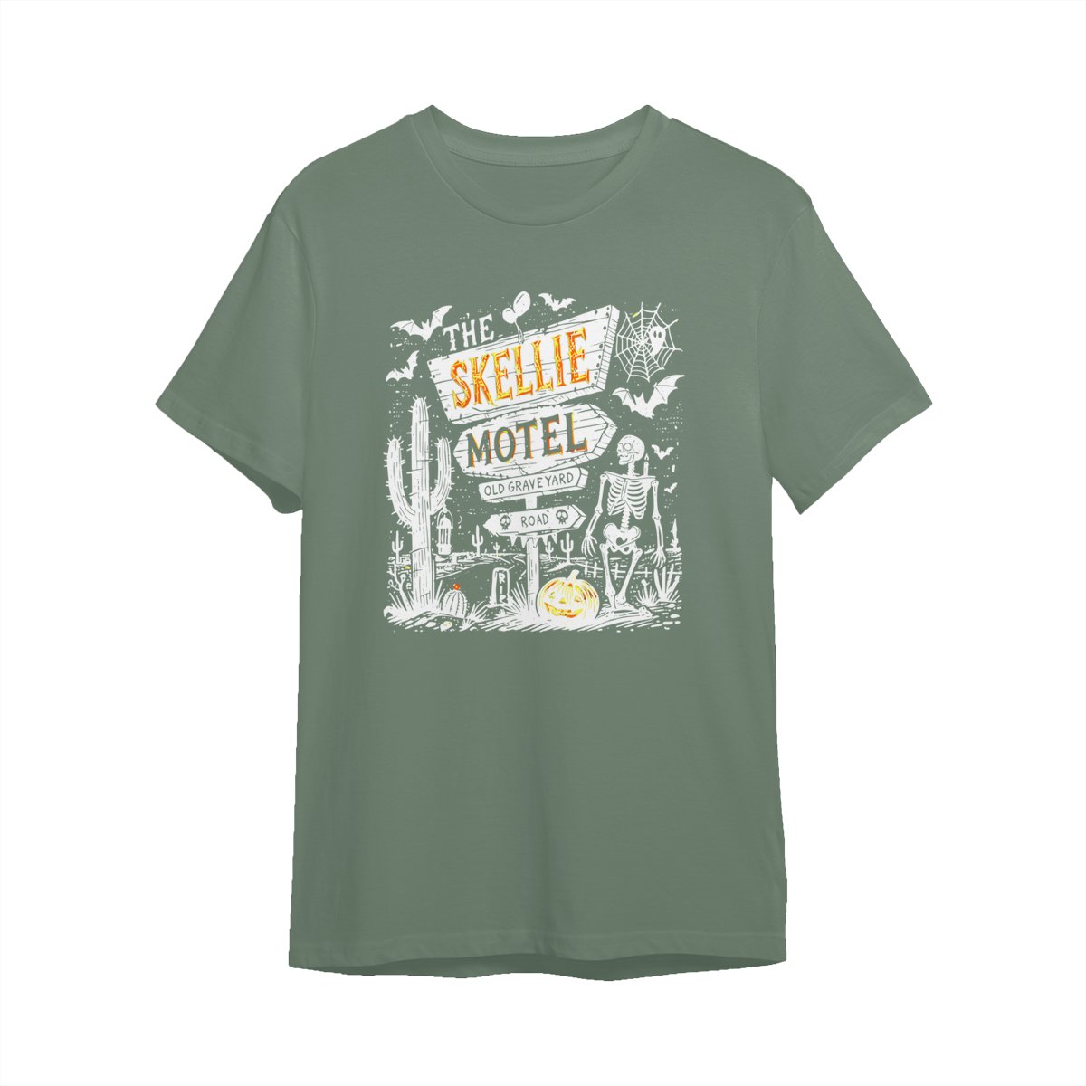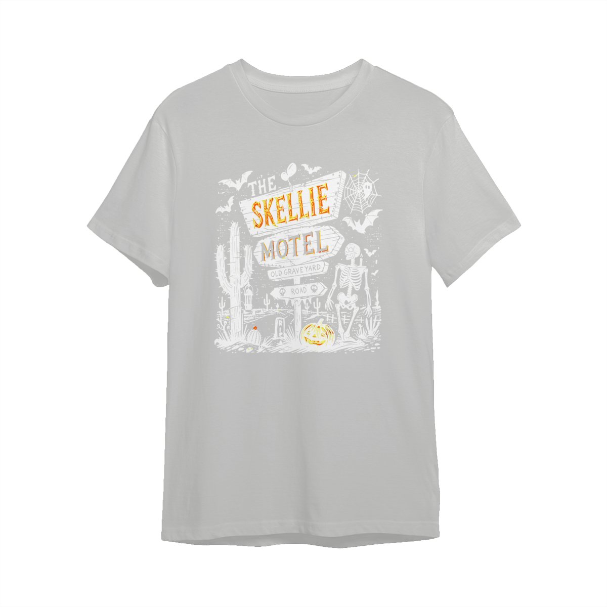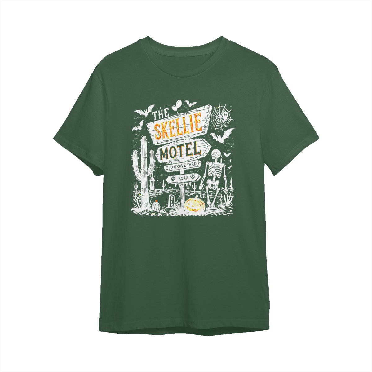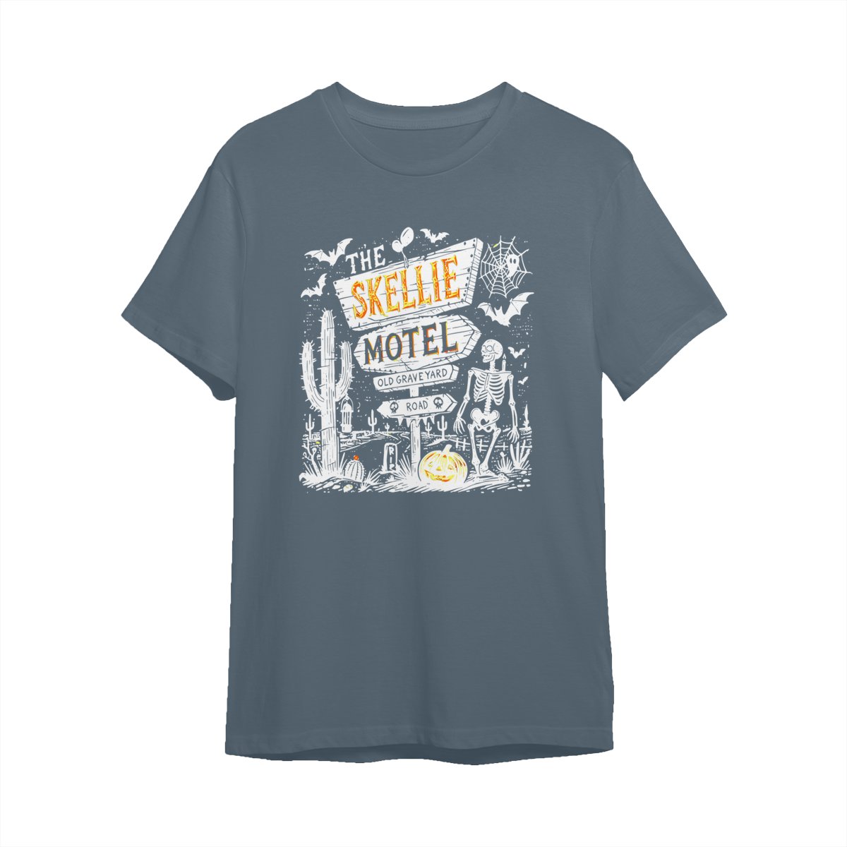 The Skellie Motel Shirt – Retro Spooky Skeleton Design – Unisex Crewneck Made in USA