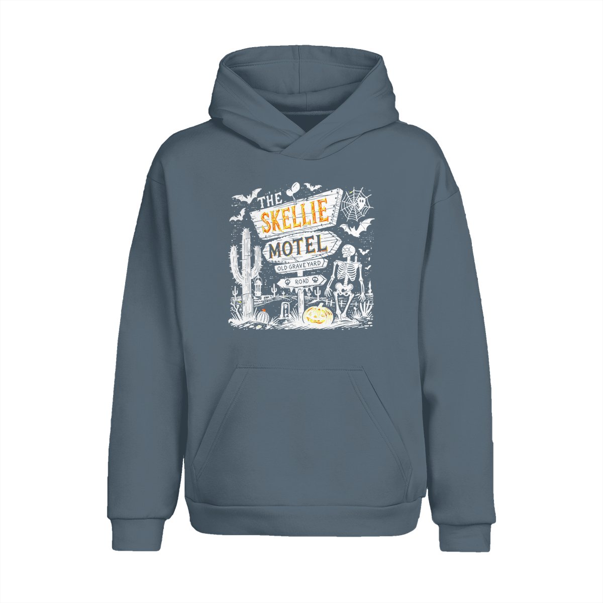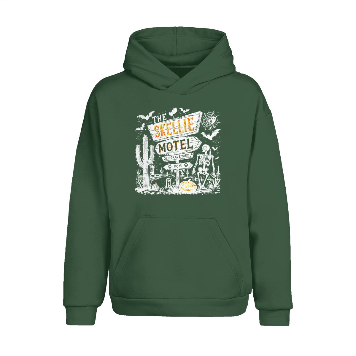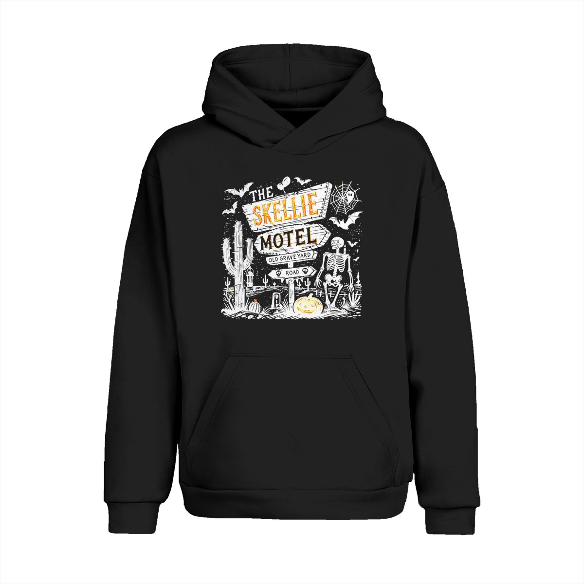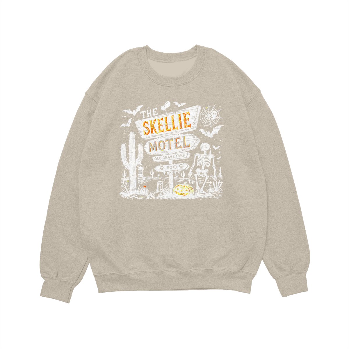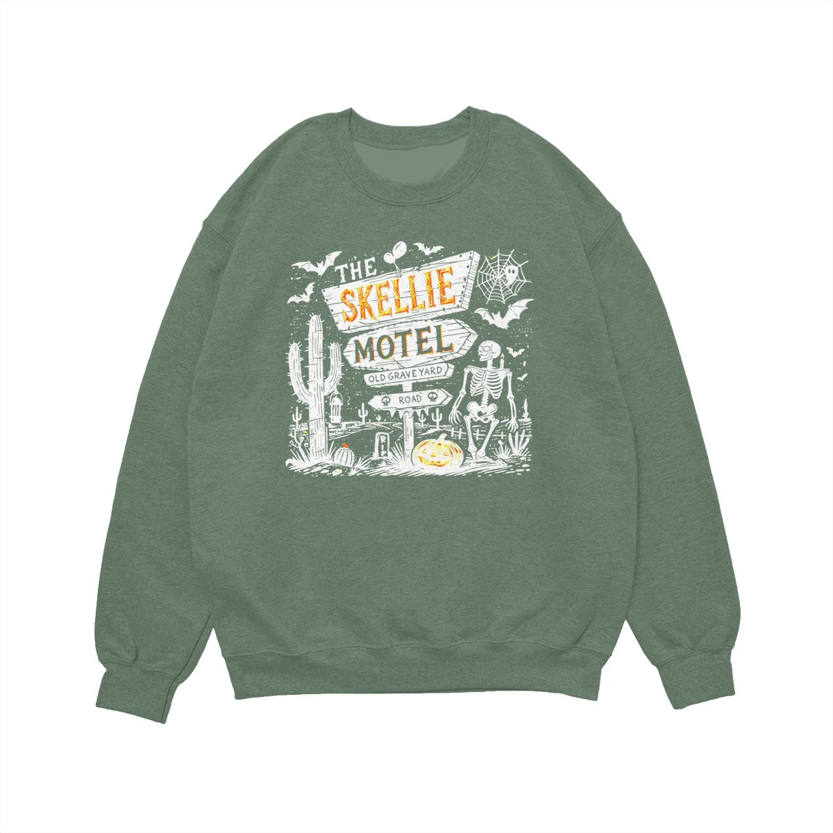 The Skellie Motel Shirt – Retro Spooky Skeleton Design – Unisex Crewneck Made in USA