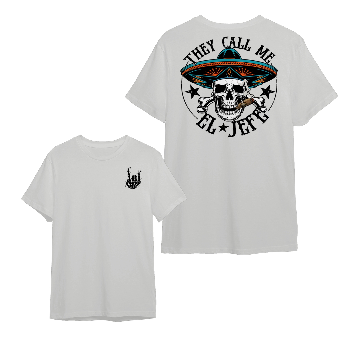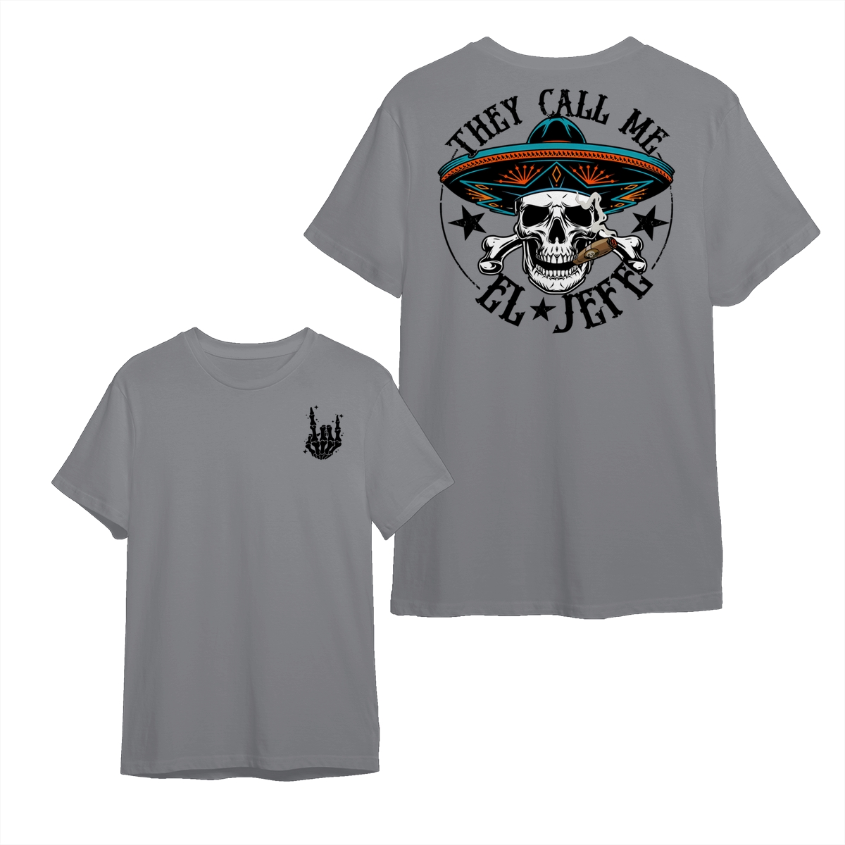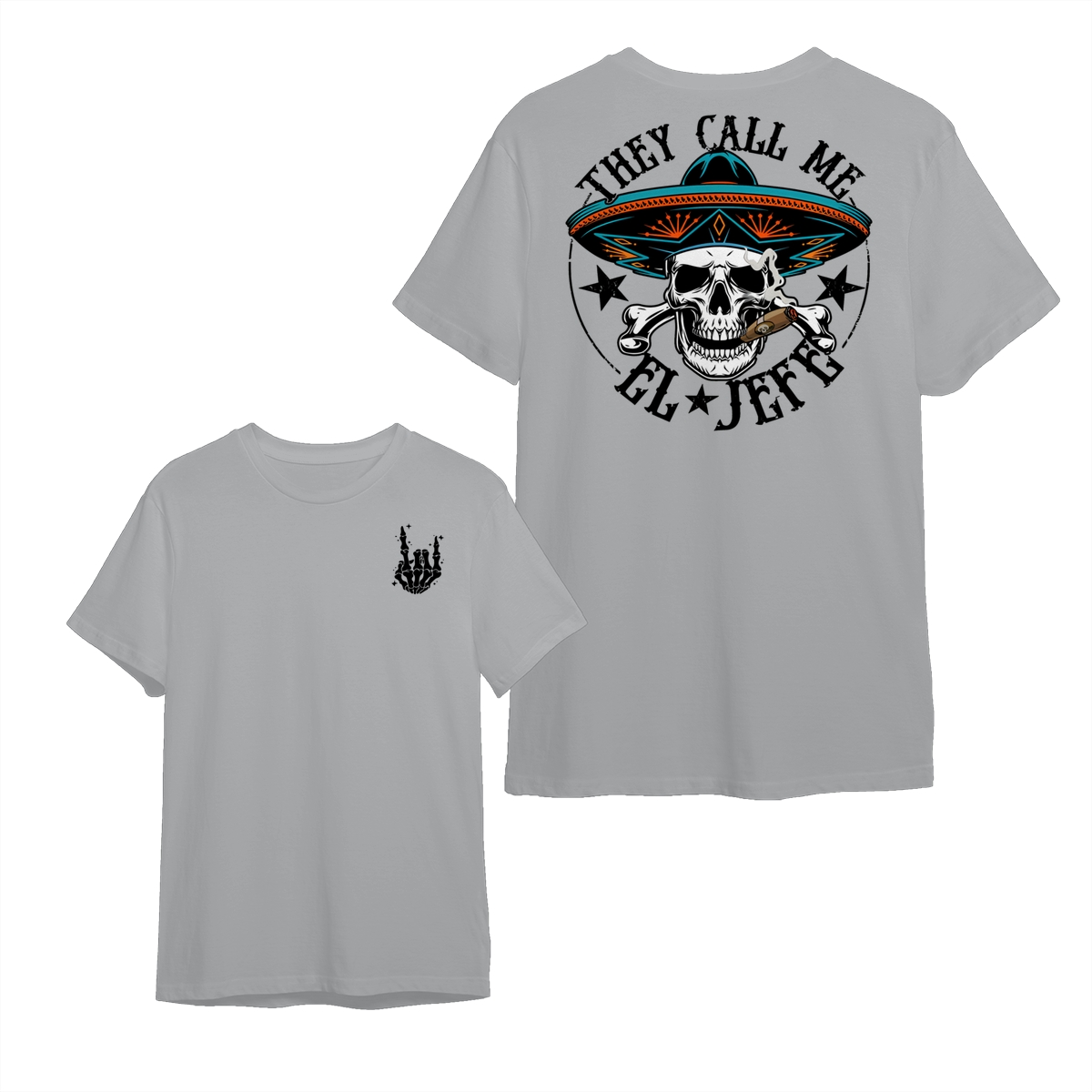 They Call Me El Jefe Graphic Tee, Bold Skull Design, Unisex Cotton T-Shirt for Men & Women, Streetwear Style, Latino Boss Vibes