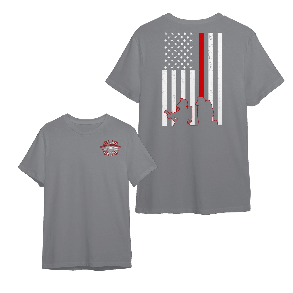 Thin Red Line Firefighter T-Shirt, American Flag & Fireman Silhouette Graphic Tees, 4th Of July, First Responder Apparel for Men, Patriotic Hero Gift