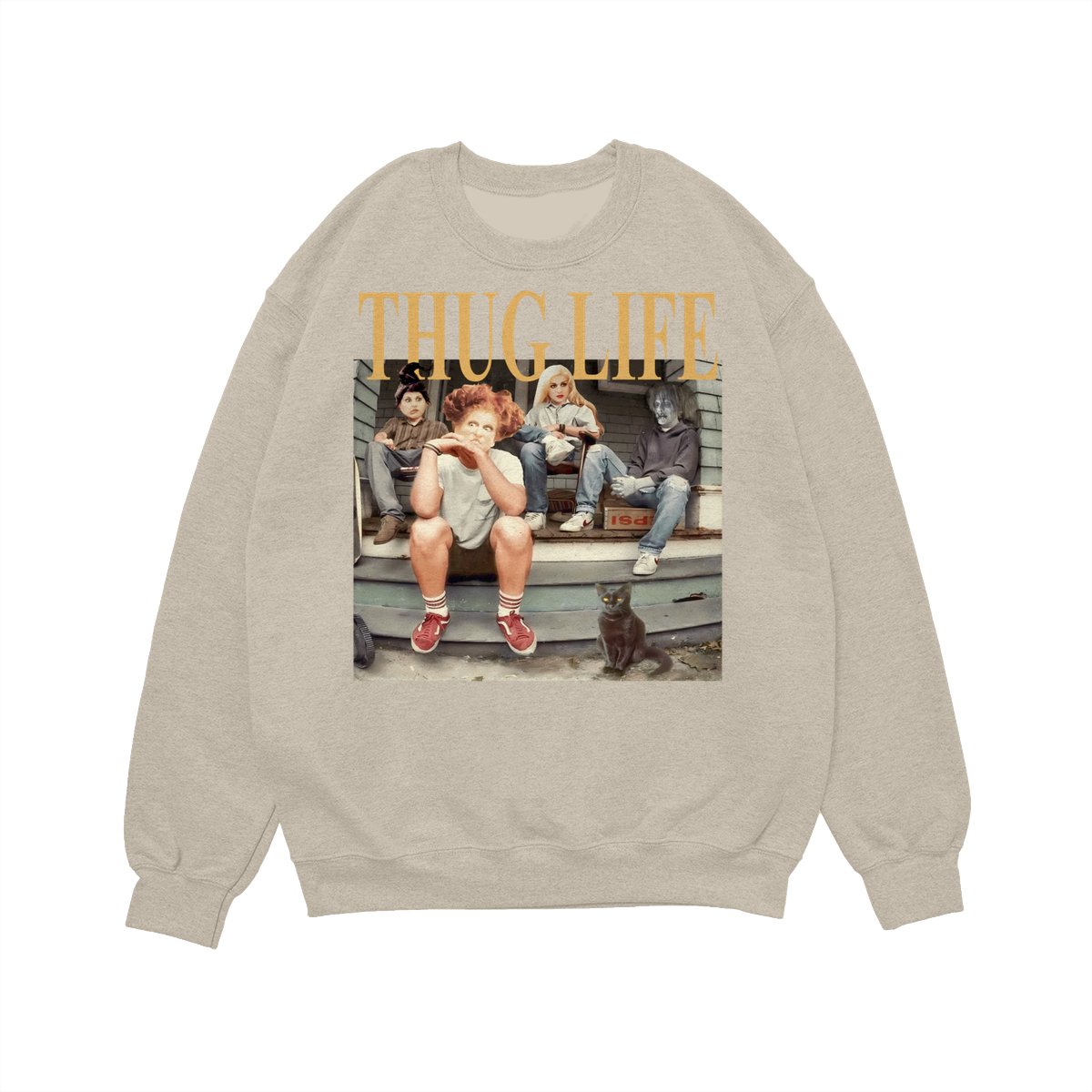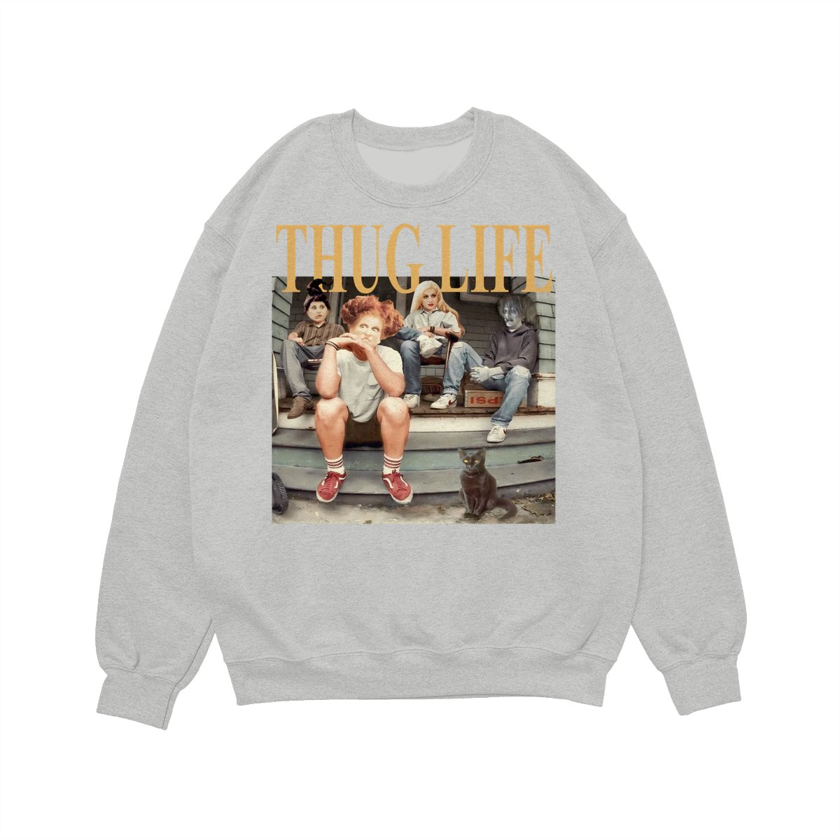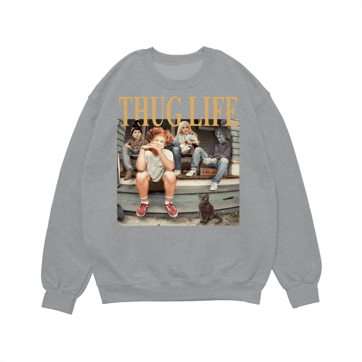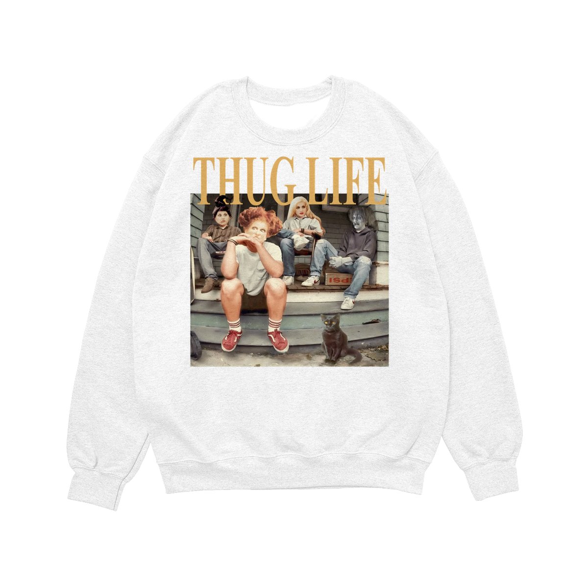 Thug Life Horror Shirt – Funny Halloween Crewneck with Classic Scary Characters, Retro Parody Pullover for Spooky Season Menswear Soft