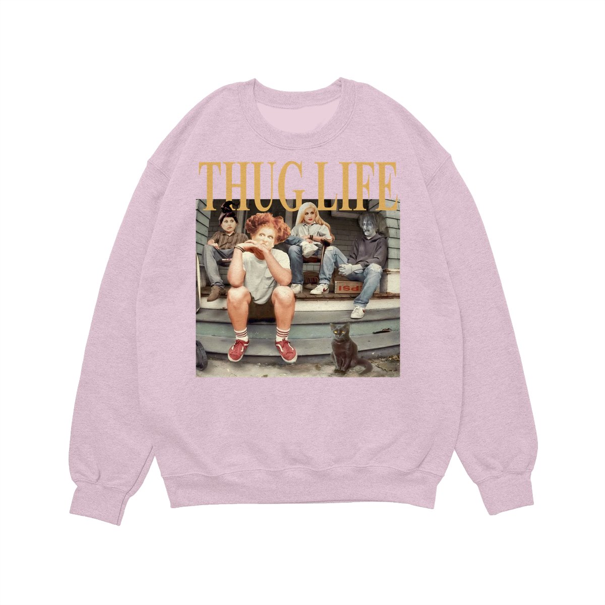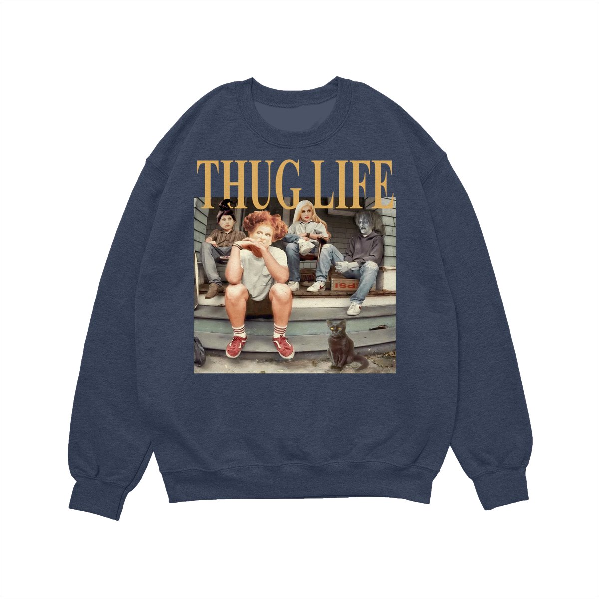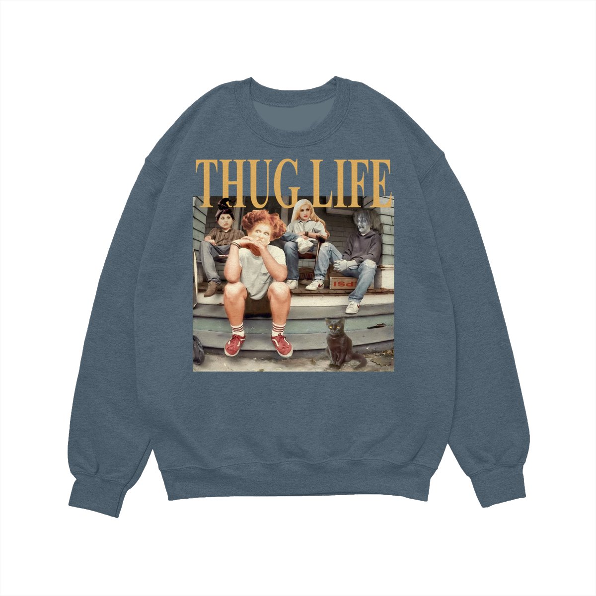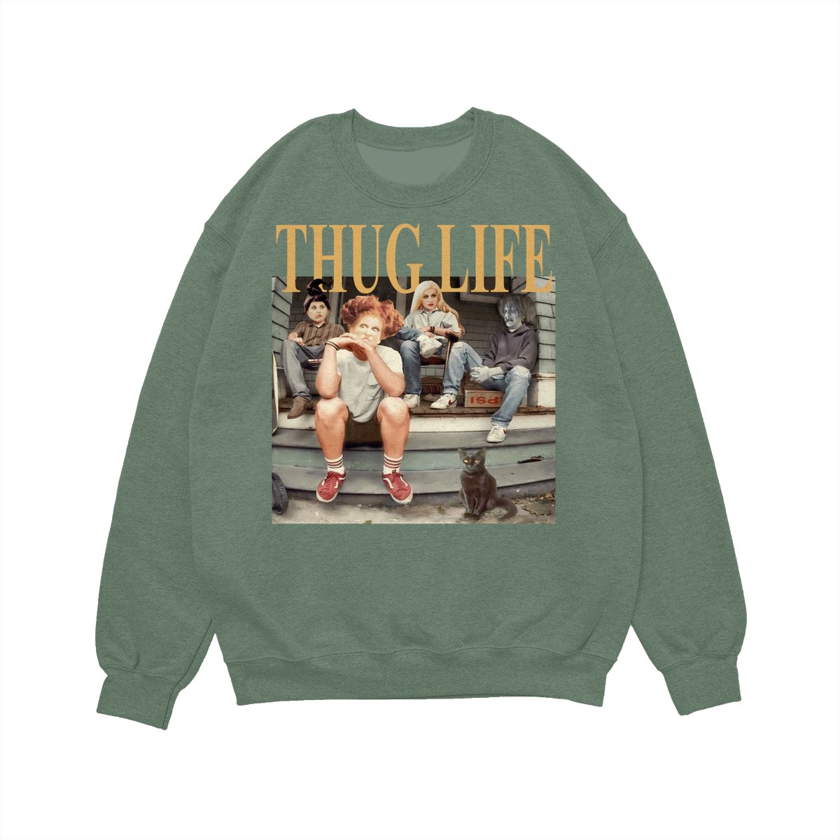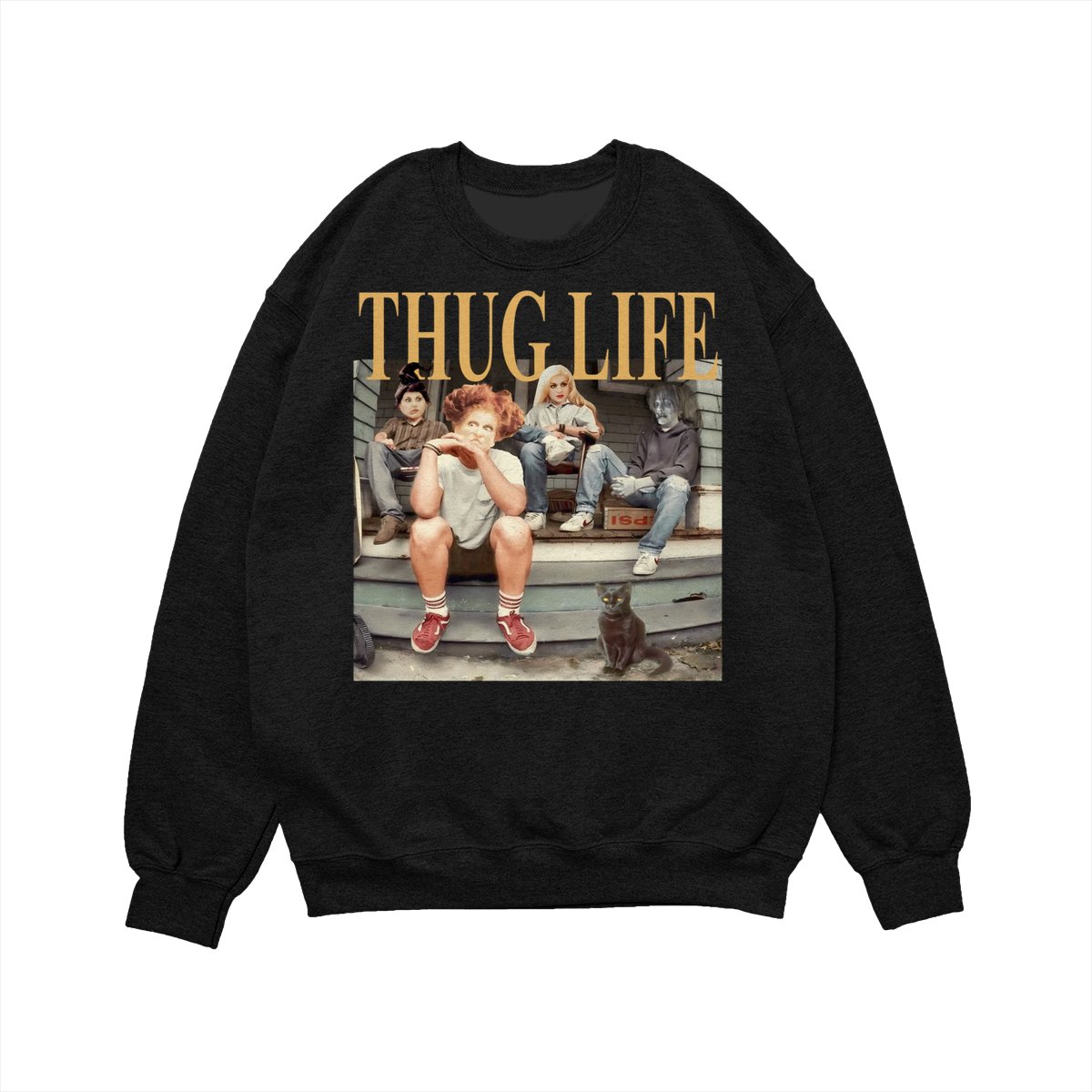 Thug Life Horror Shirt – Funny Halloween Crewneck with Classic Scary Characters, Retro Parody Pullover for Spooky Season Menswear Soft