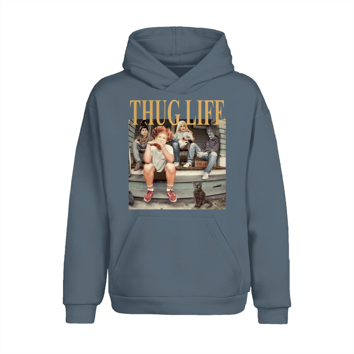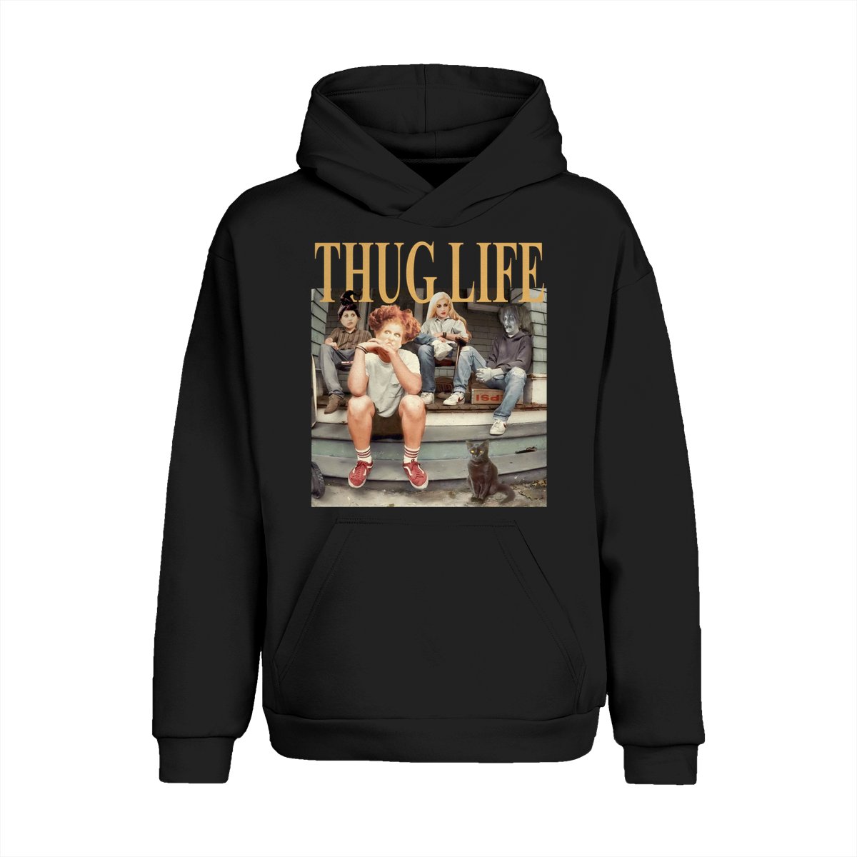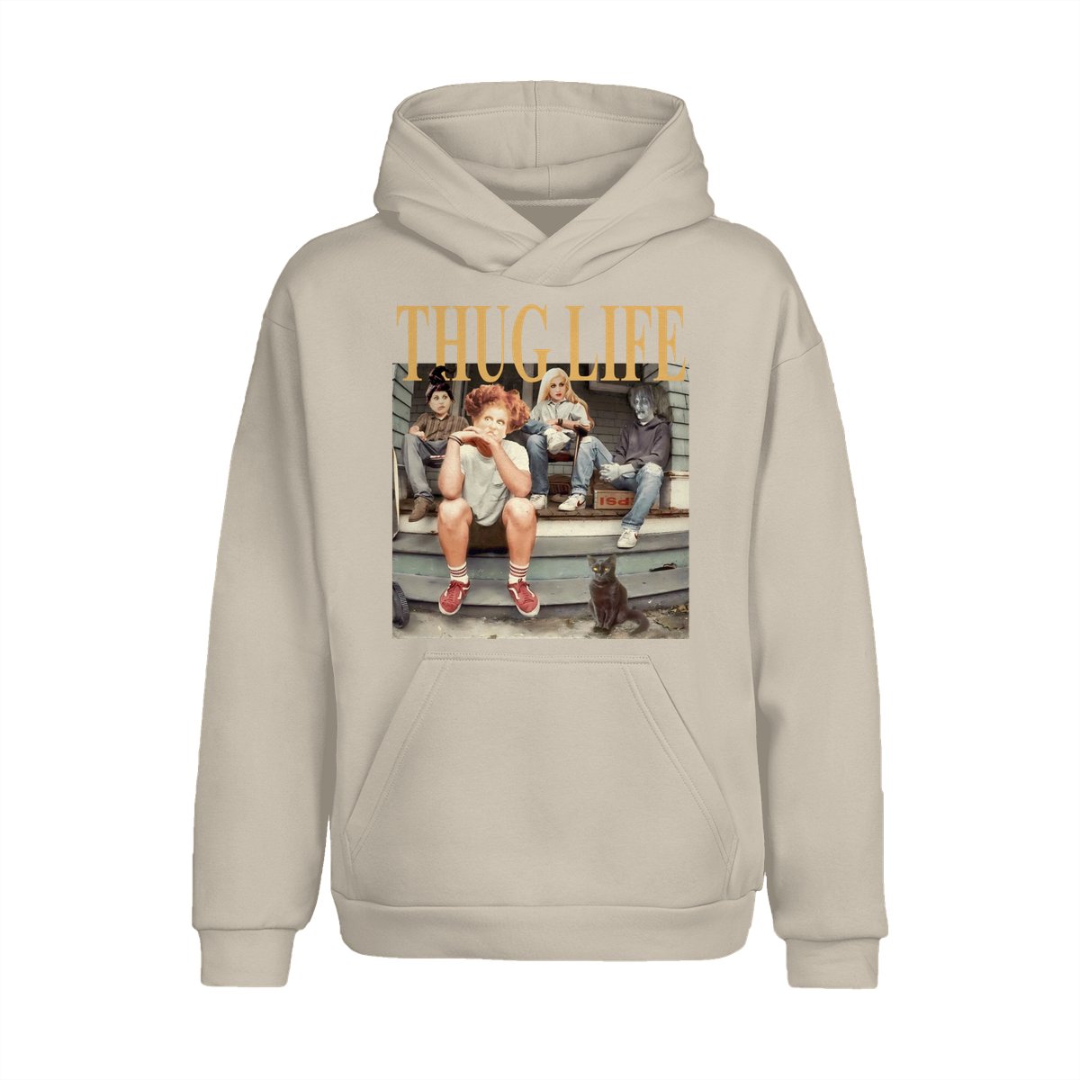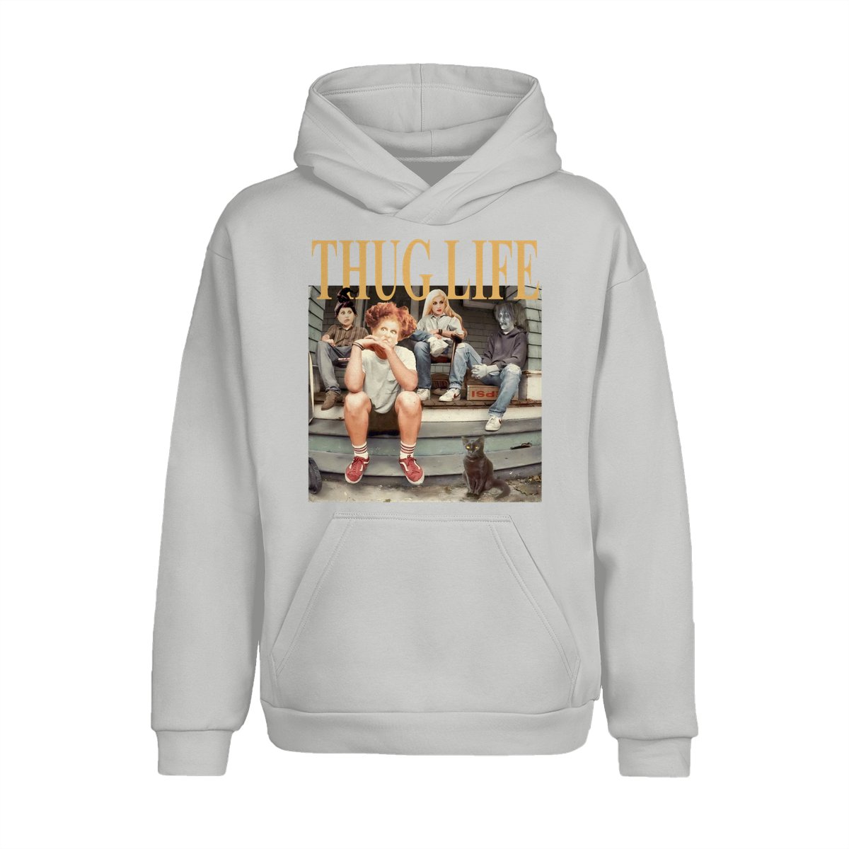 Thug Life Horror Shirt – Funny Halloween Crewneck with Classic Scary Characters, Retro Parody Pullover for Spooky Season Menswear Soft