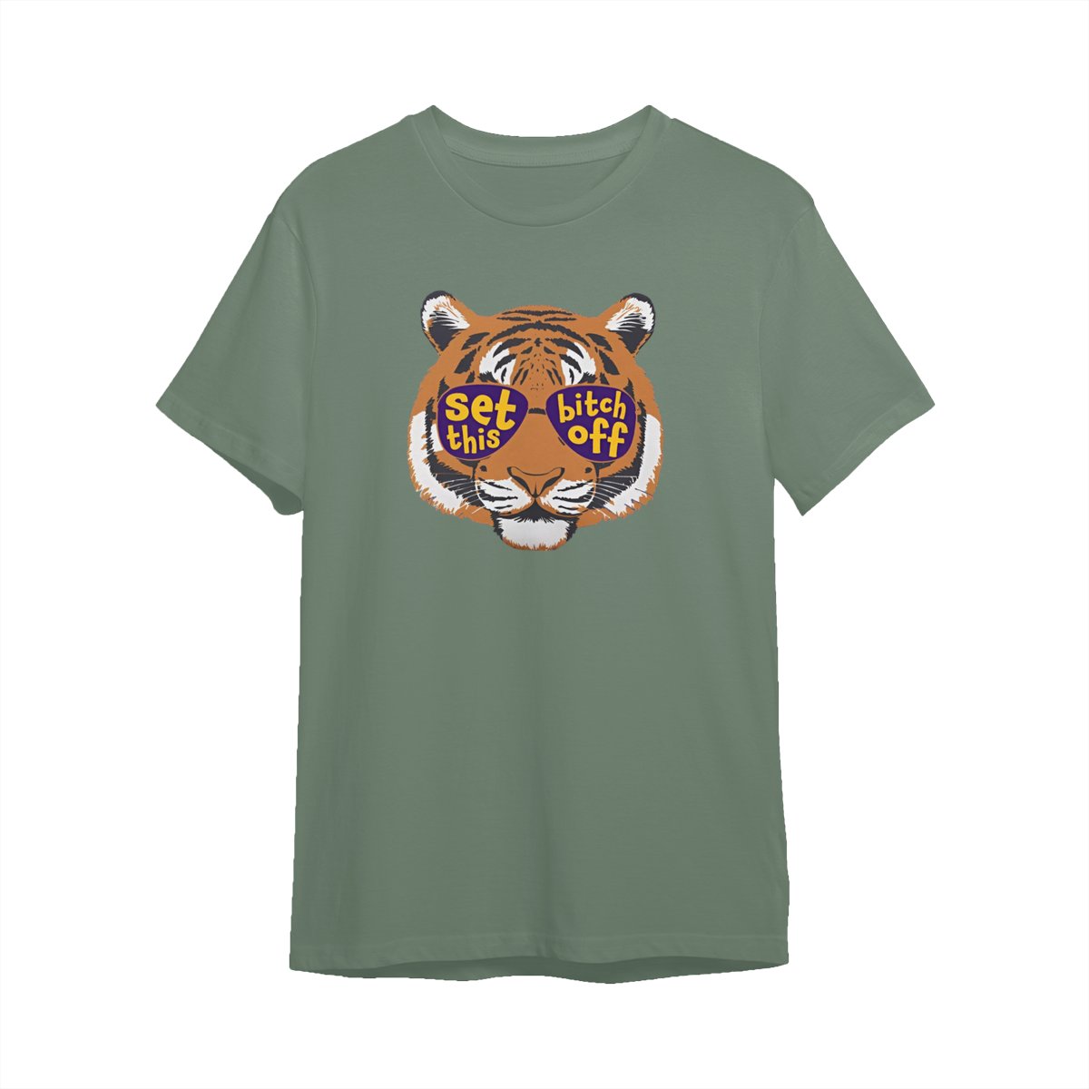 Tiger Game Day Sunglasses T-Shirt, Retro LSU Football Tailgate Tee, Unisex Casual Mascot Graphic Shirt, Vintage College Spirit Top