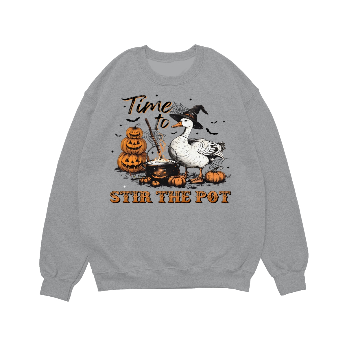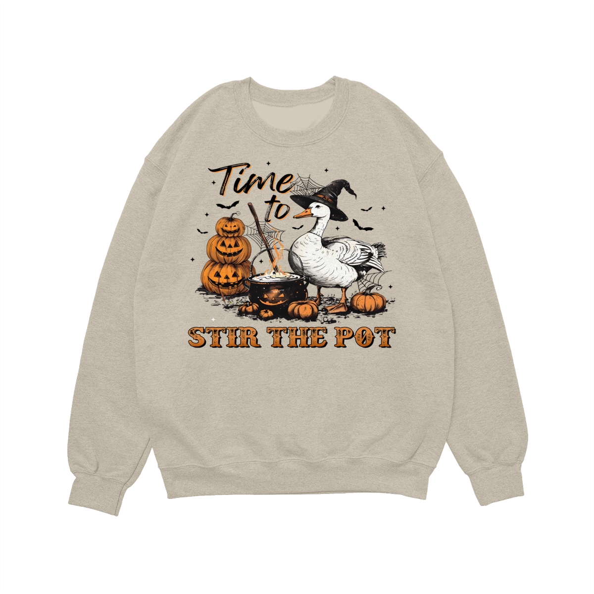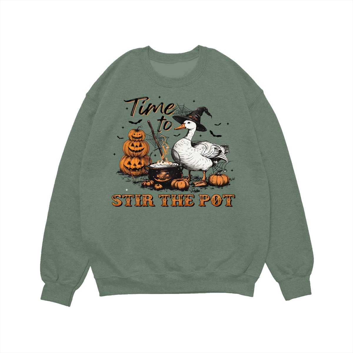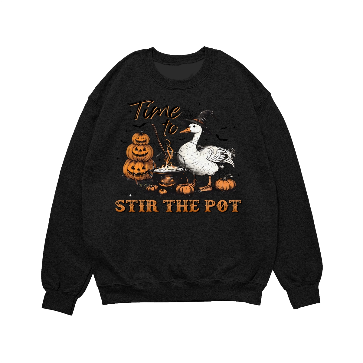 Time To Stir The Pot Funny Silly Goose Witch Sweater, Retro Halloween Spooky Season Shirt, Funny Witch Goose Tee, Halloween Gifts