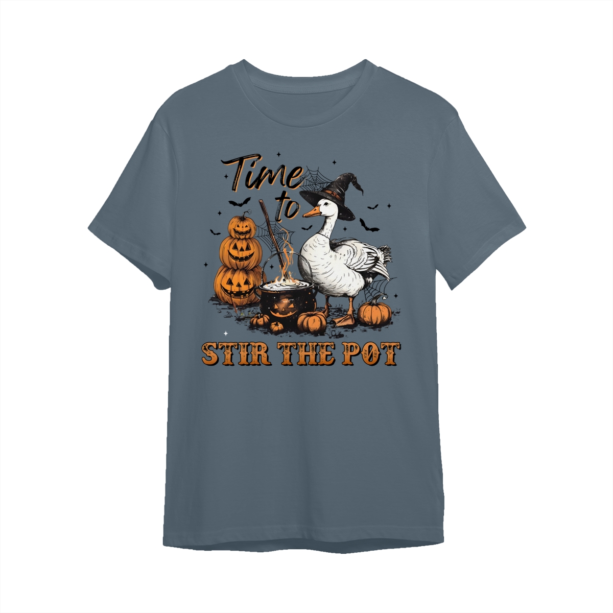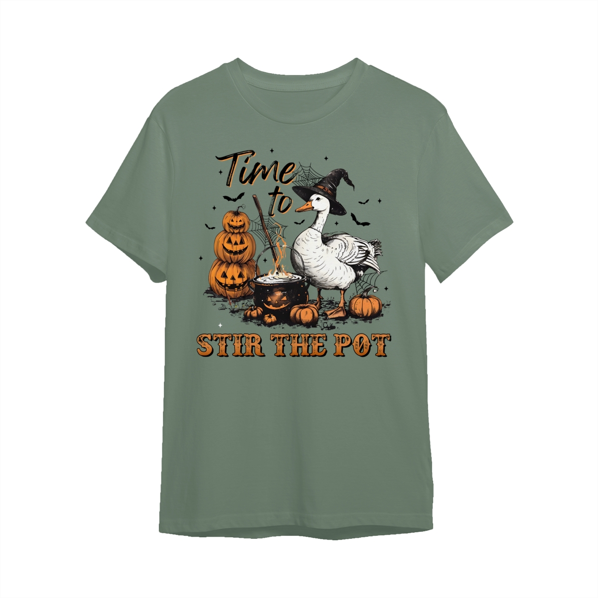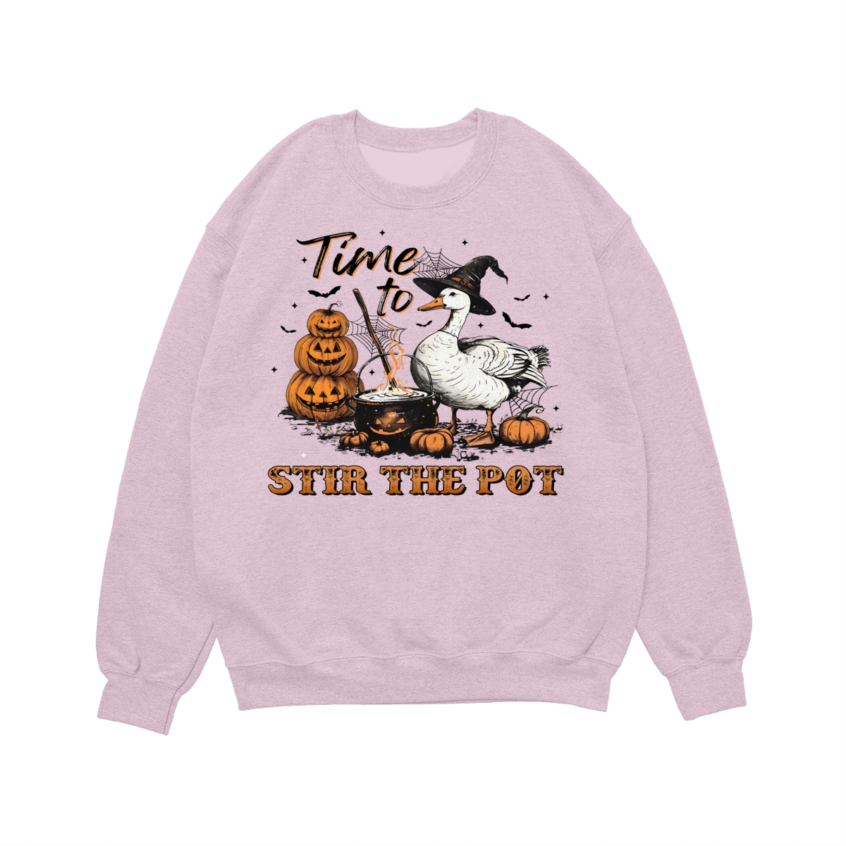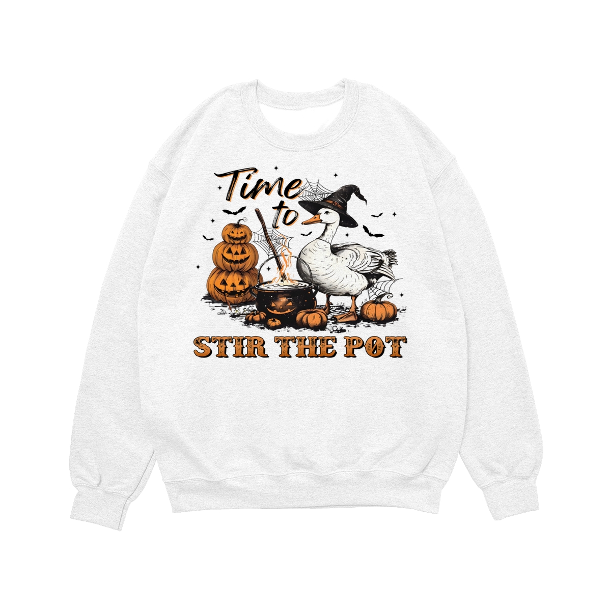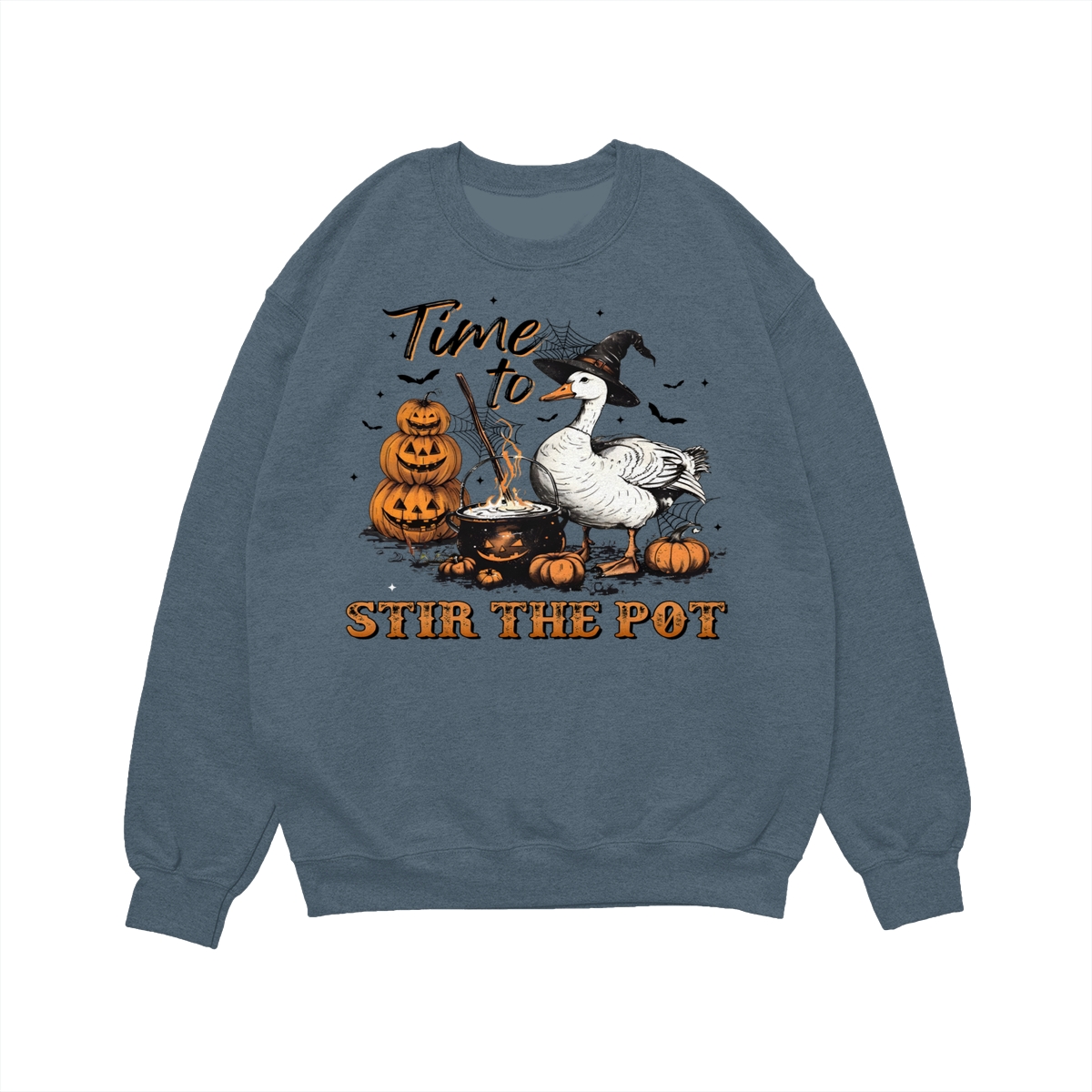 Time To Stir The Pot Funny Silly Goose Witch Sweater, Retro Halloween Spooky Season Shirt, Funny Witch Goose Tee, Halloween Gifts