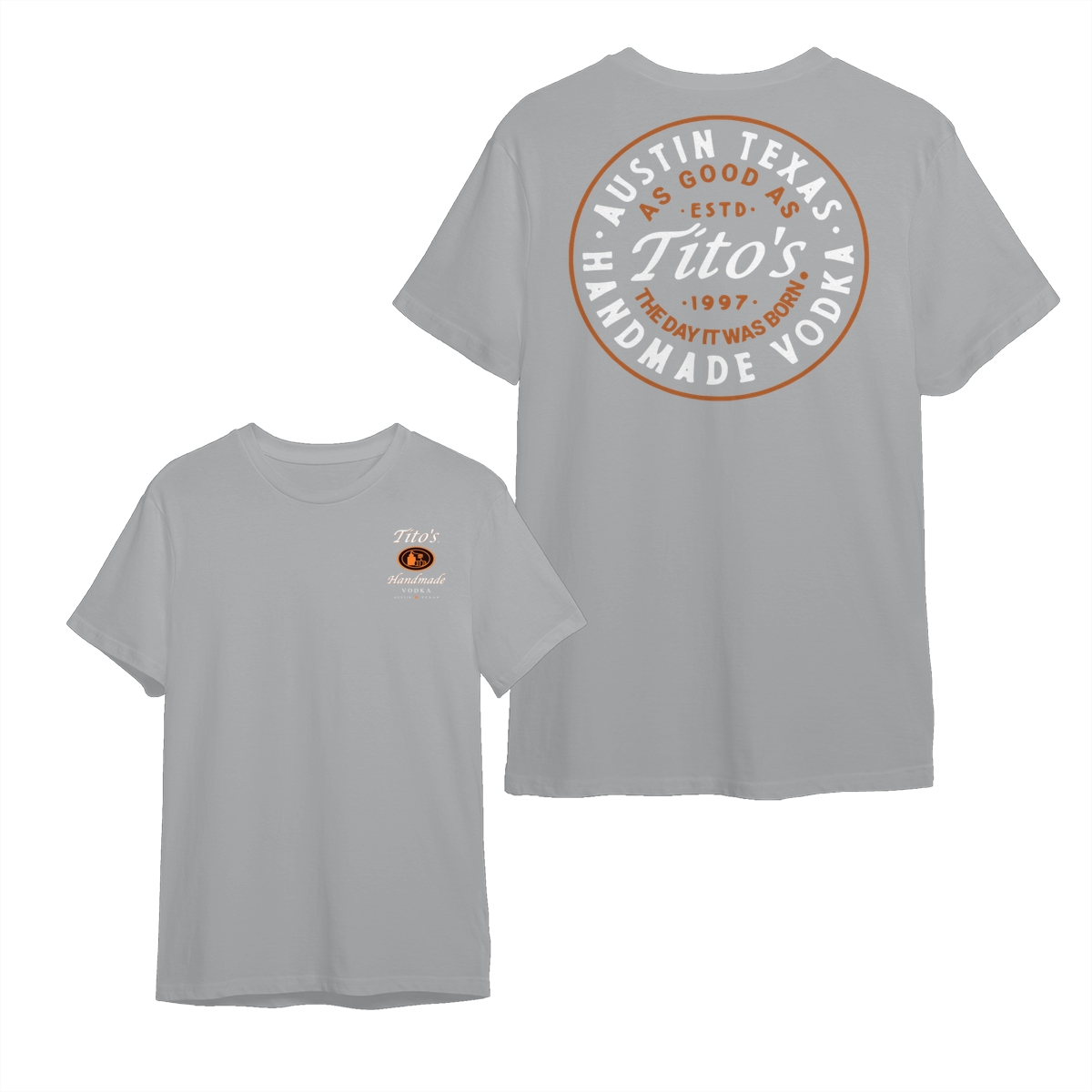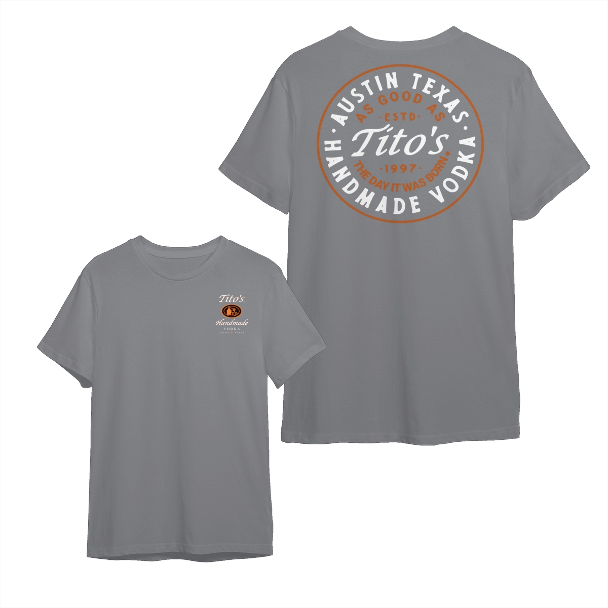 Tito’s Handmade Vodka 2sides T Shirt, Austin Texas Vodka Circle Logo Tee, Soft Cotton Blend T Shirt, Bar Nightlife Apparel for Men, Gift for Vodka Lovers