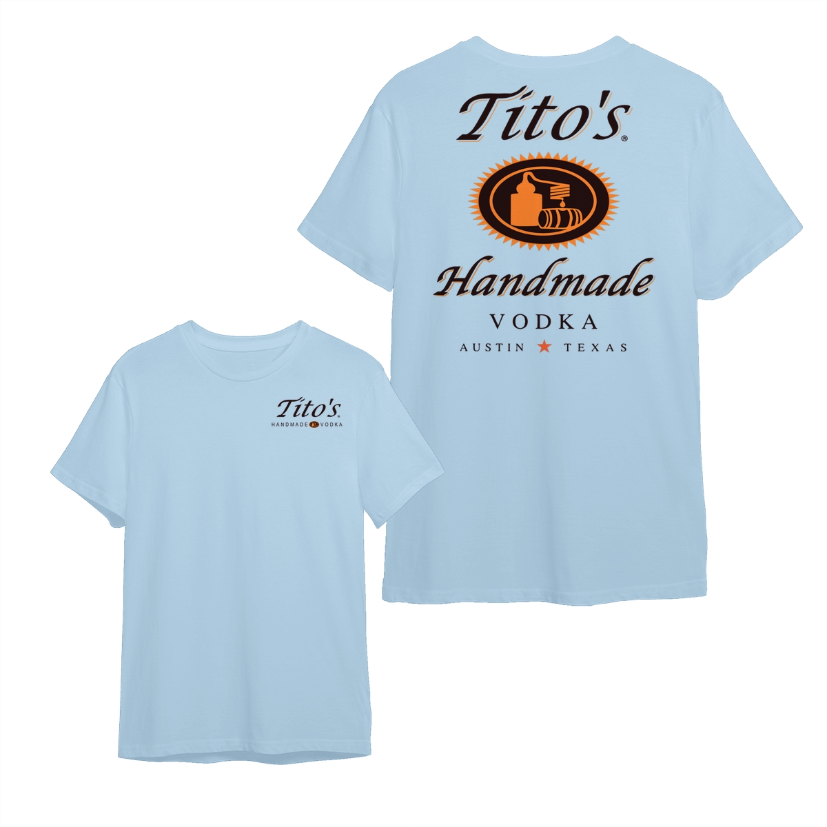 Tito’s Handmade Vodka T-Shirt – Printed with Famous Handmade Vodka Brand from Austin, Texas, Bold American Bar Design, Suitable for Unisex – Gift for Drink & Chill Lovers Tops Menswear Casual