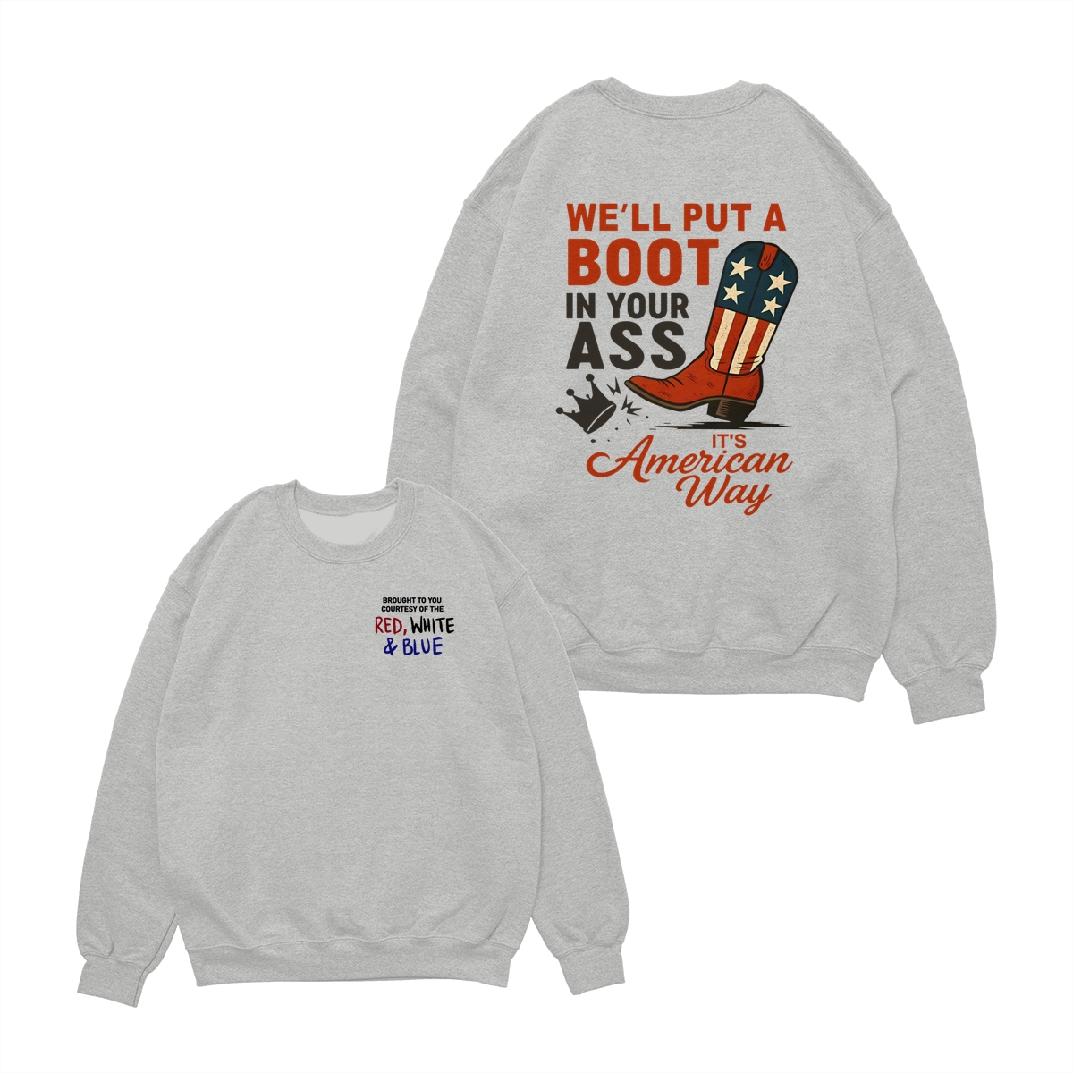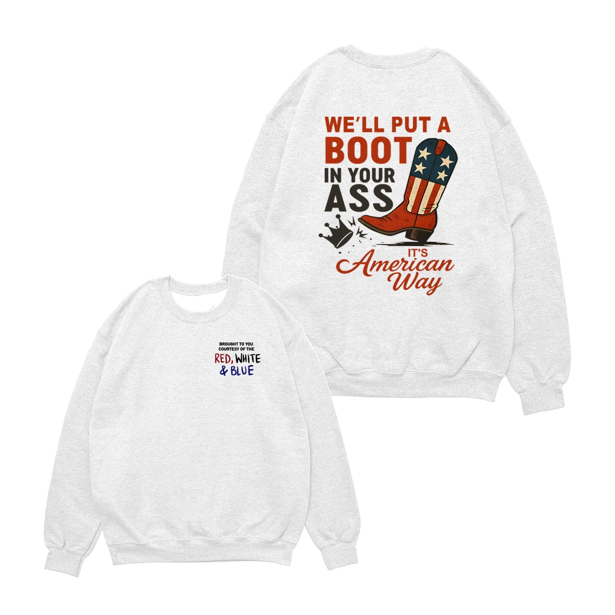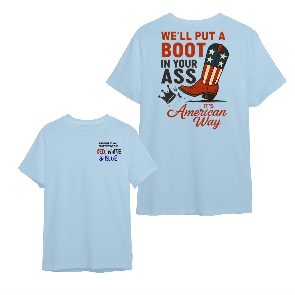 Toby Courtesy of the Red Shirt, White and Blue Shirt, We’ll Put A Boot In Your Ass Country Music Shirt, In memory of Toby Tee