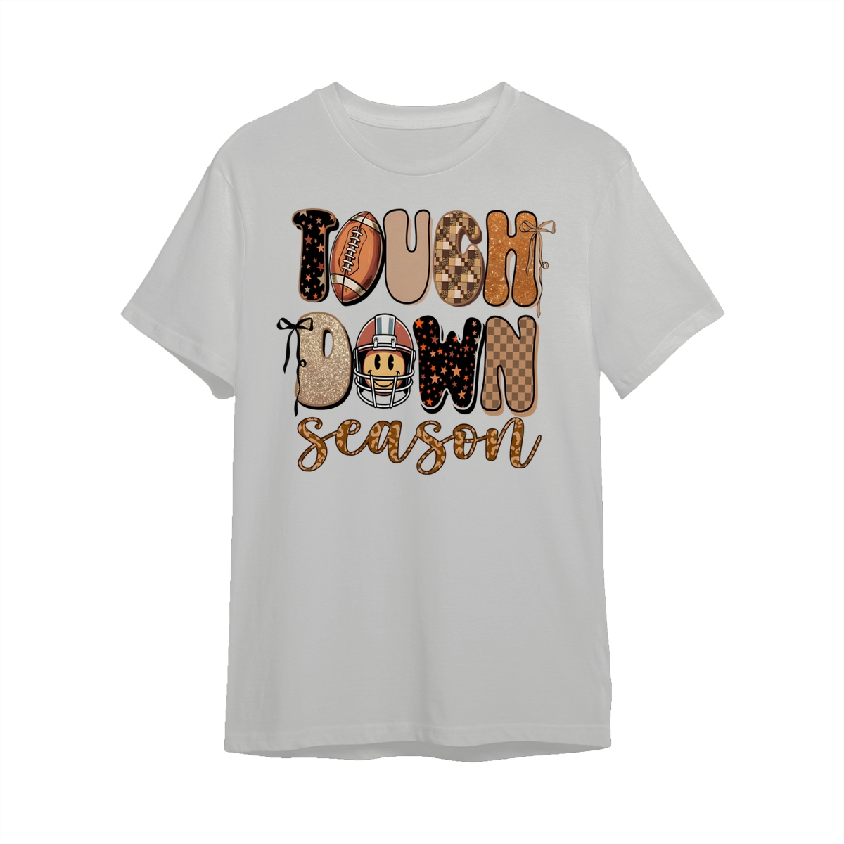 Touch Down Season tshirt, Football tee, Football Bow tee, Game Day gift, Checkered Football, Raising Ballers, Coquette Game Day tee, Football Mom, gift for him, gift for her, Menswear Top, women top, tshirt hot trend 2025, Comfort tshirt