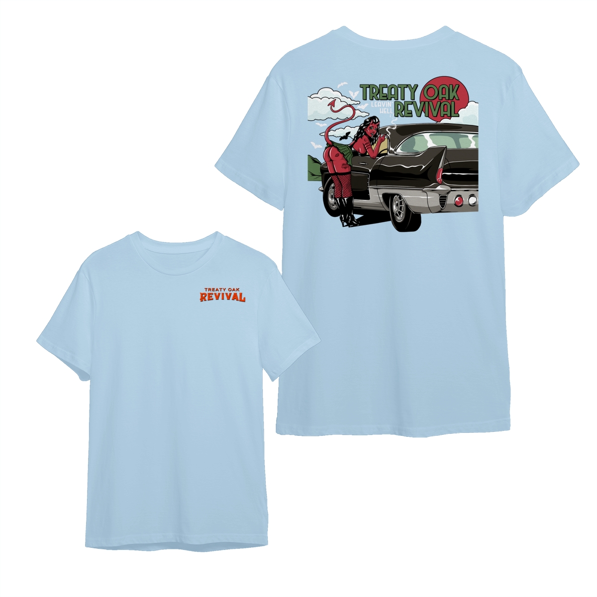 Treaty Oak Revival Graphic TShirt/Sweatshirt/Hoodie, Devil Girl with Classic Car Concert Unisex Hoodies, Country Music Men’s Tops, Southern Rock Concert 2024 Shirt, Gift for Fan