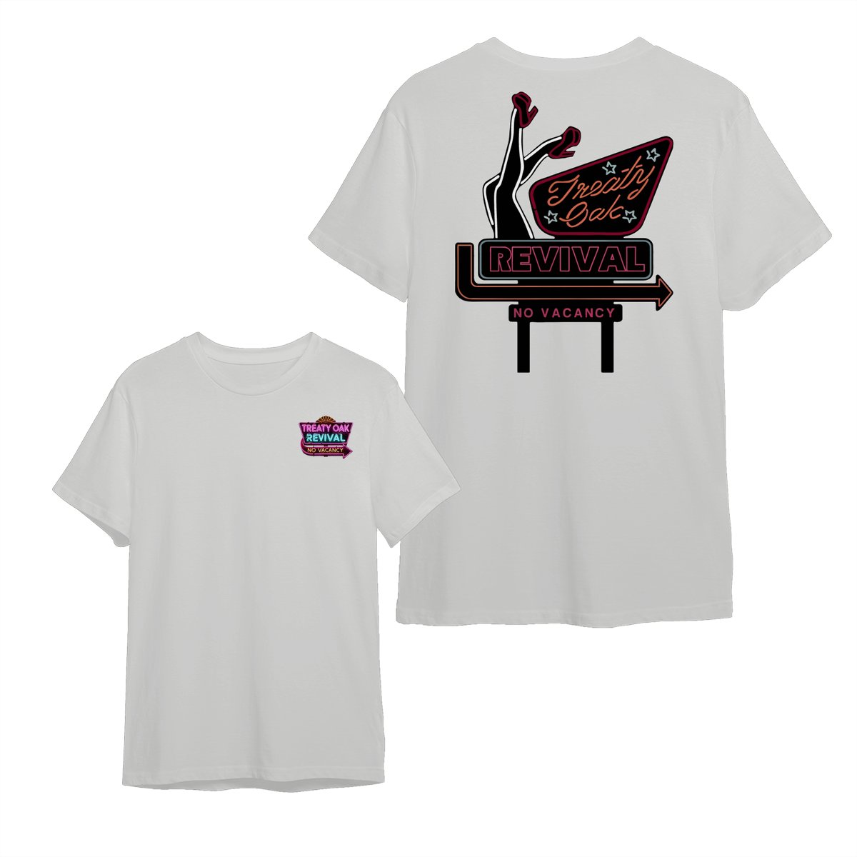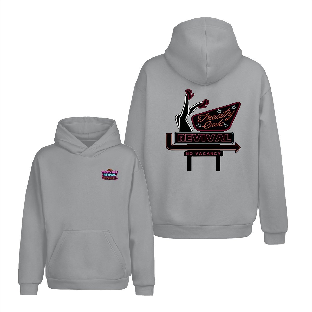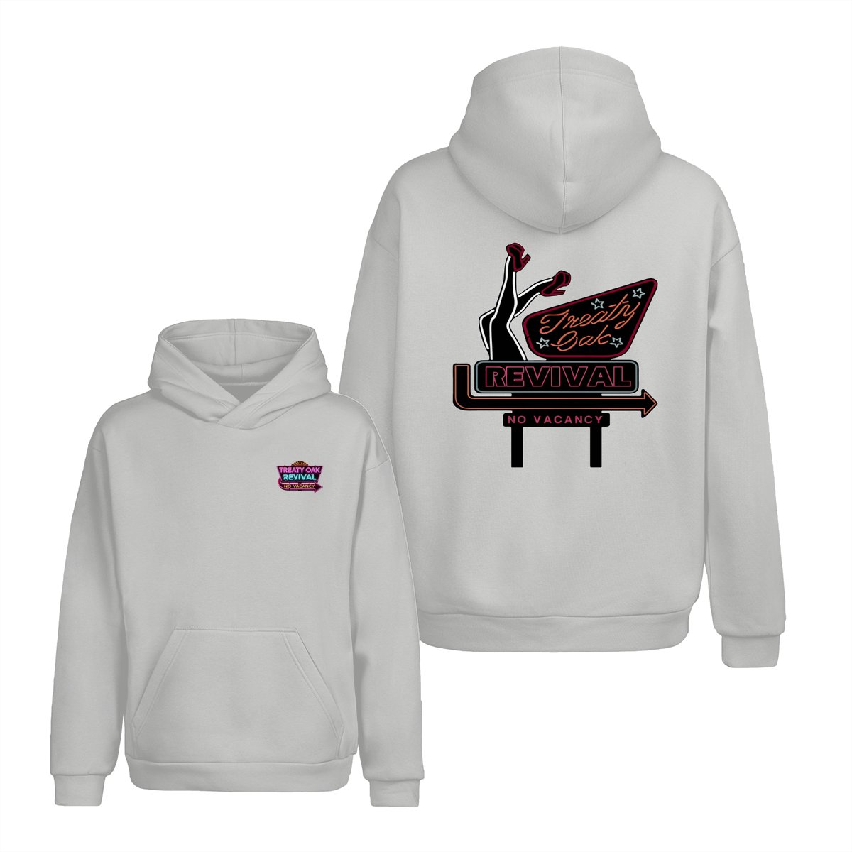 Treaty Oak Revival No Vacancy 2 Side Printed Shirt, Bold Neon Sign Design Featuring Retro-Inspired Graphic, Perfect for Fans of Vintage Aesthetics and Music Culture, Unisex Hoodie