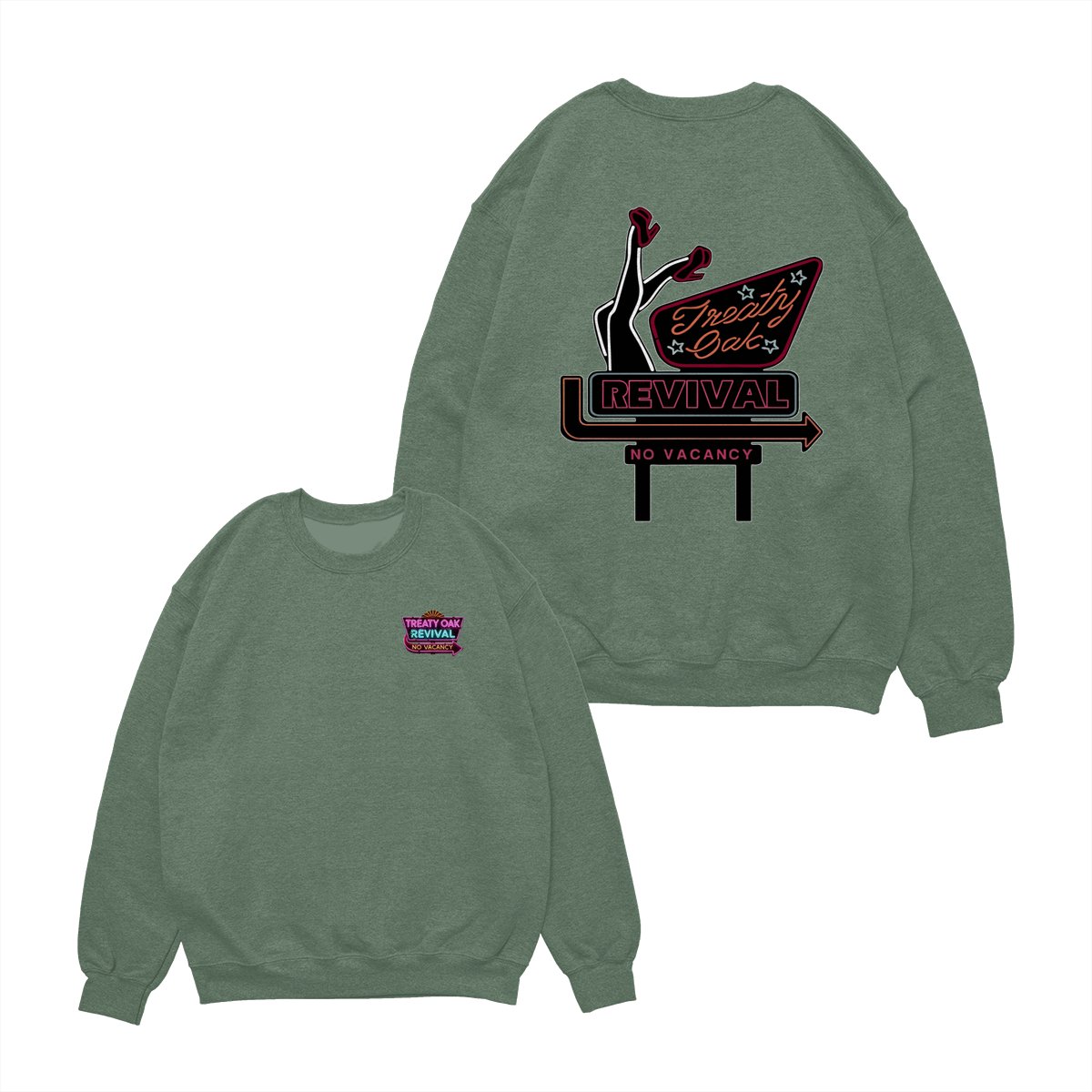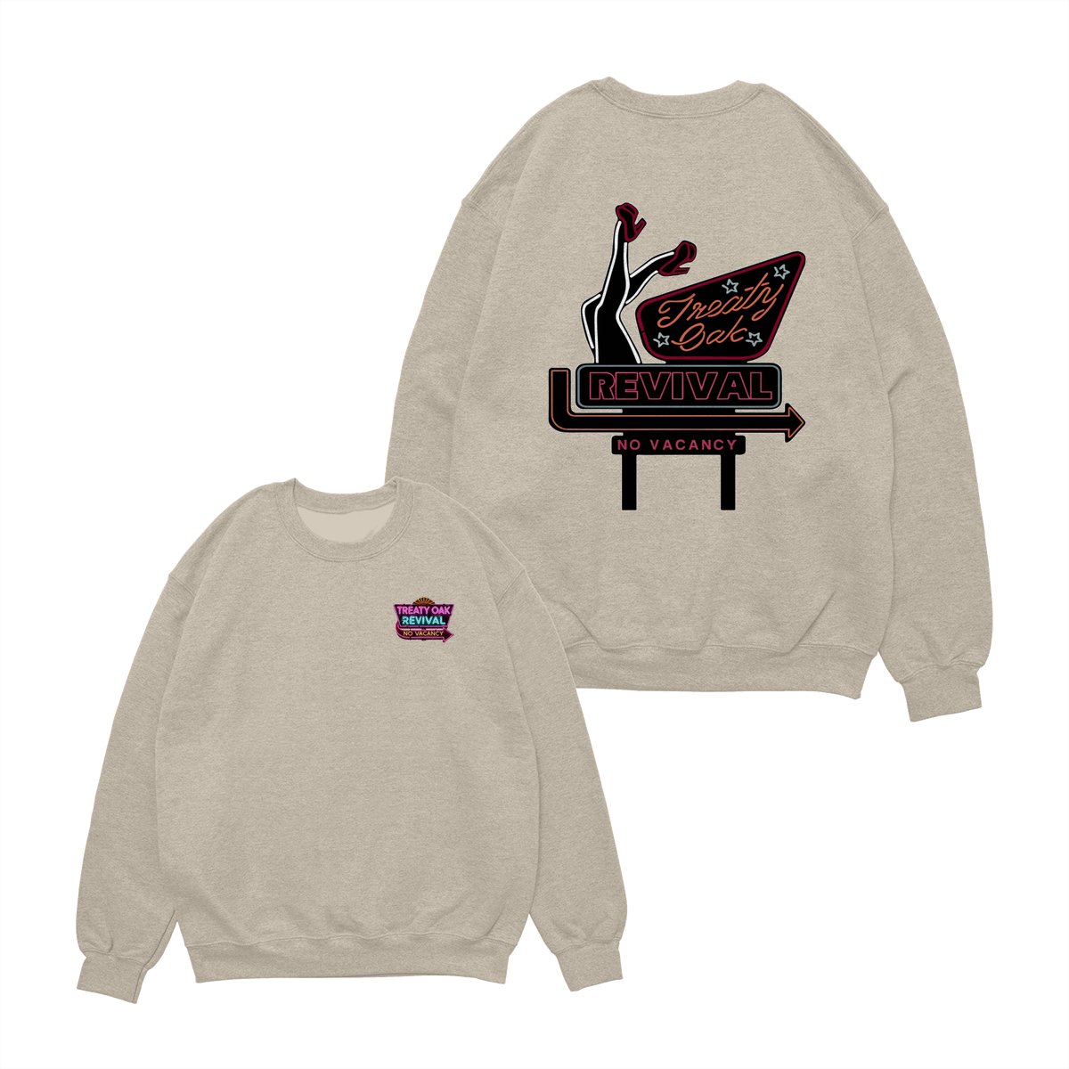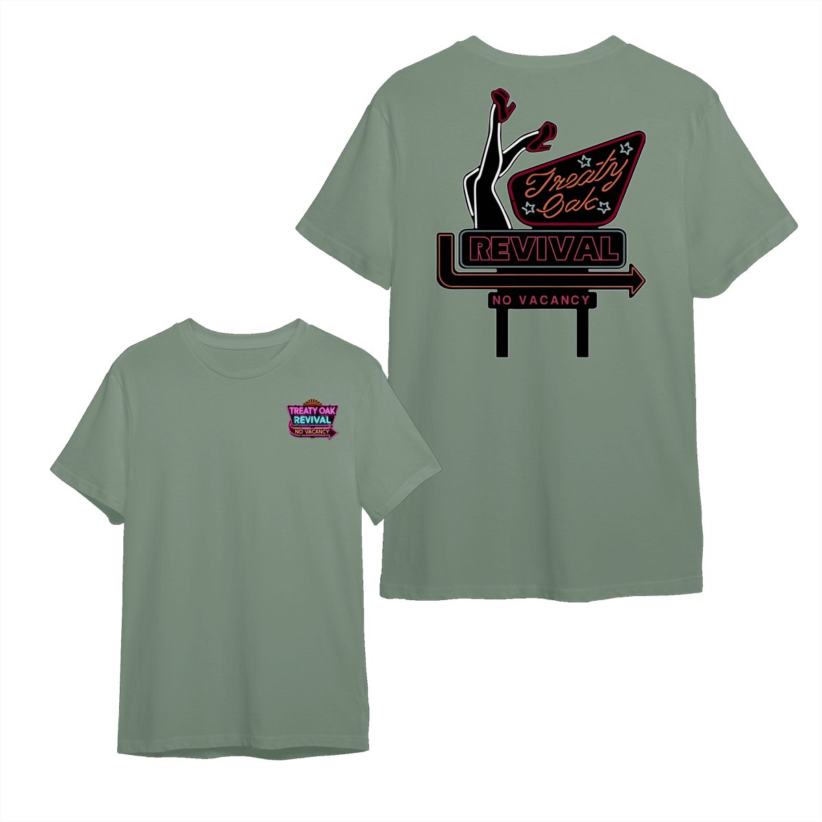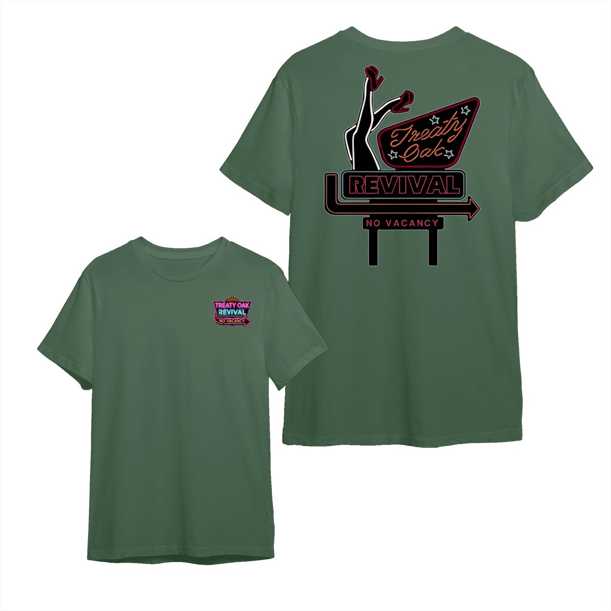 Treaty Oak Revival No Vacancy 2 Side Printed Shirt, Bold Neon Sign Design Featuring Retro-Inspired Graphic, Perfect for Fans of Vintage Aesthetics and Music Culture, Unisex Hoodie
