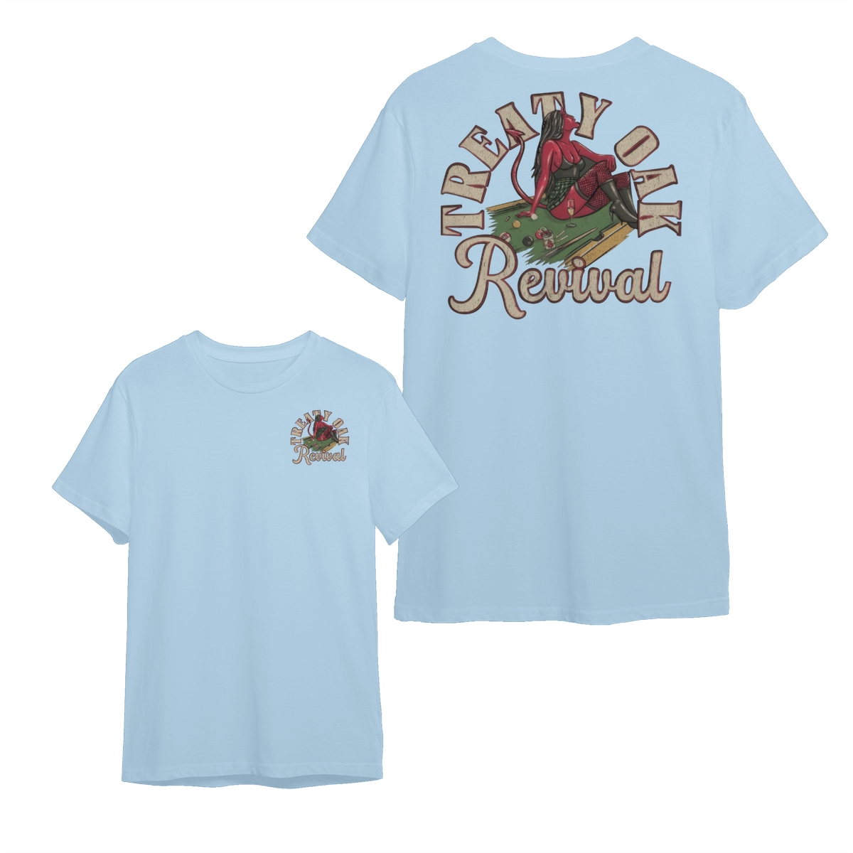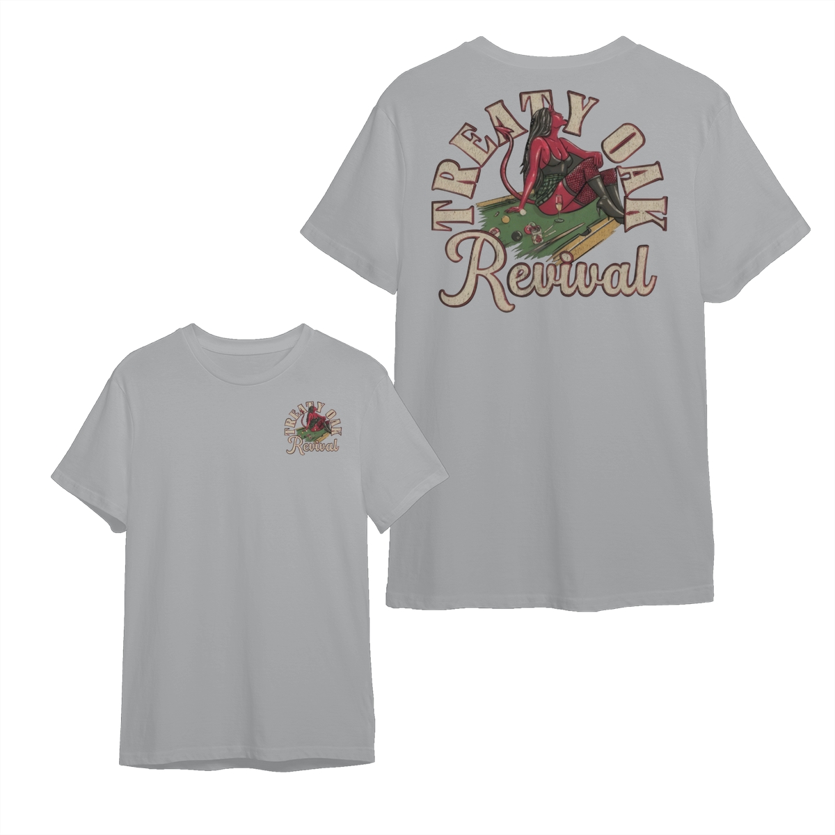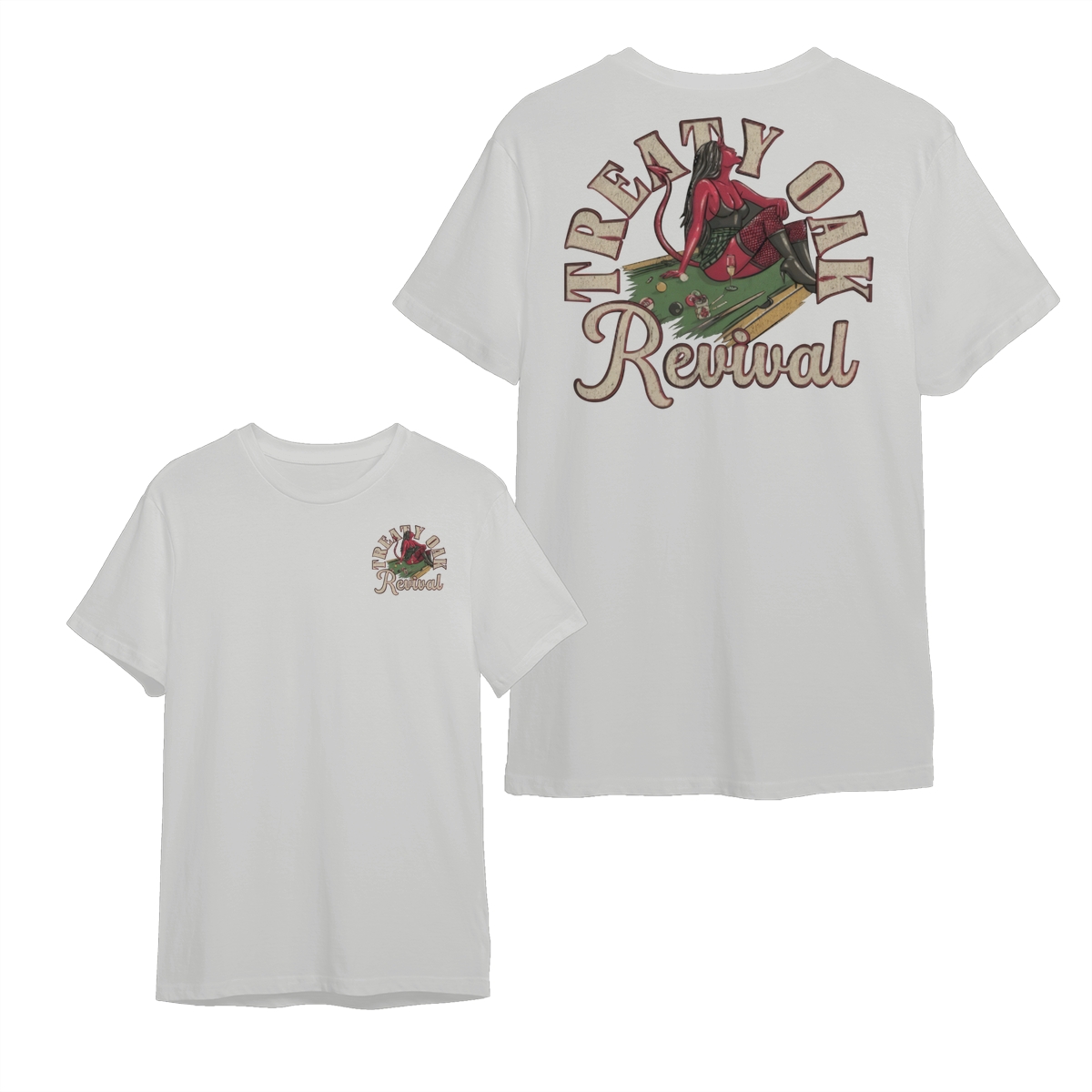 Treaty Oak Revival T-Shirt, Vintage Pin-Up Graphic Tee, Billiards Theme Band Shirt, Retro Country Music Merch, Bold Artistic Design Apparel, Gift for Fans, Men Round Neck, Unisex – Menswear, Top, Streetwear