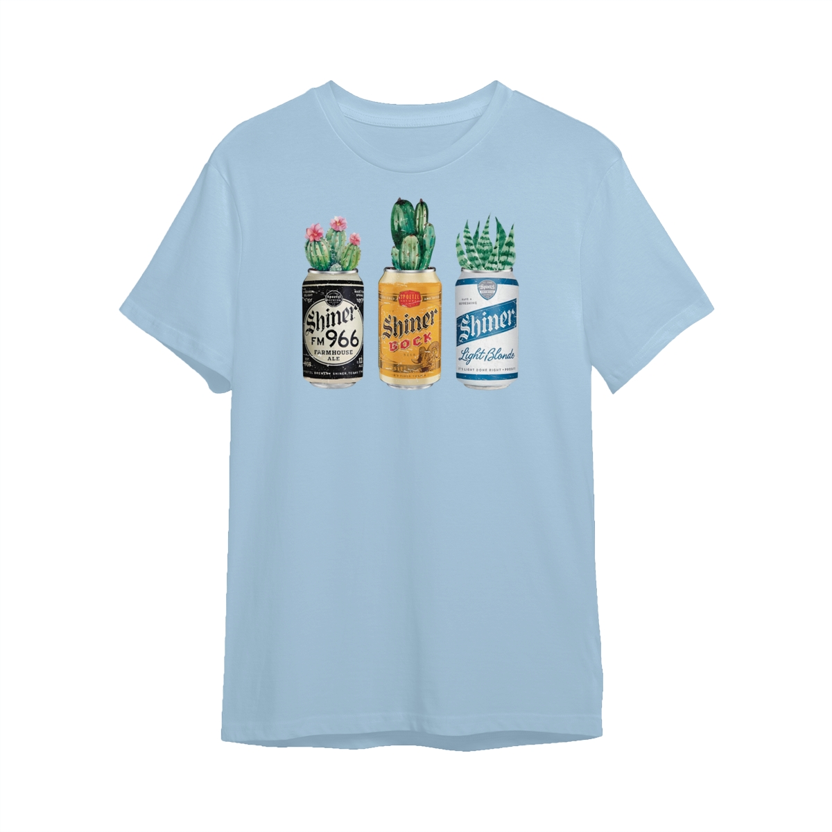 Trendy Shiner Beer Can with Cactus Graphic Tee, Western Aesthetic T-Shirt for Summer, Country Girl Style Retro Texas Vibes Shirt, Fun Casual Unisex Tee