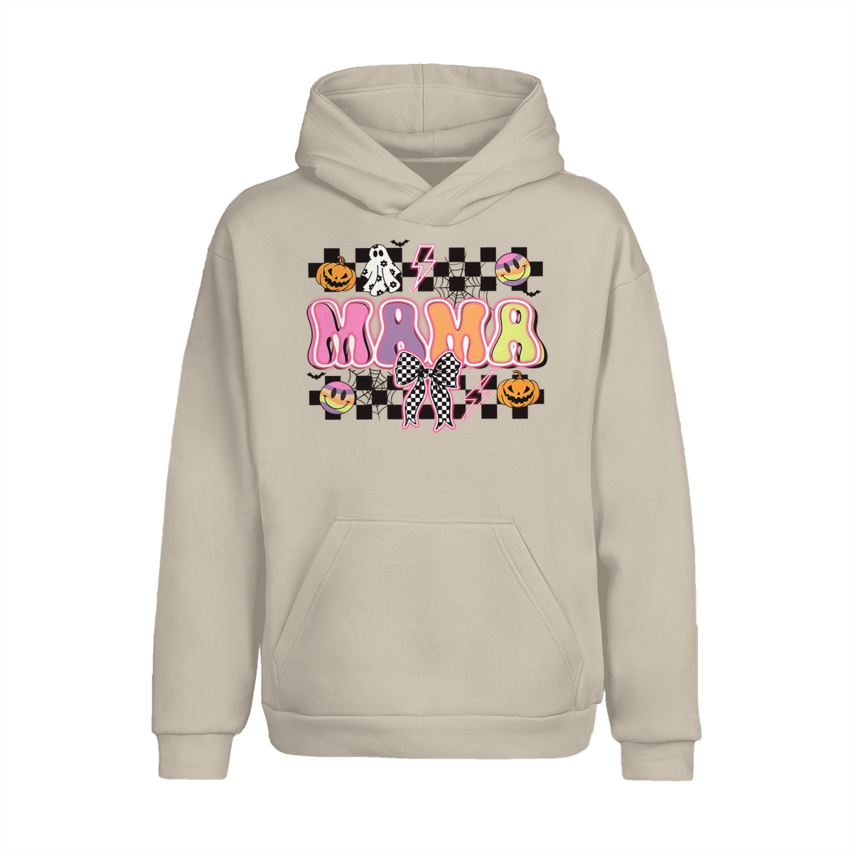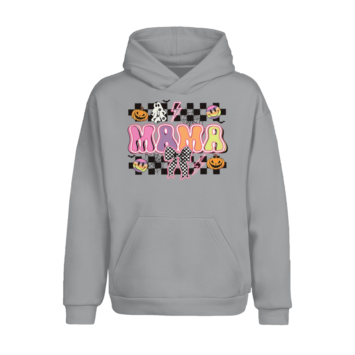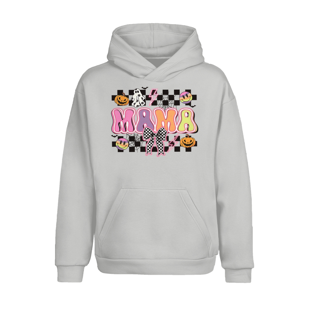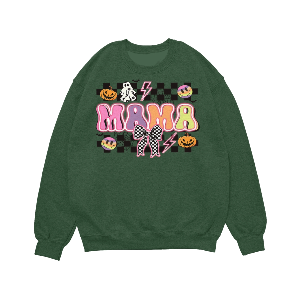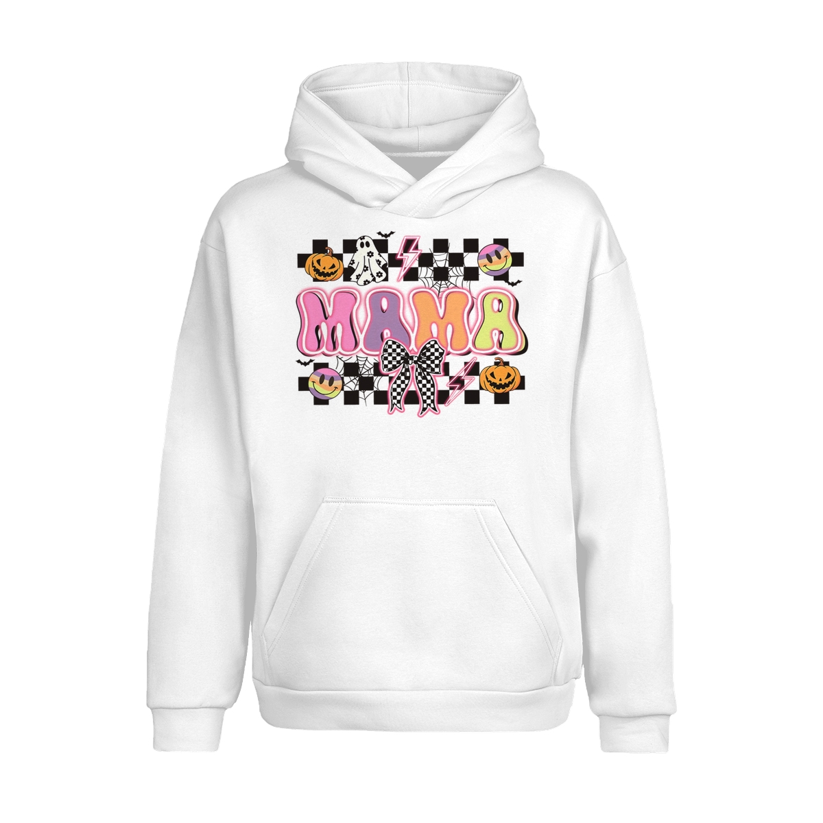 Trendy Spooky Mama – Cute Retro Halloween Checkerboard Unisex Crewneck TShirt/Sweatshirt/Hoodie – Printed in the USA, TikTok Viral Mom Sweatshirt, Kawaii Spooky Vibes, Pastel Halloween Gift for Mama
