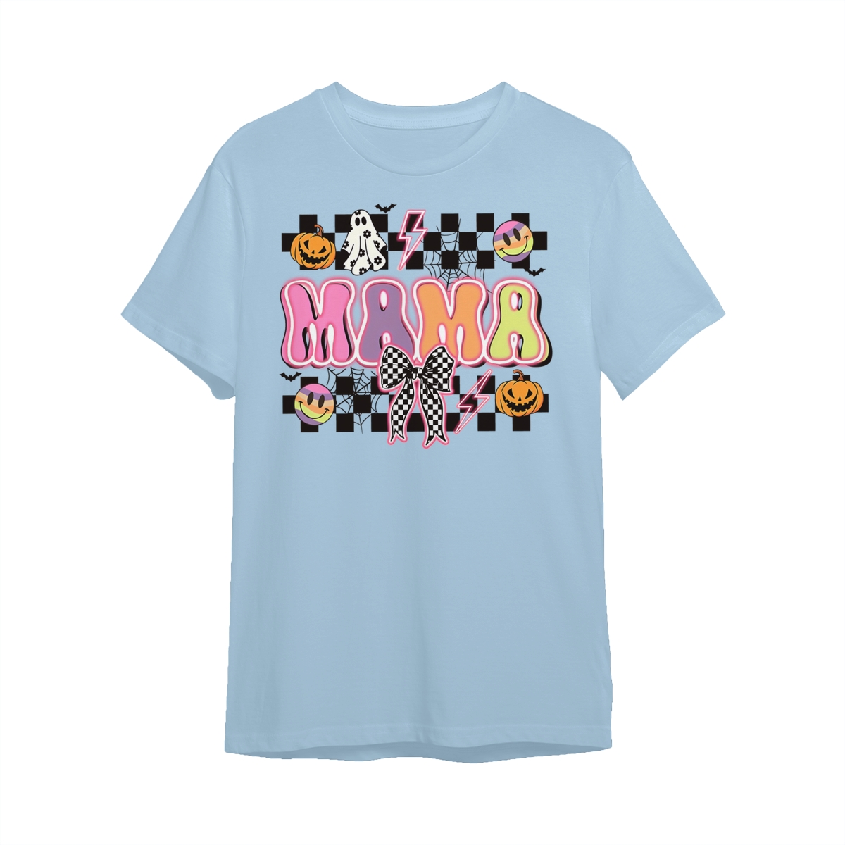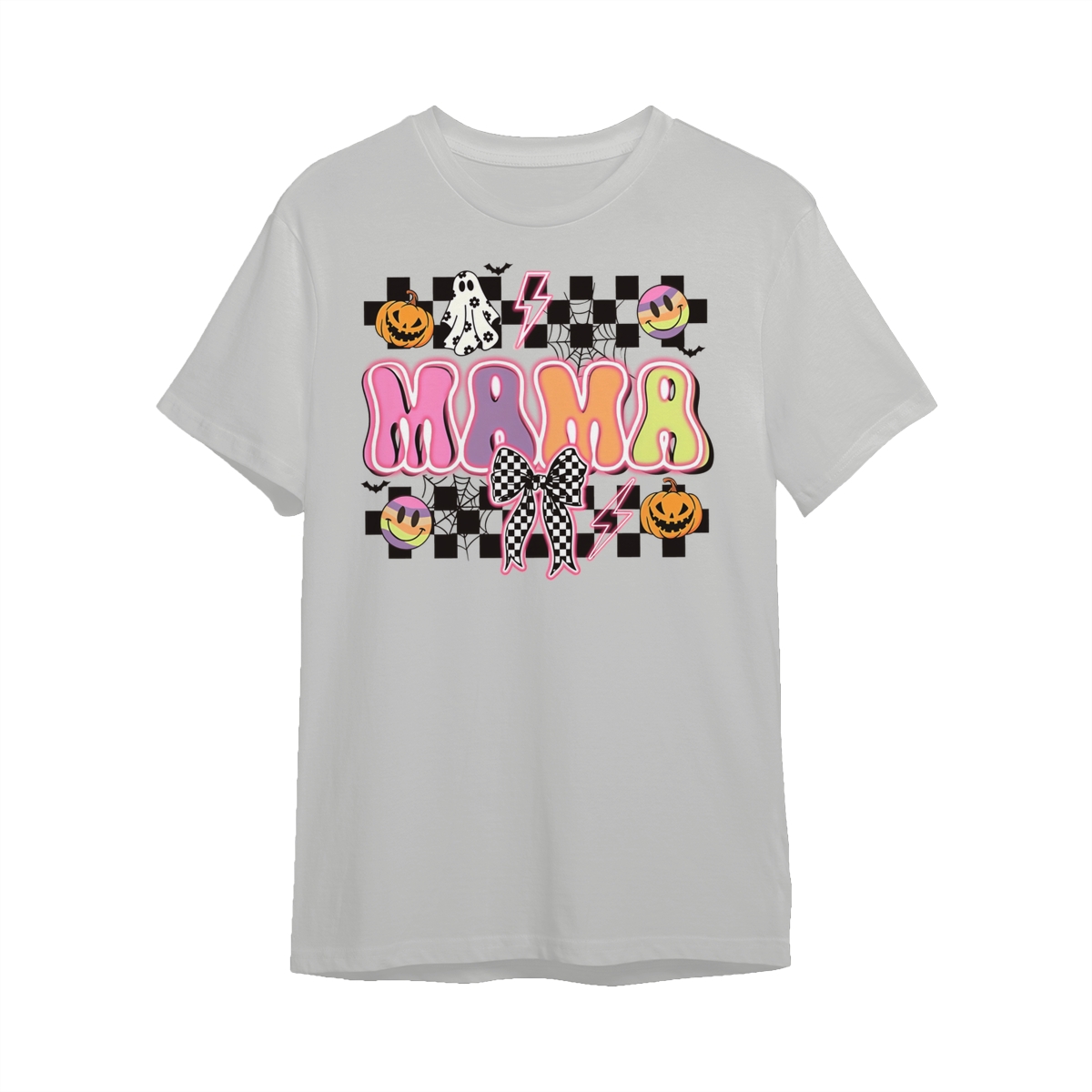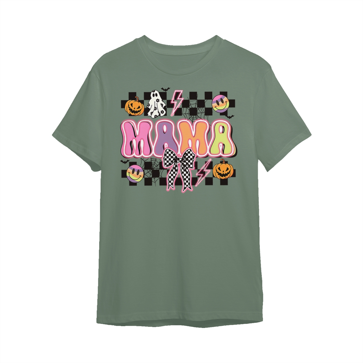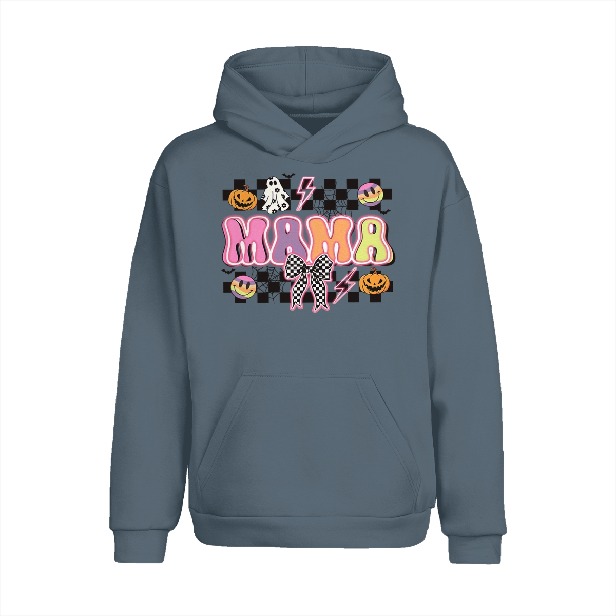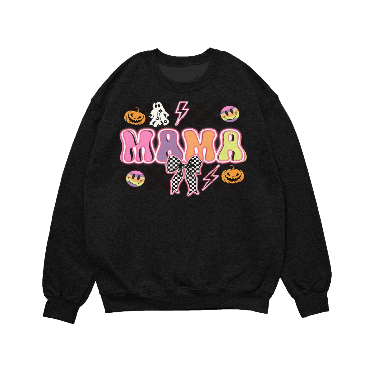 Trendy Spooky Mama – Cute Retro Halloween Checkerboard Unisex Crewneck TShirt/Sweatshirt/Hoodie – Printed in the USA, TikTok Viral Mom Sweatshirt, Kawaii Spooky Vibes, Pastel Halloween Gift for Mama