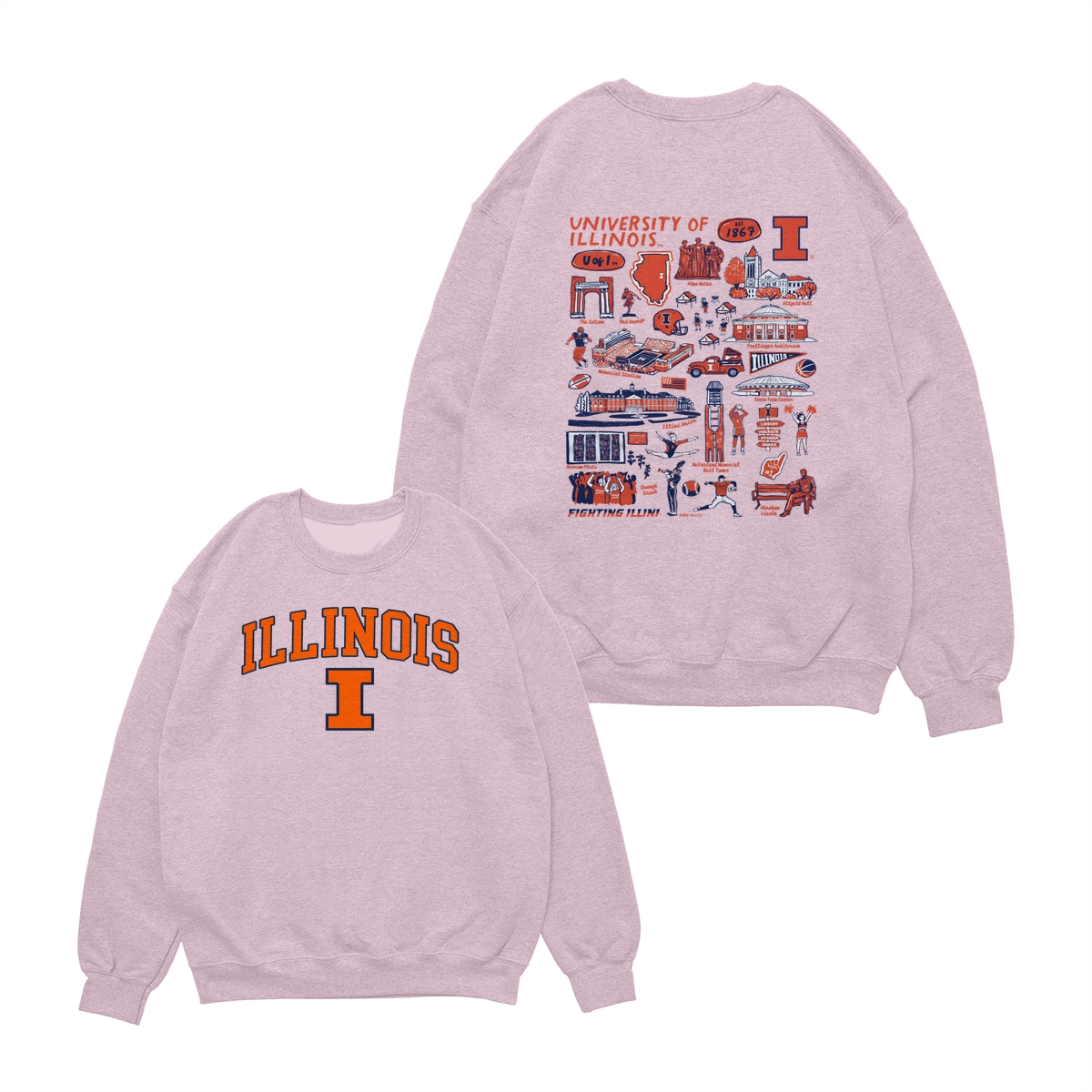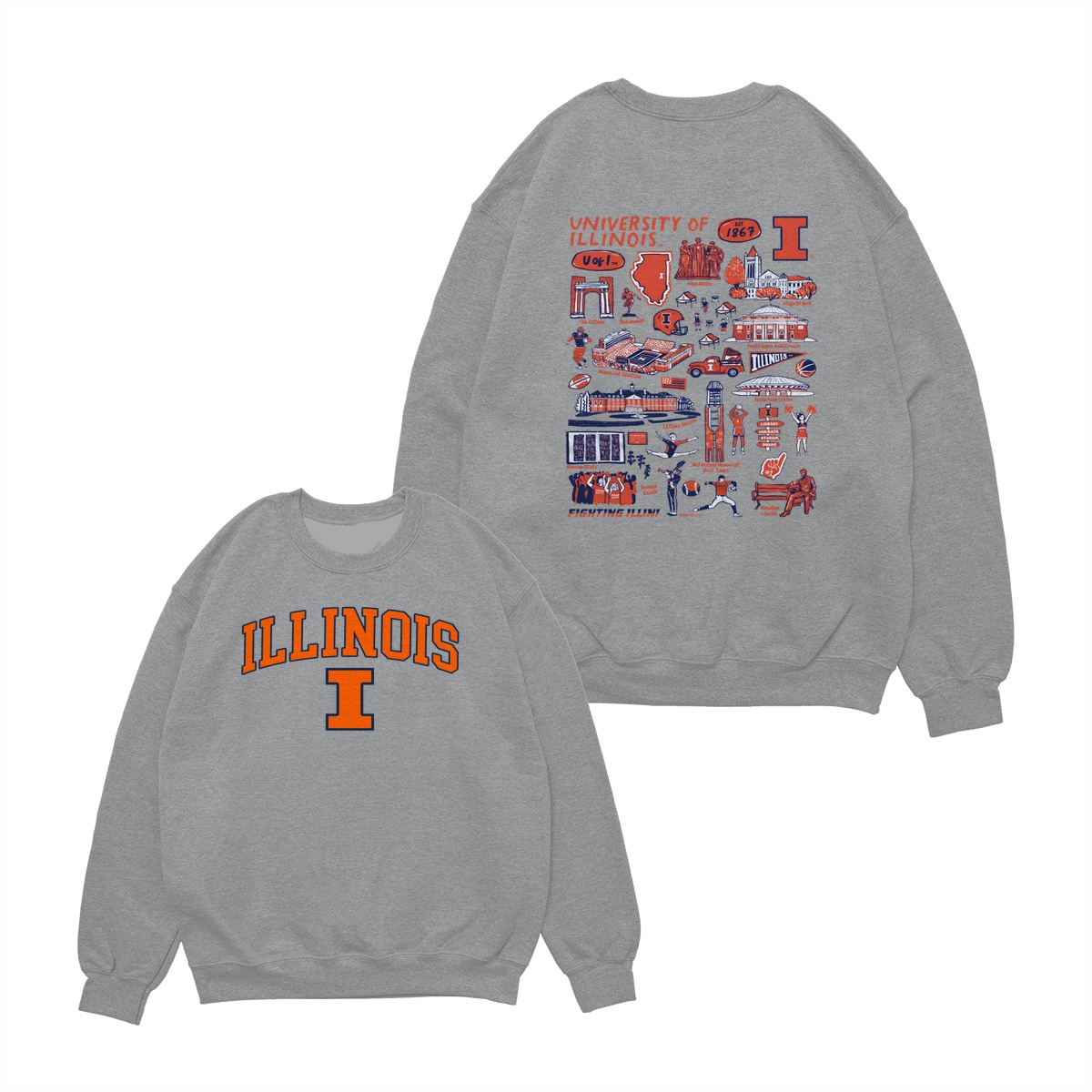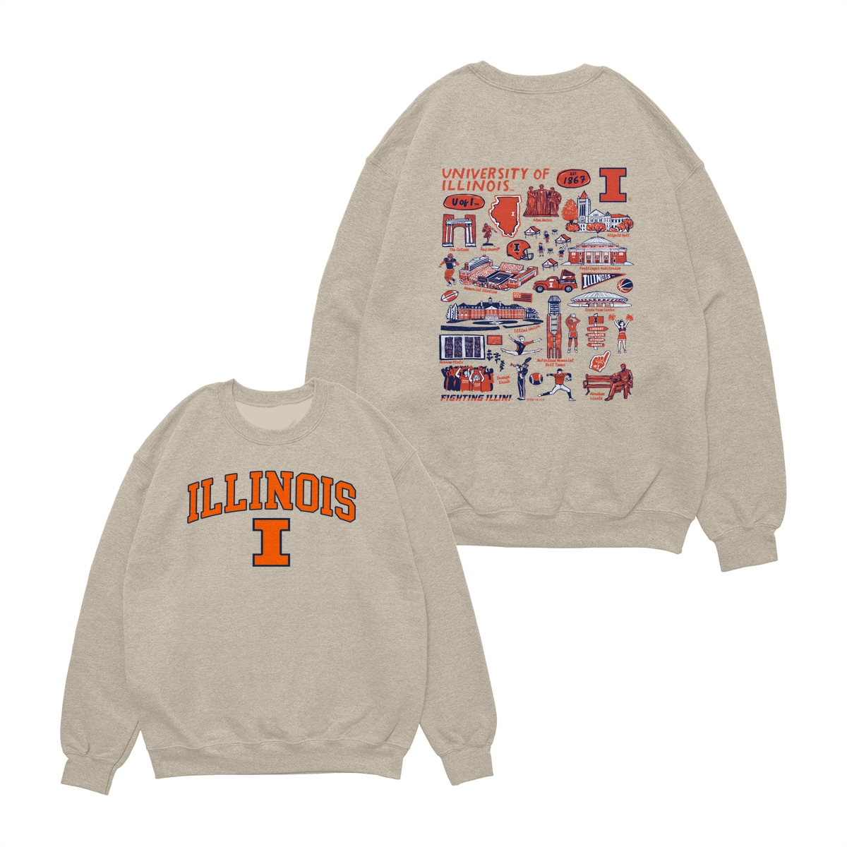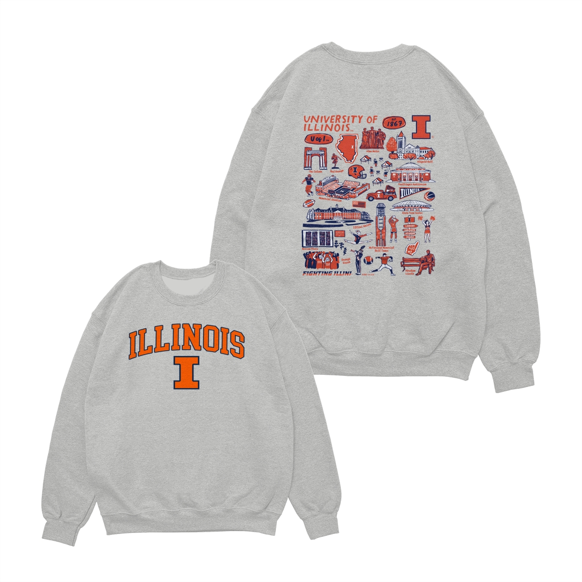 University of Illinois Urbana-Champaign Impressions Artwork Sweatshirt, Vintage Graphic ILLINOIS FIGHTING ILLINI Team Collection Shirt, School Spirit Artwork for University of NCAA Fans, Gift for Fans