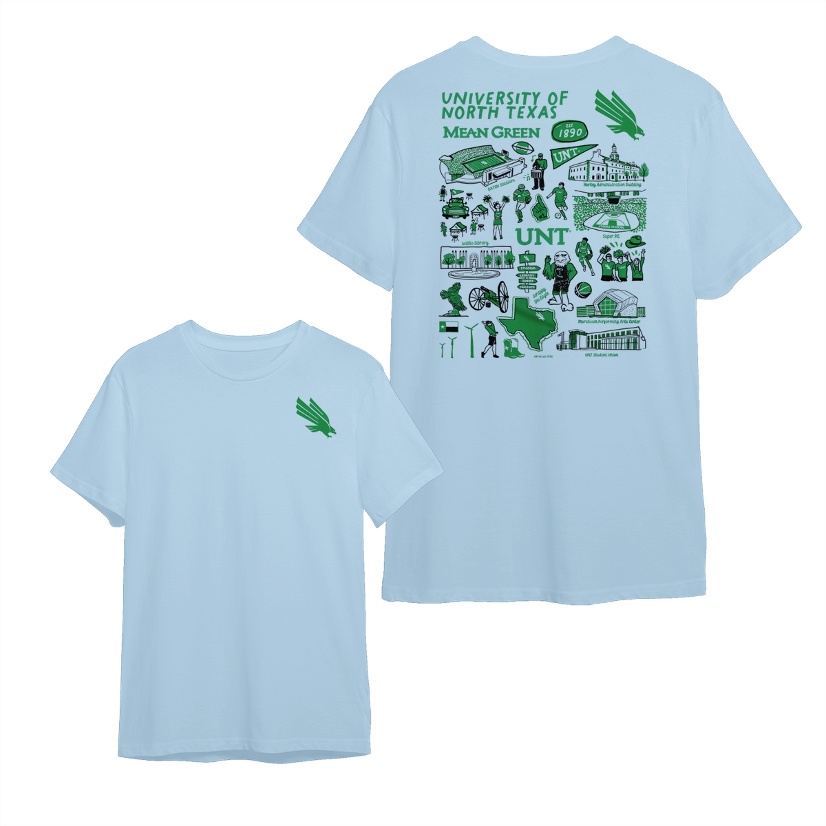 University of North Texas Shirt – Vintage Graphic Tee Featuring Campus Icons, Est. 1890, Mean Green UNT Pride Spirit Apparel
